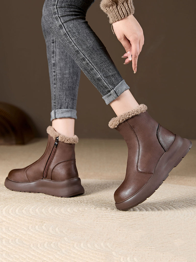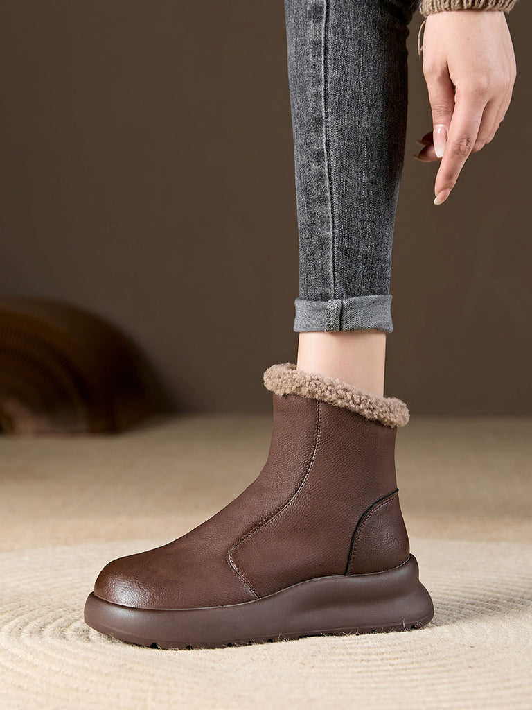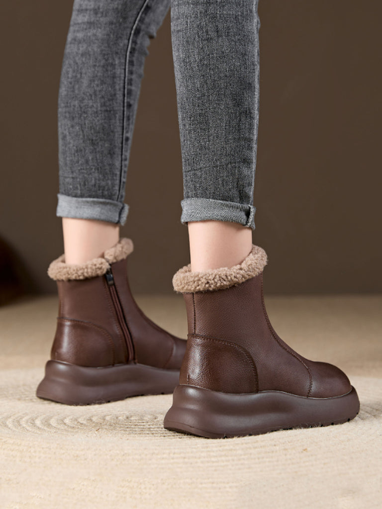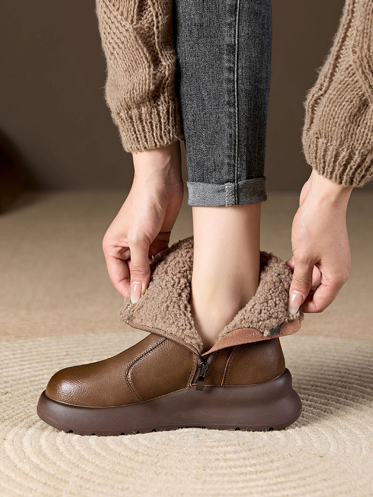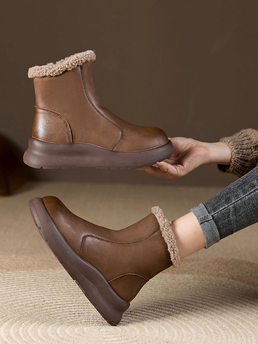 レディース 冬用 カジュアル ソフトレザー フリース裏地 アンクルブーツ