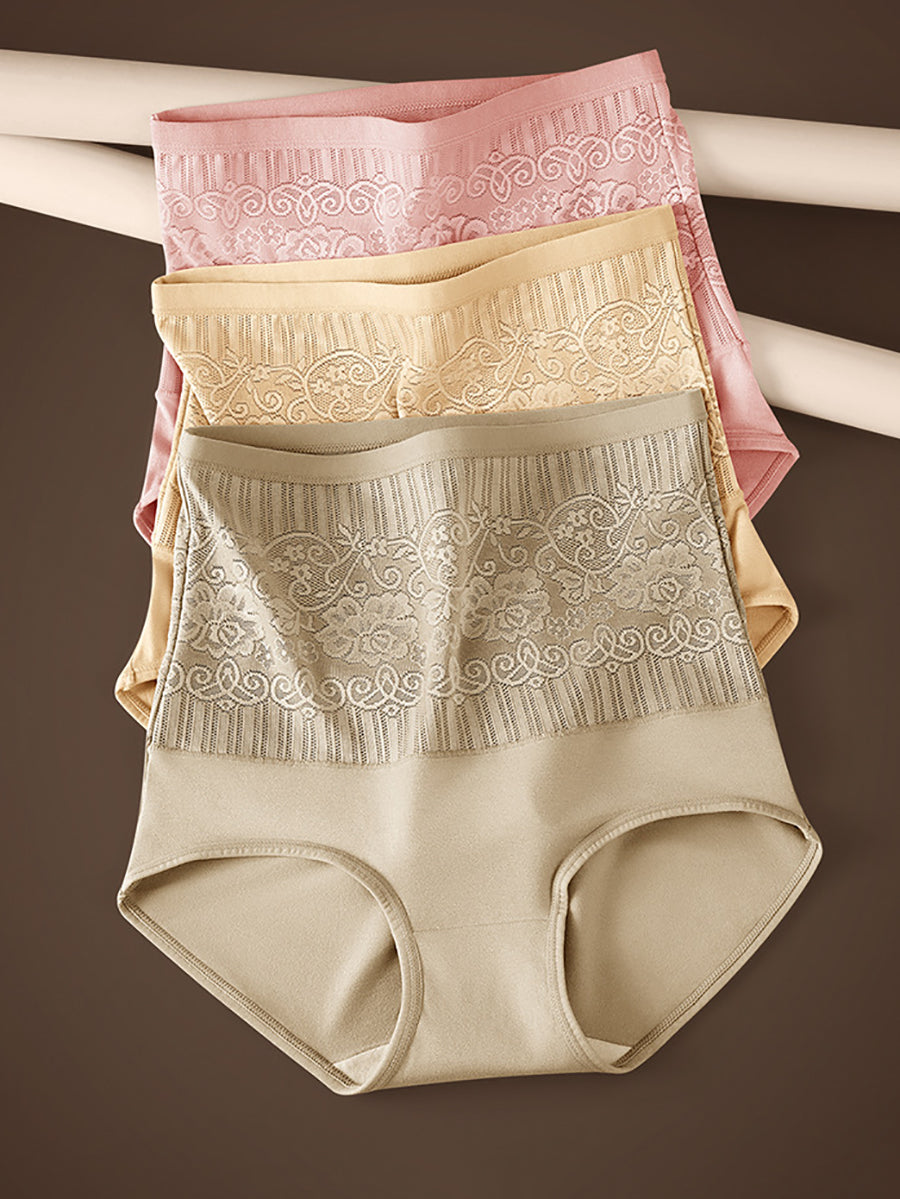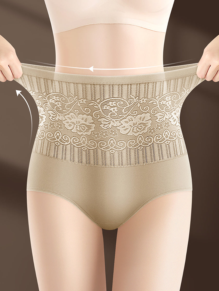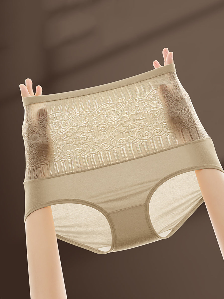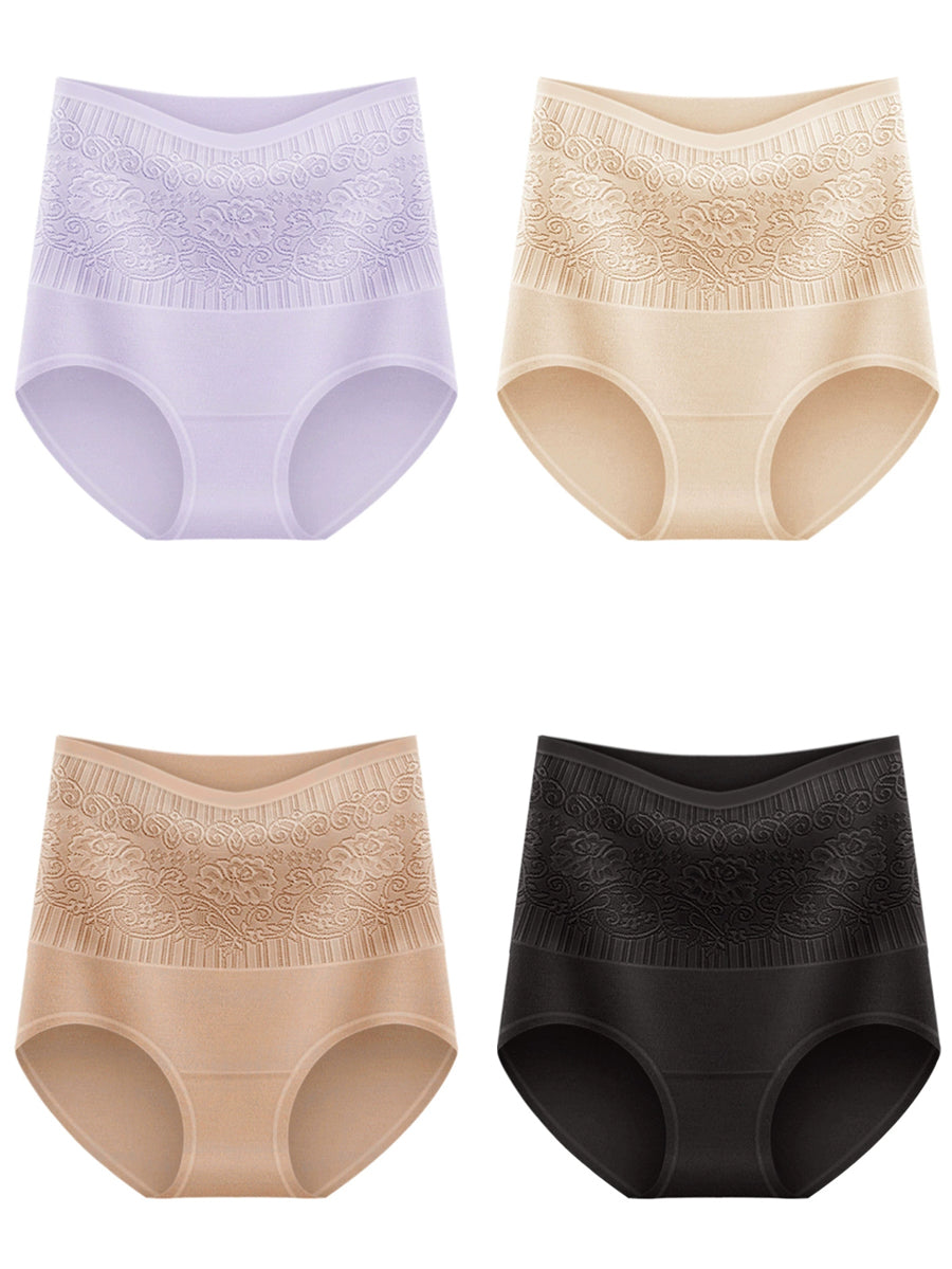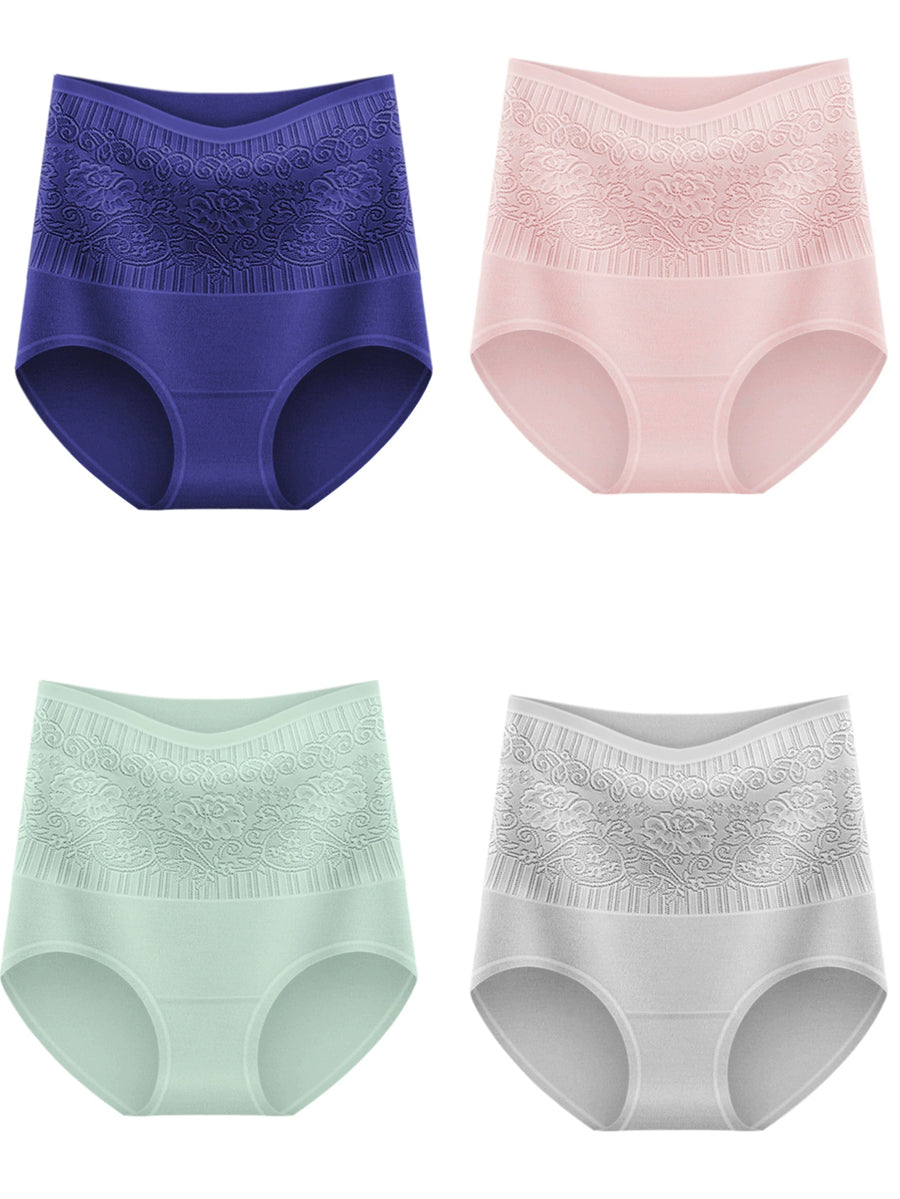 女性用アーティスティックフラワーハイウエスト下着4枚セット