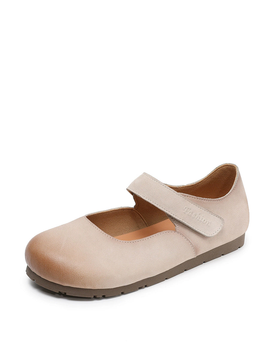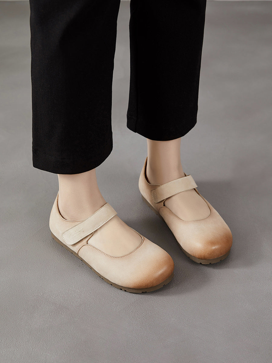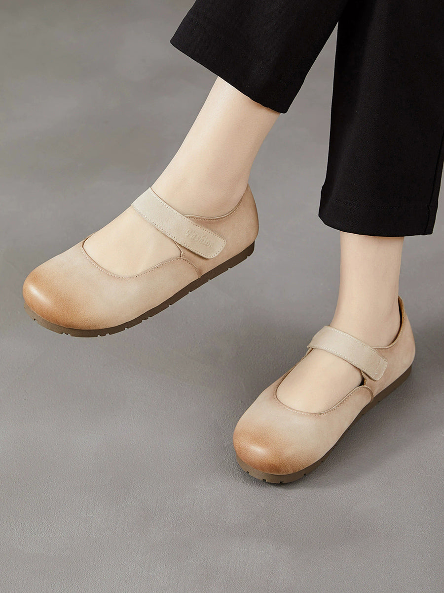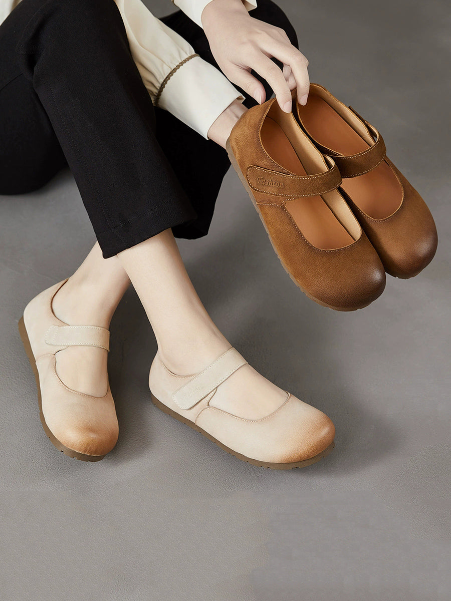 レディース 春のアーティスティックな本革フラットヒールシューズ