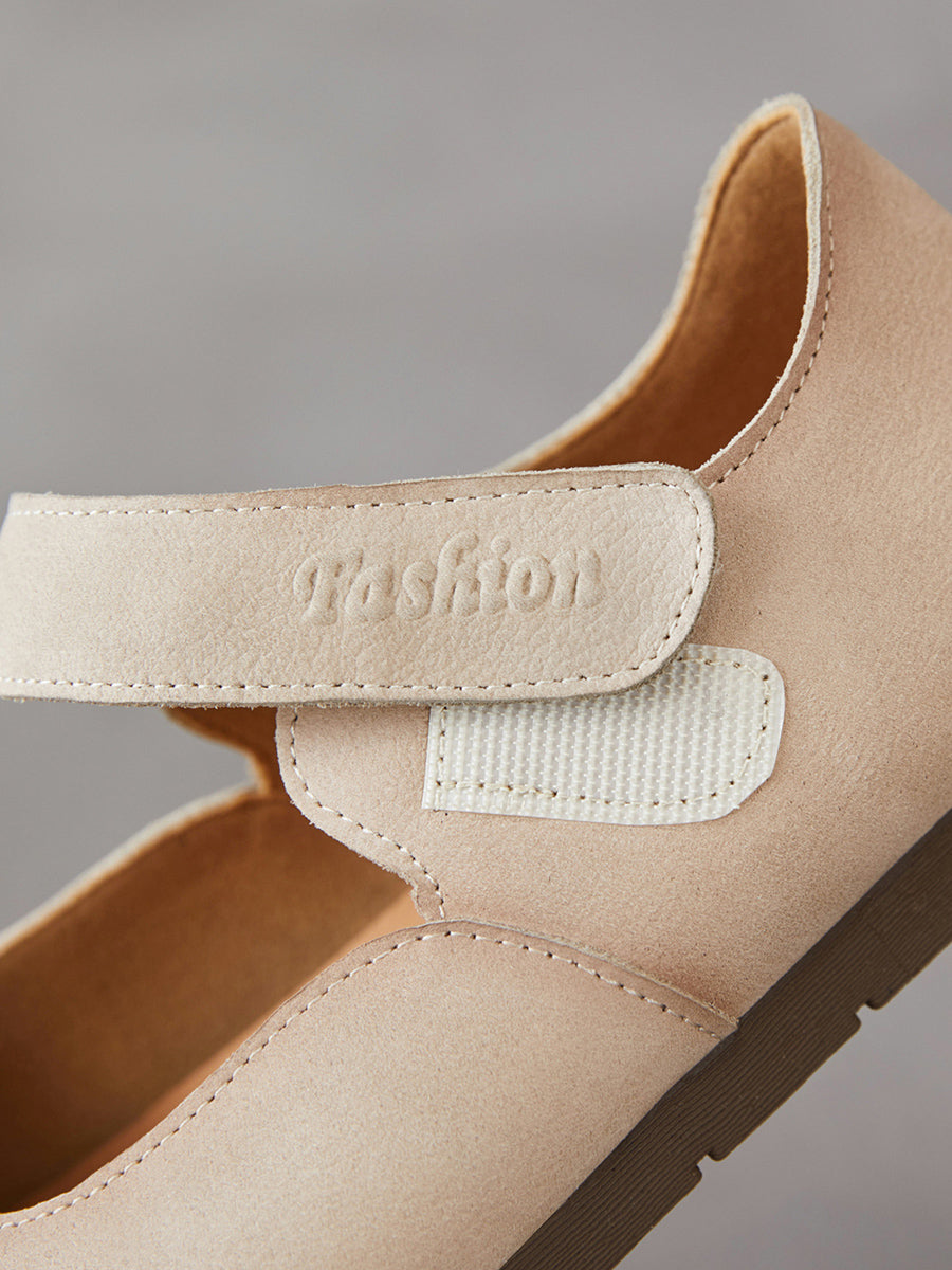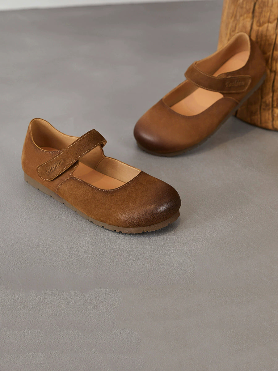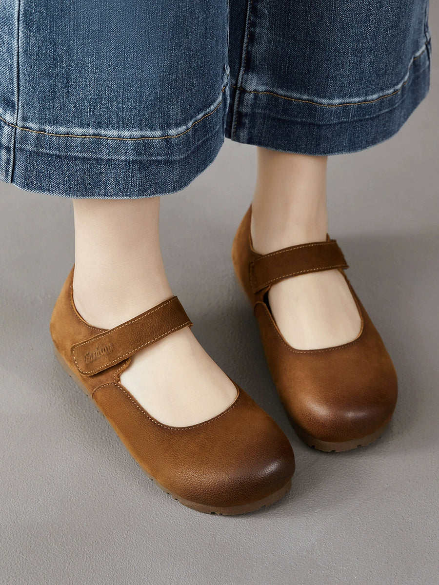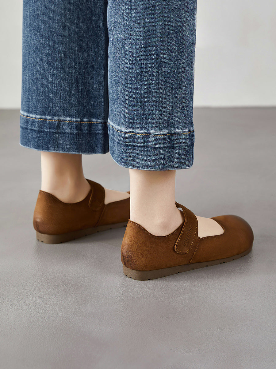 レディース 春のアーティスティックな本革フラットヒールシューズ