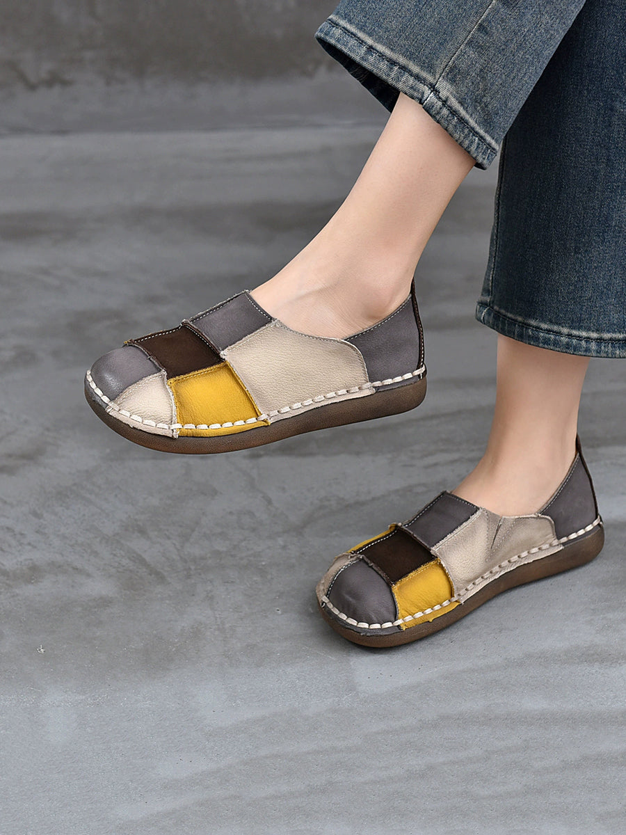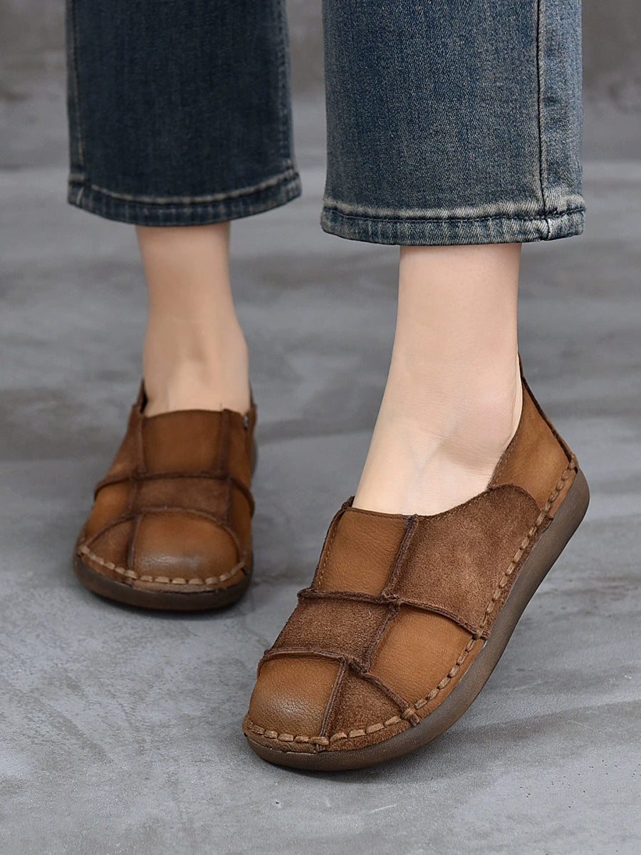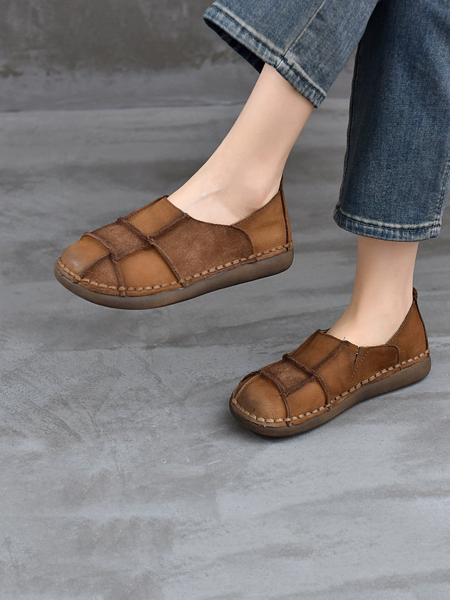 レディース 春 本革 スプライスフラットシューズ