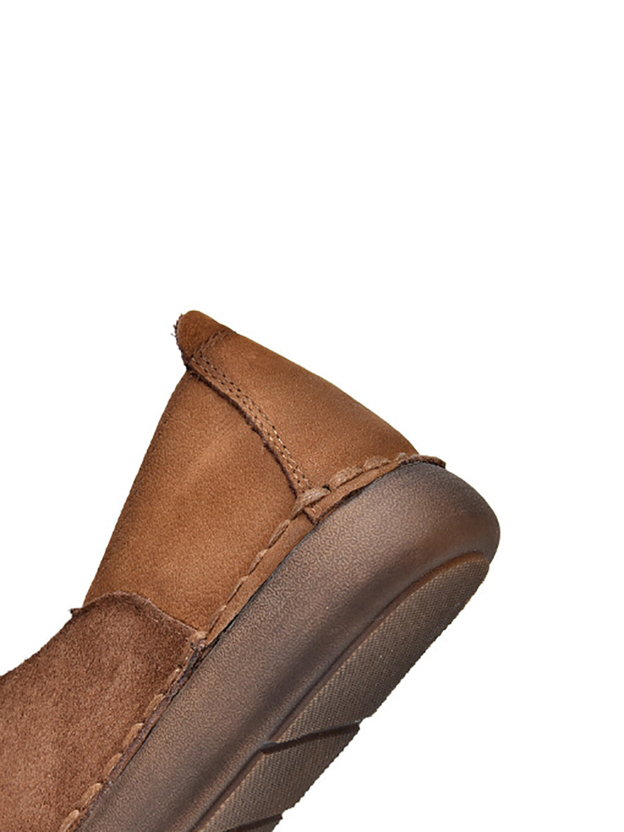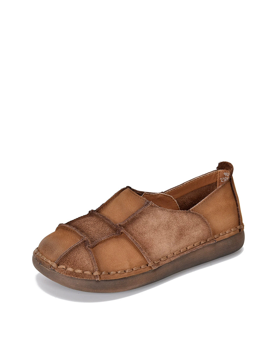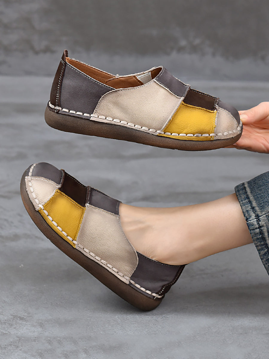 レディース 春 本革 スプライスフラットシューズ