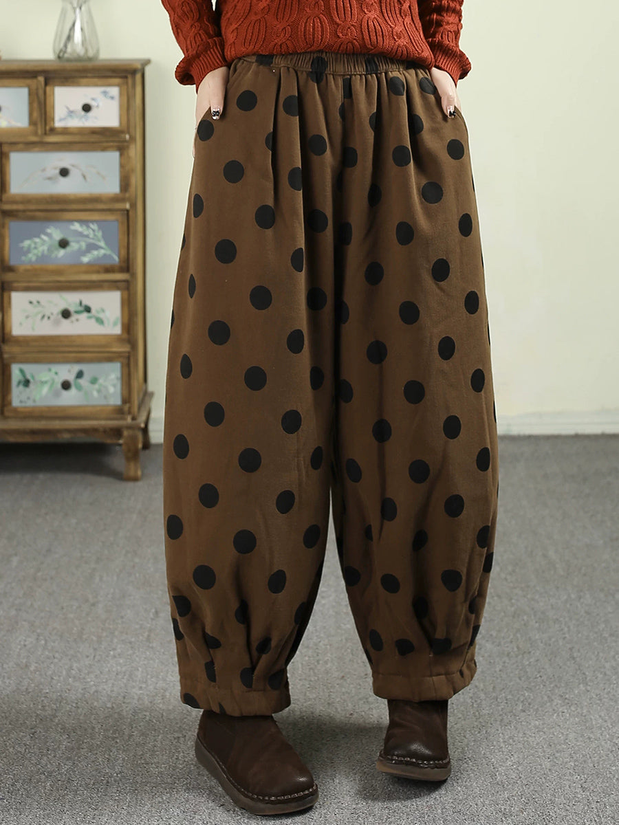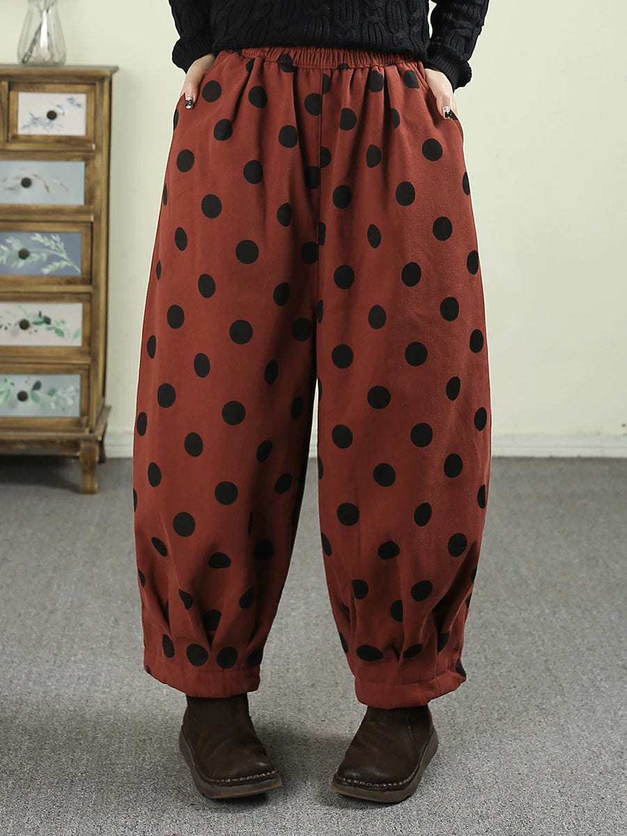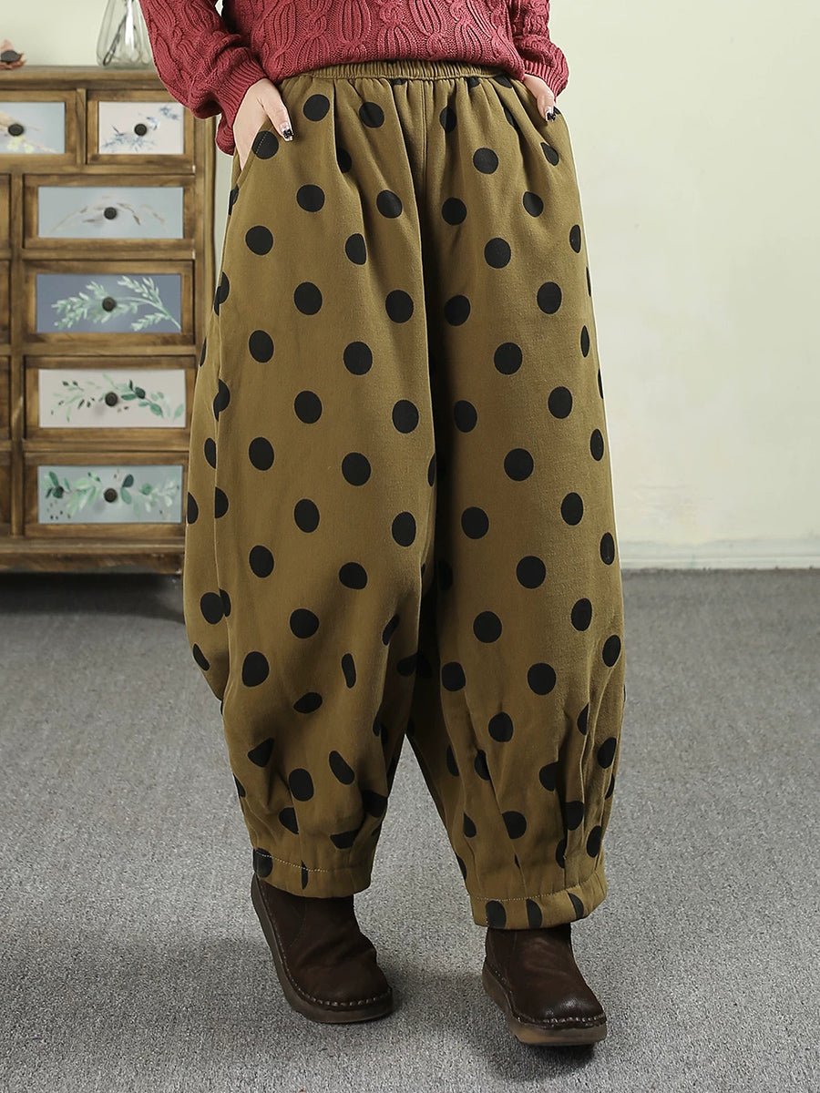 レディース 冬用 レトロ ドット パッド入り ハーレムパンツ