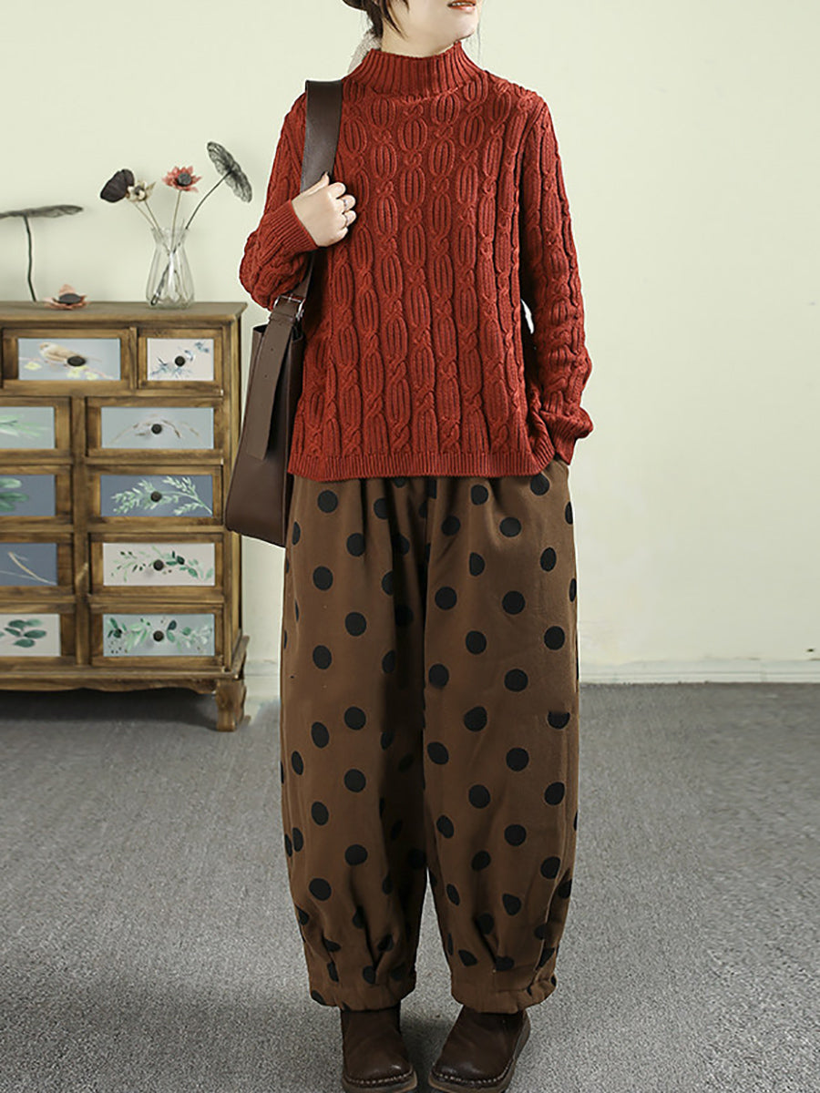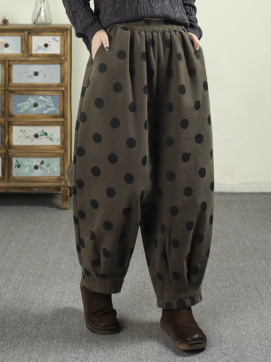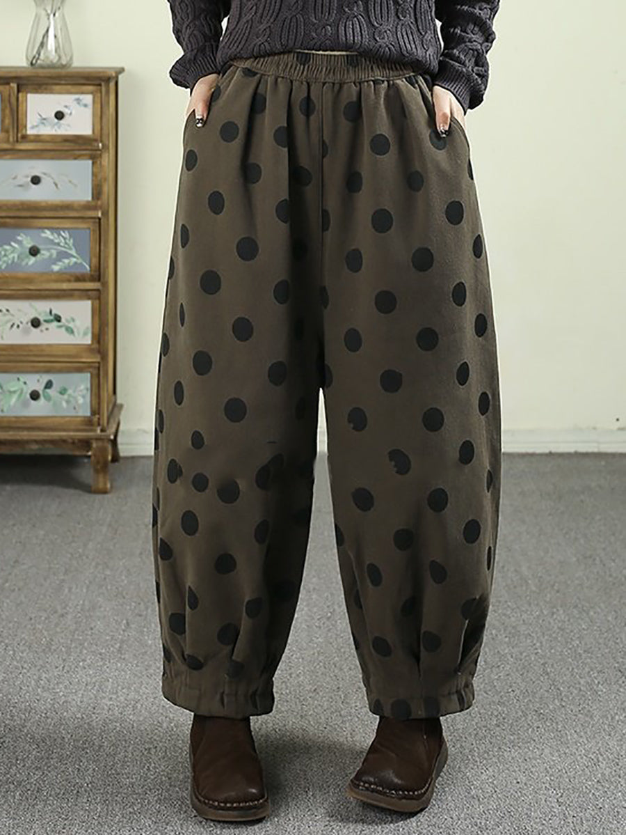 レディース 冬用 レトロ ドット パッド入り ハーレムパンツ