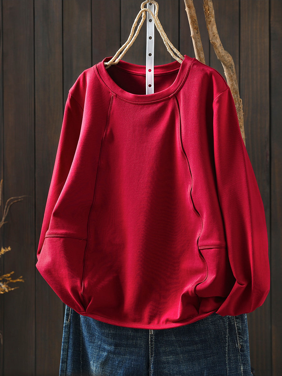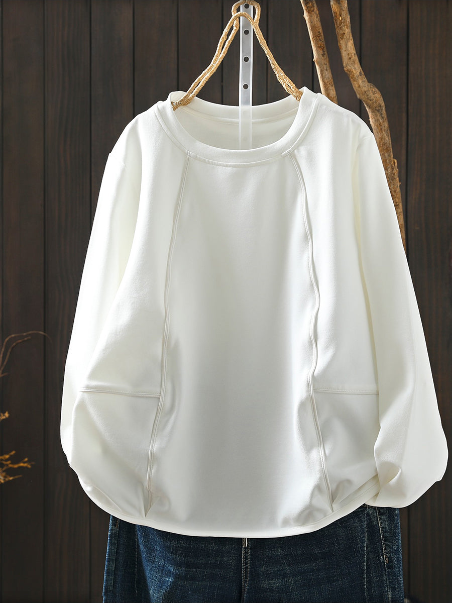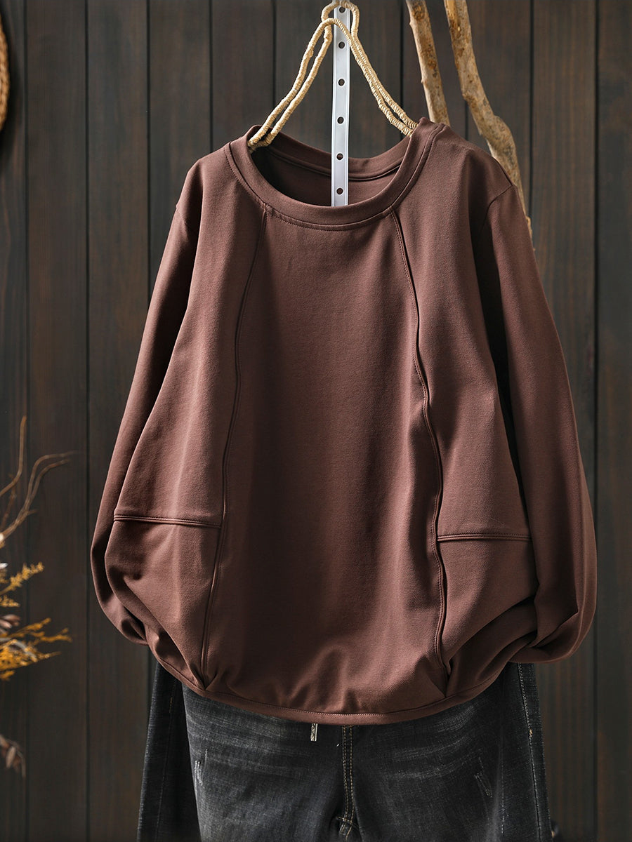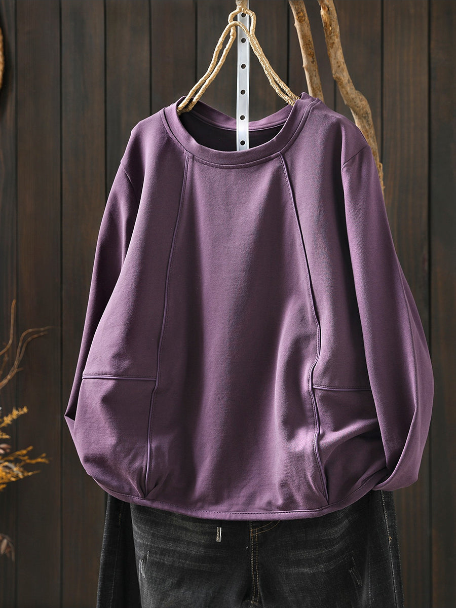 レディース カジュアル 春 ピュアカラー Oネック ブラウス