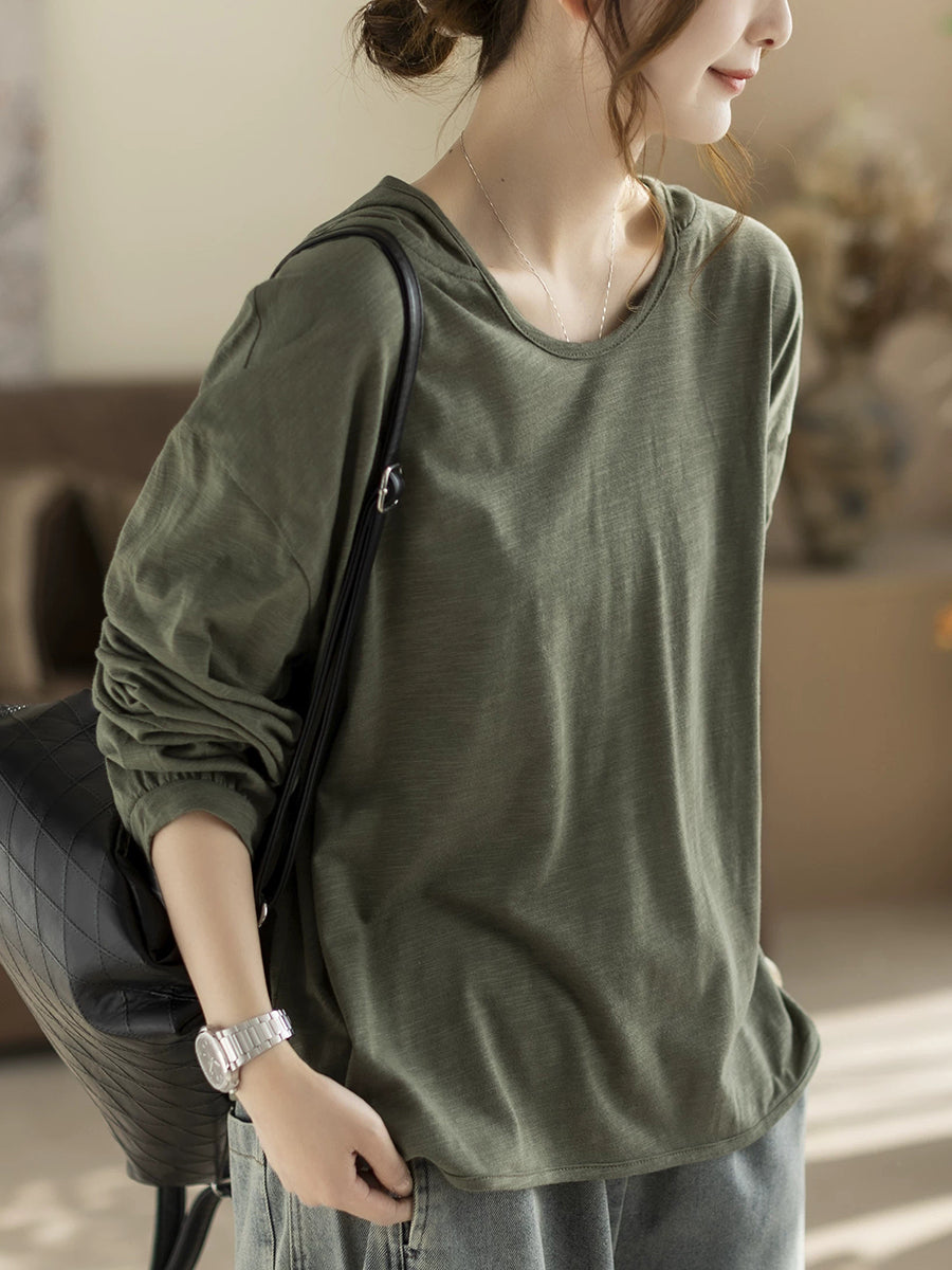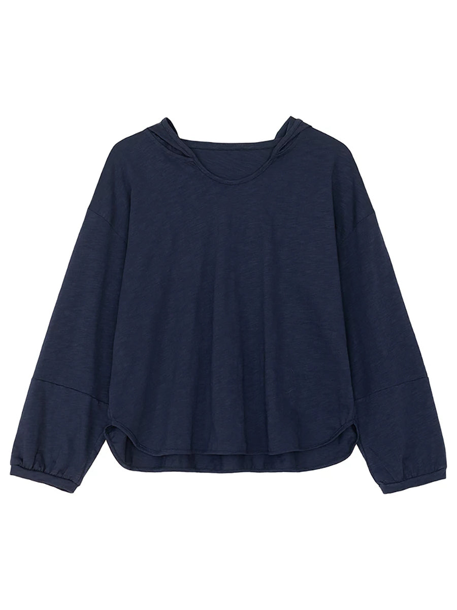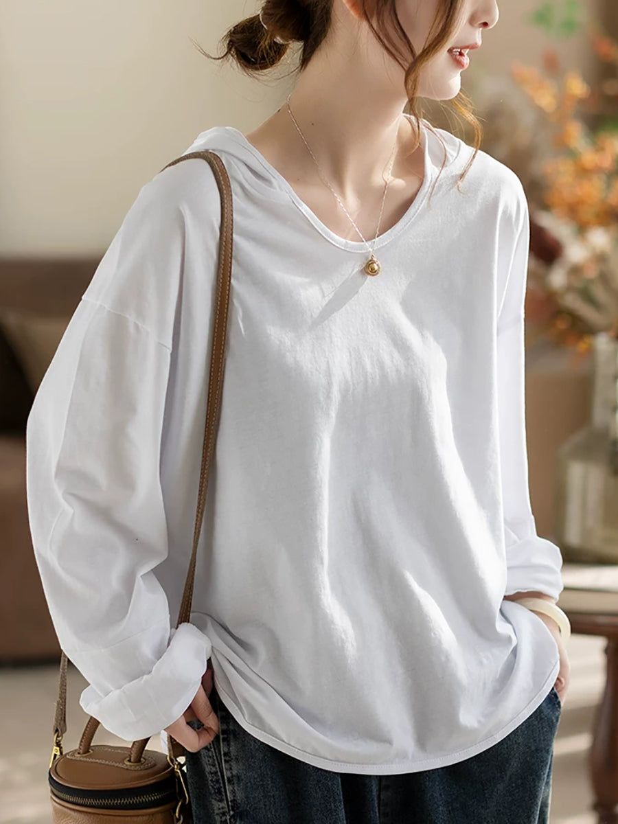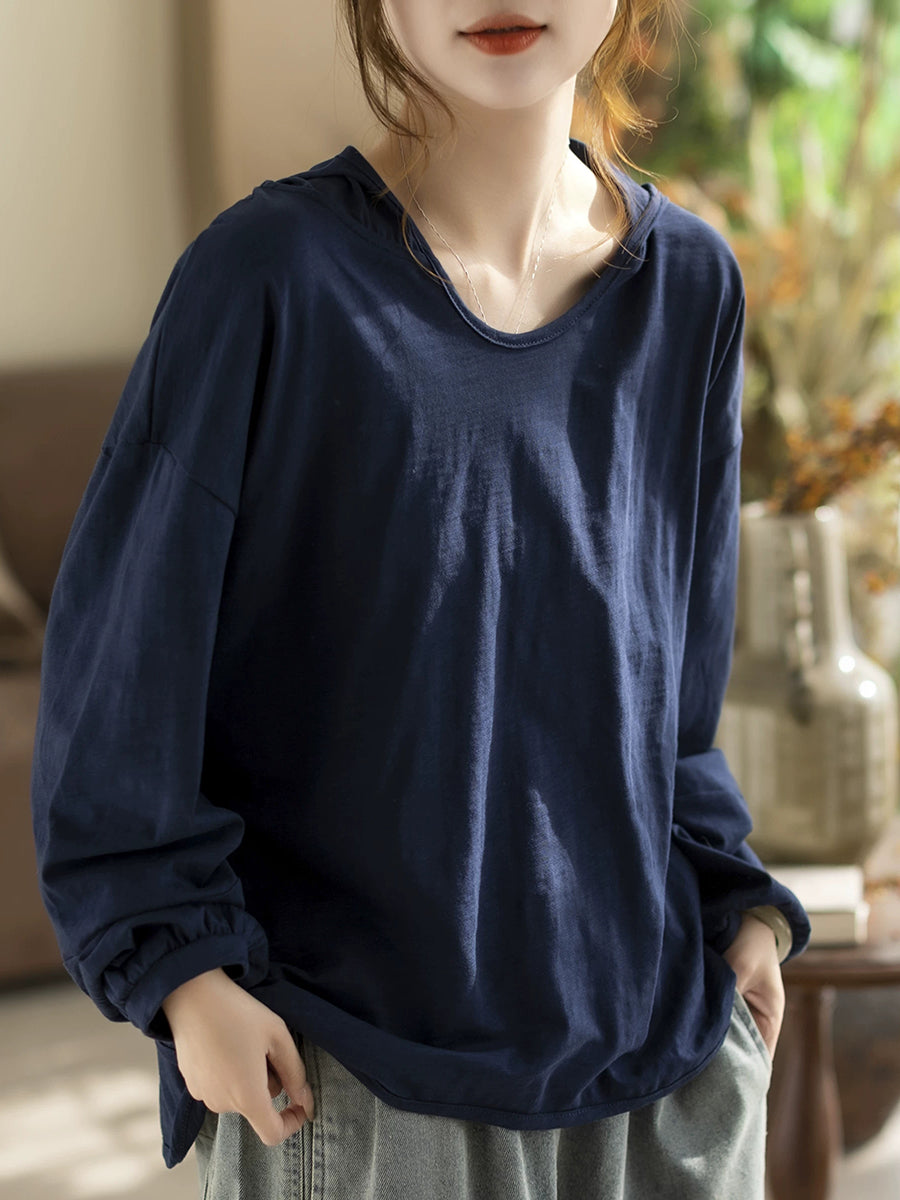 レディース 春 アーティスティック ピュアカラー 100%コットン パーカー