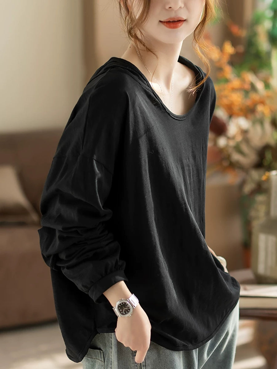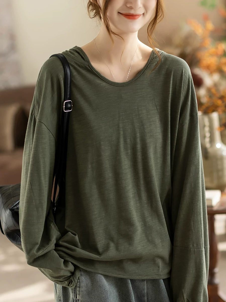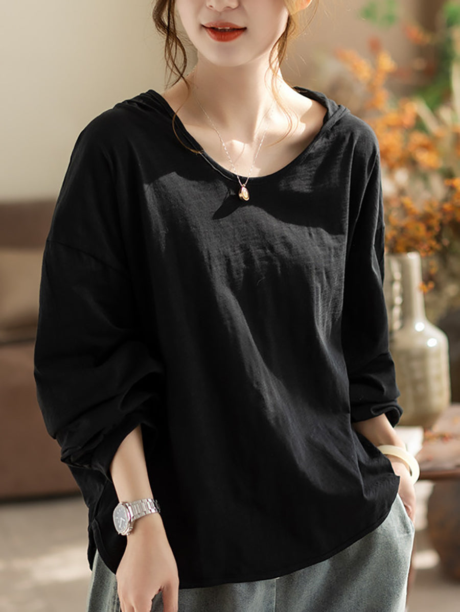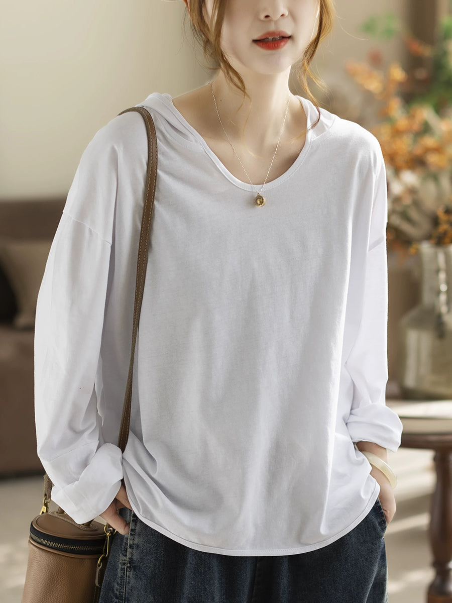 レディース 春 アーティスティック ピュアカラー 100%コットン パーカー