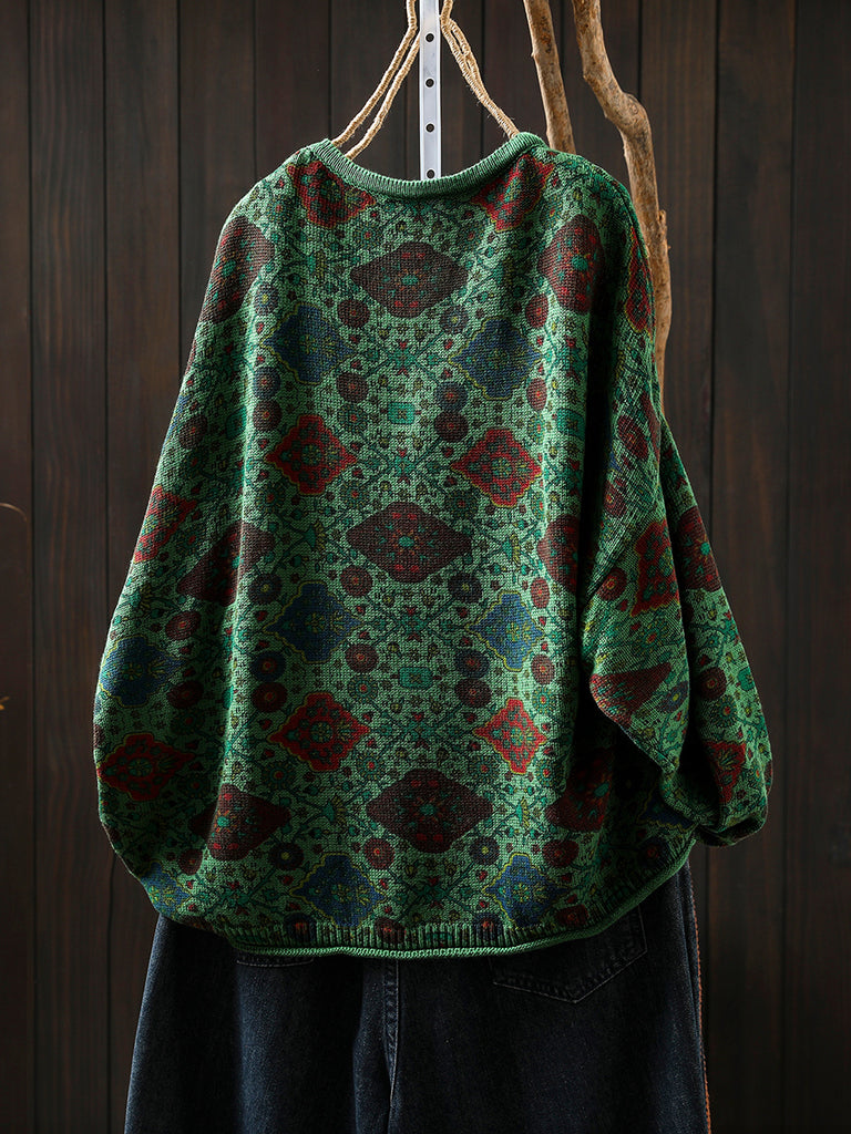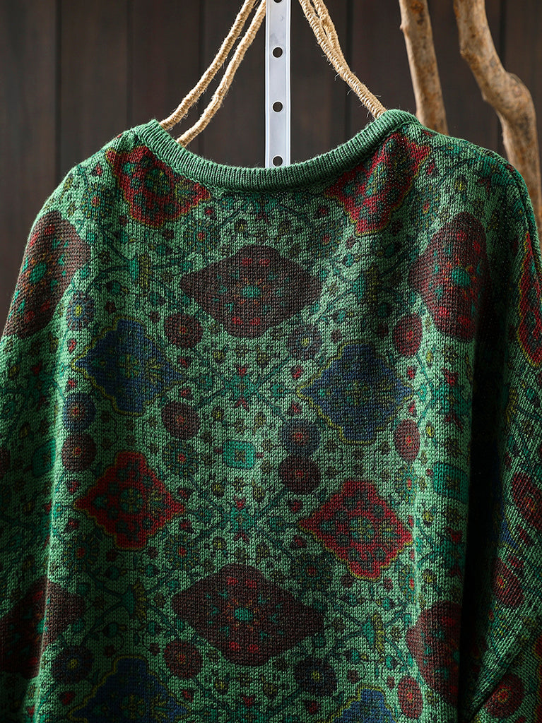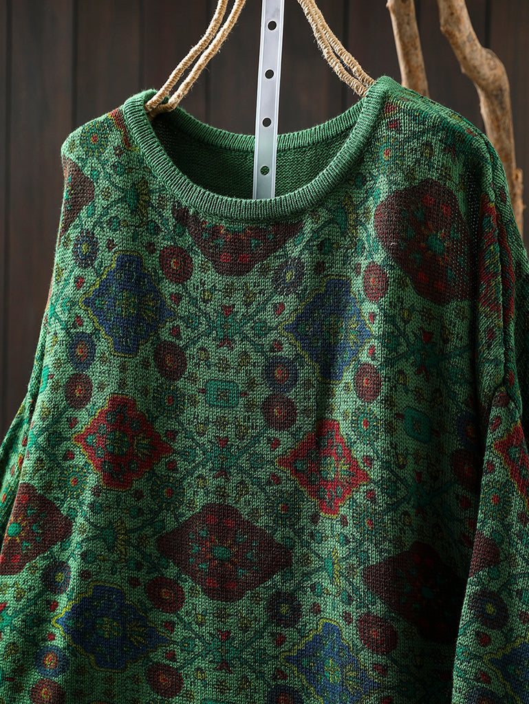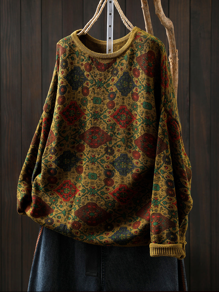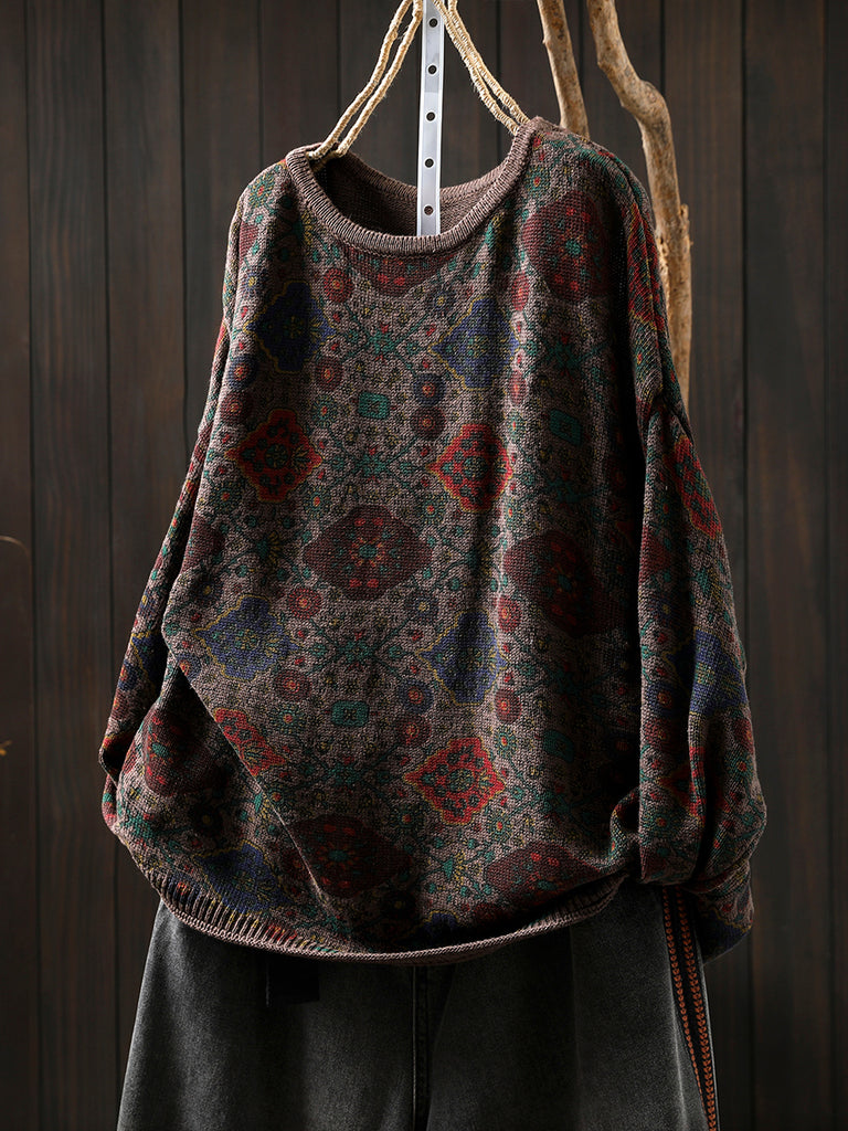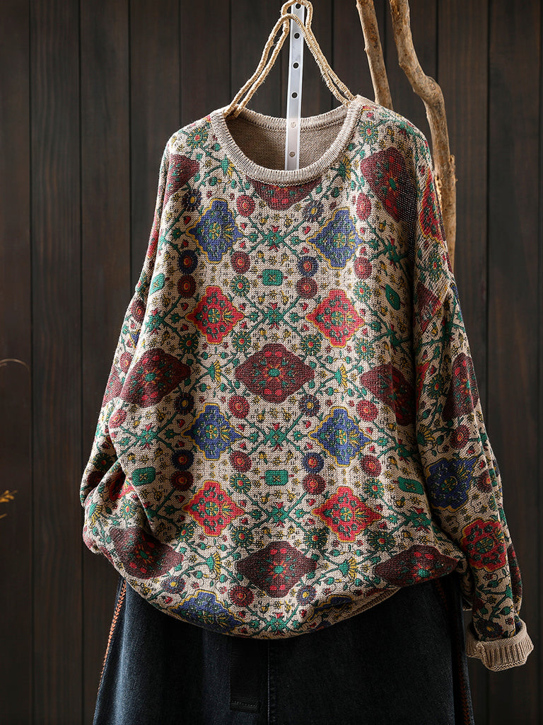 レディース エスニック 秋花柄 Oネック ブラウス