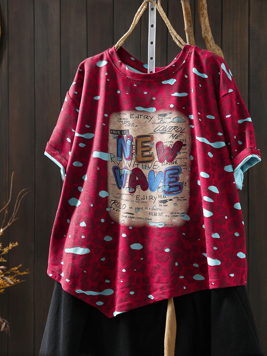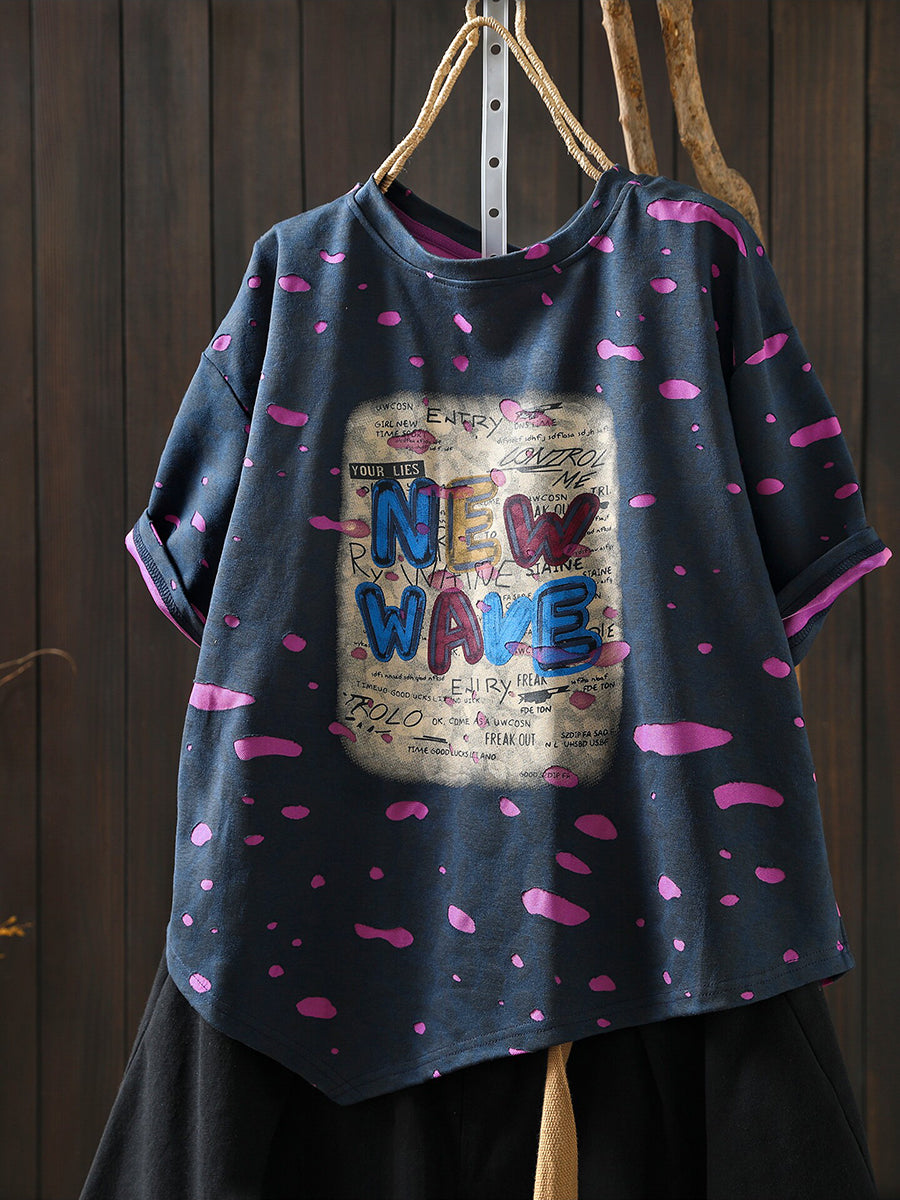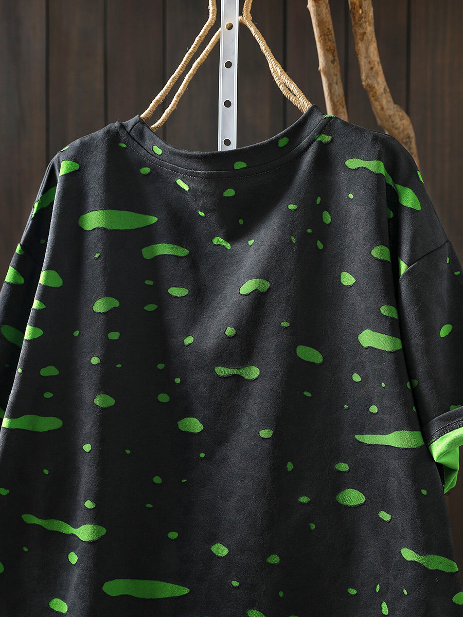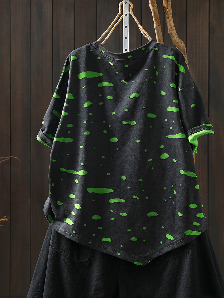 レディース 夏物 アーティスティックプリント コットンTシャツ