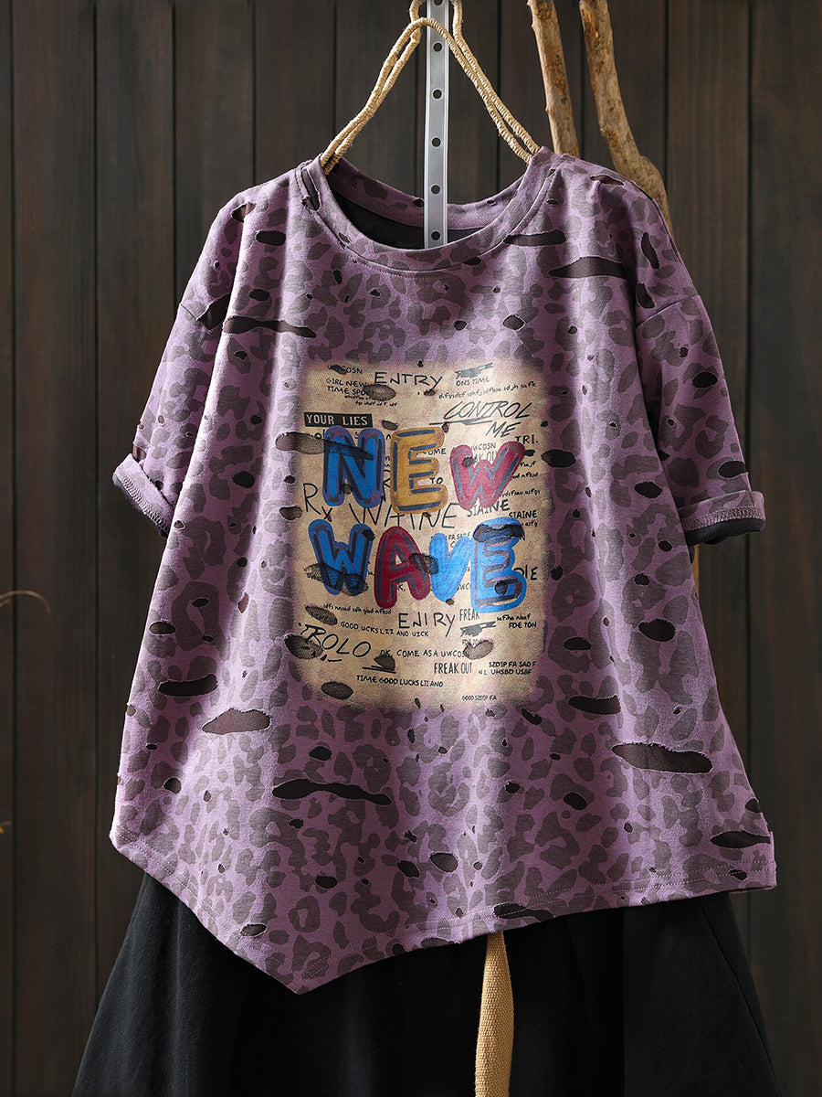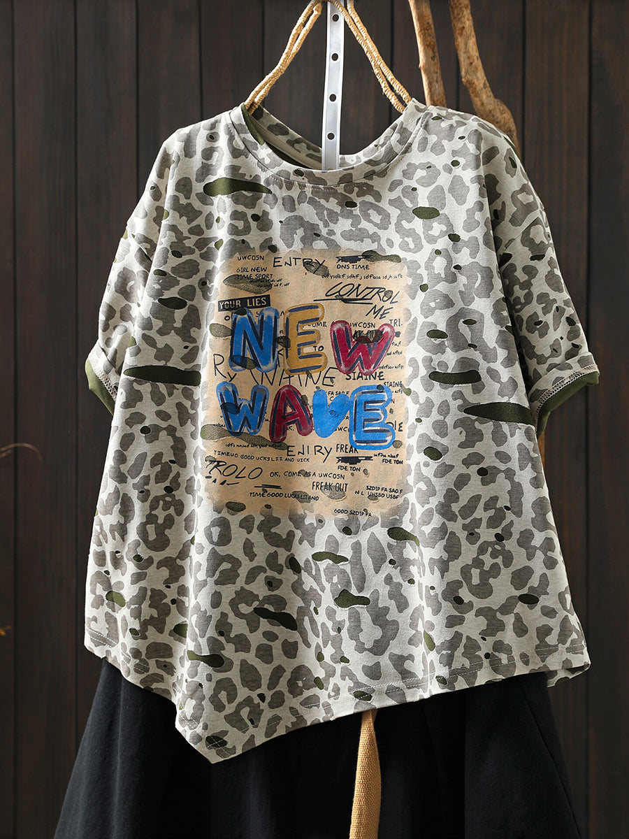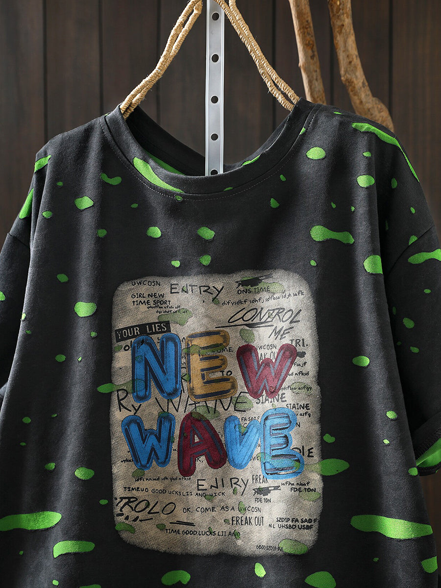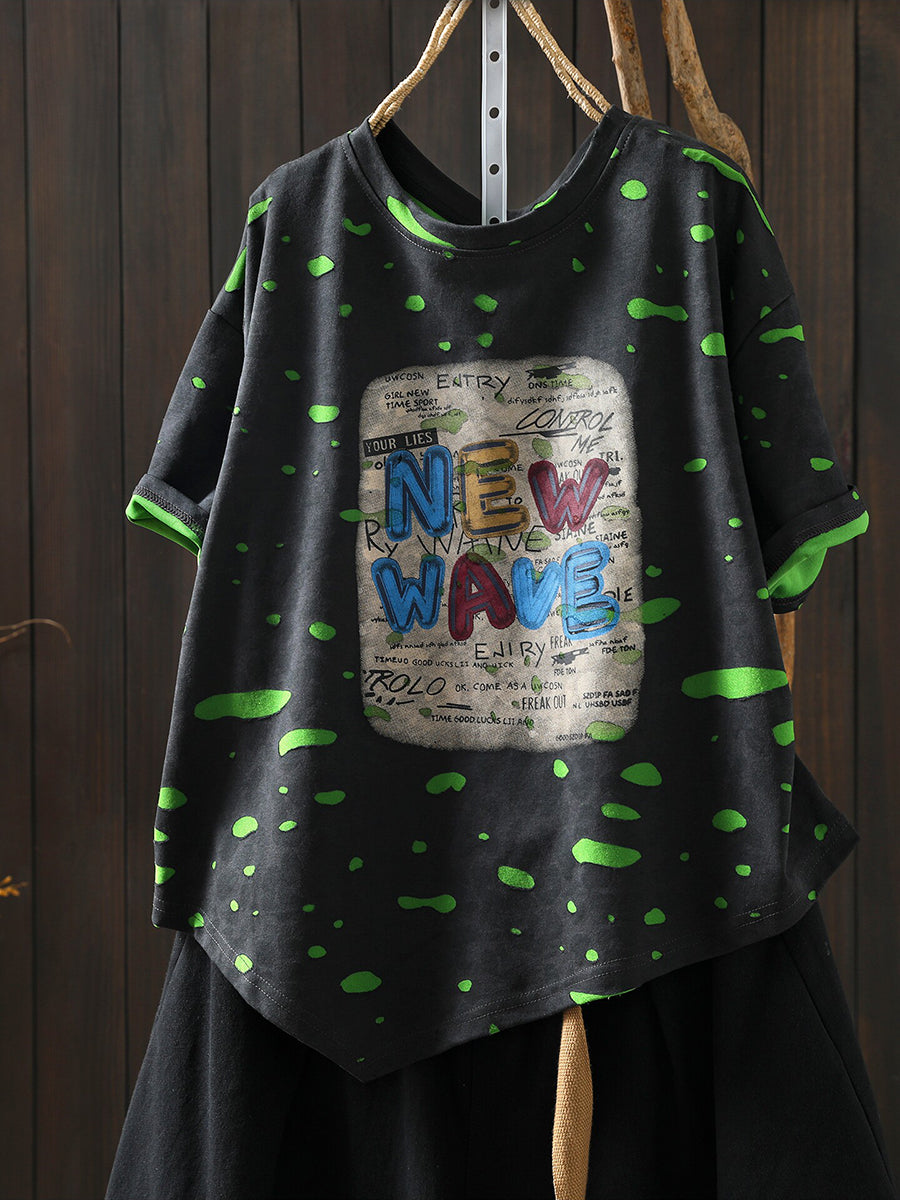 レディース 夏物 アーティスティックプリント コットンTシャツ