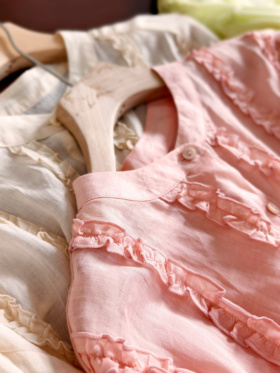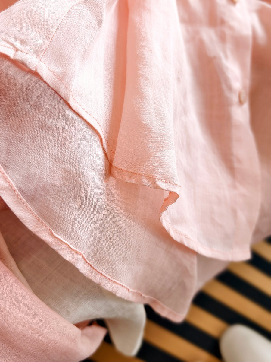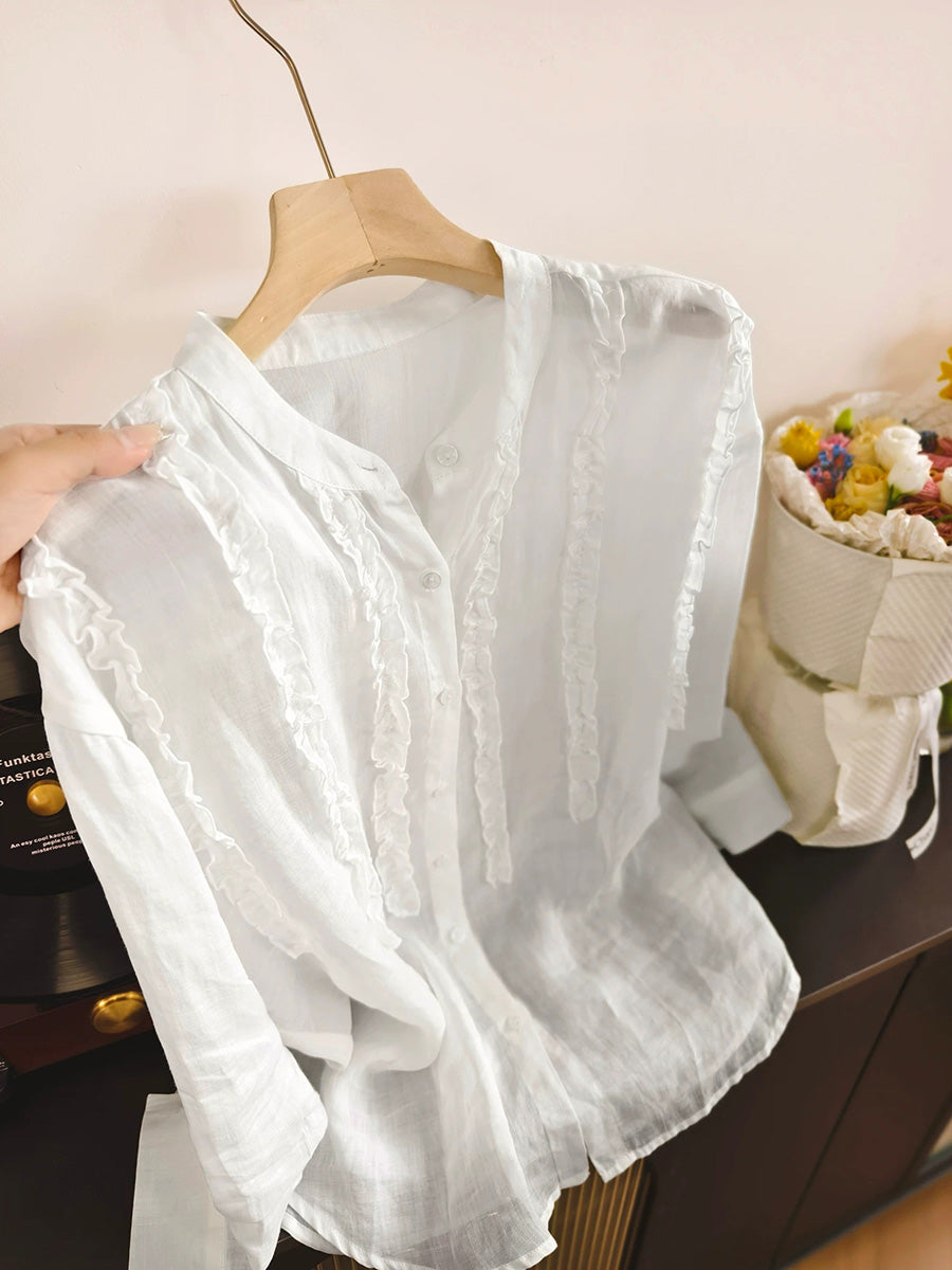 レディース 春物 アーティスティック スタンドカラー 100%ラミーシャツ