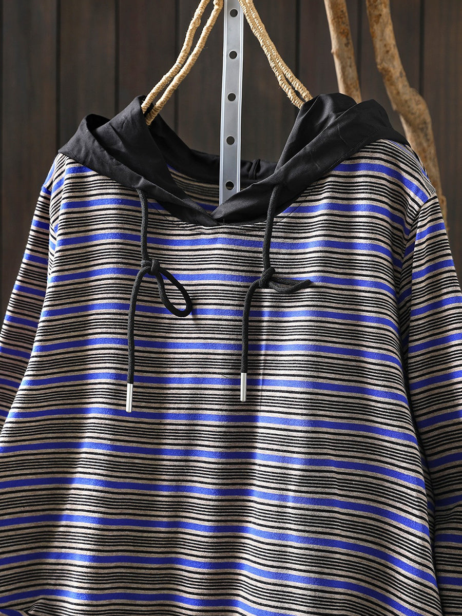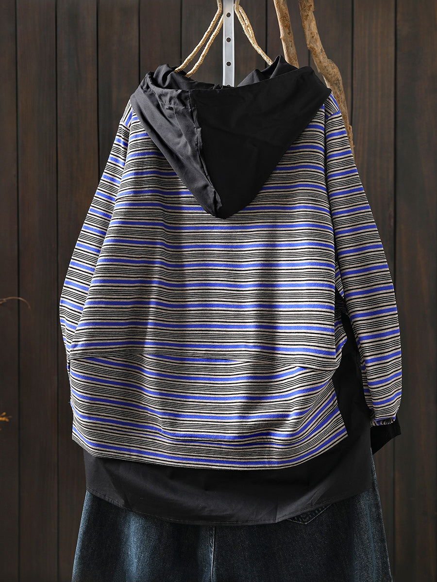 レディース 春 アーティスティック ストライプ スプライス コットン パーカー