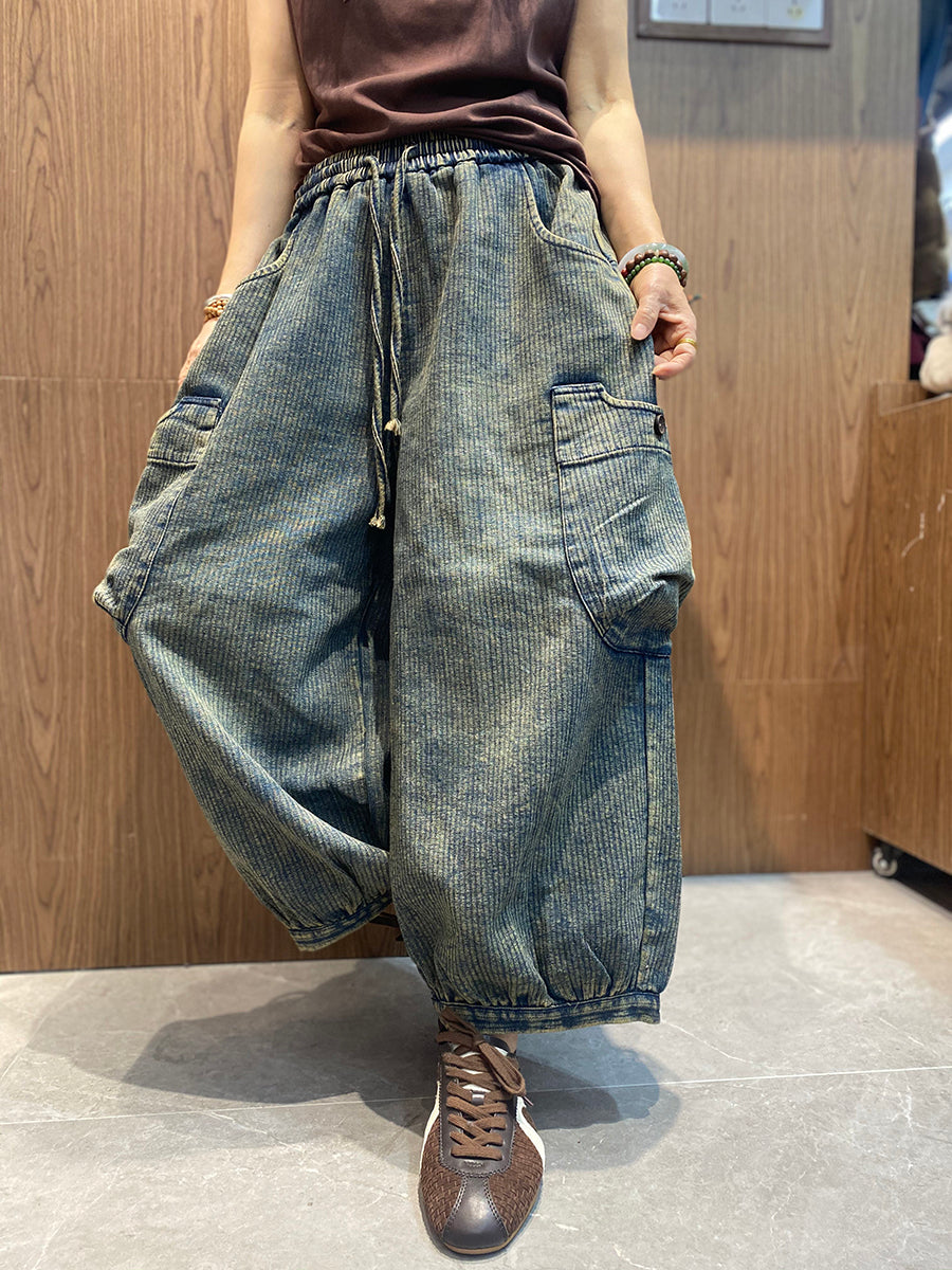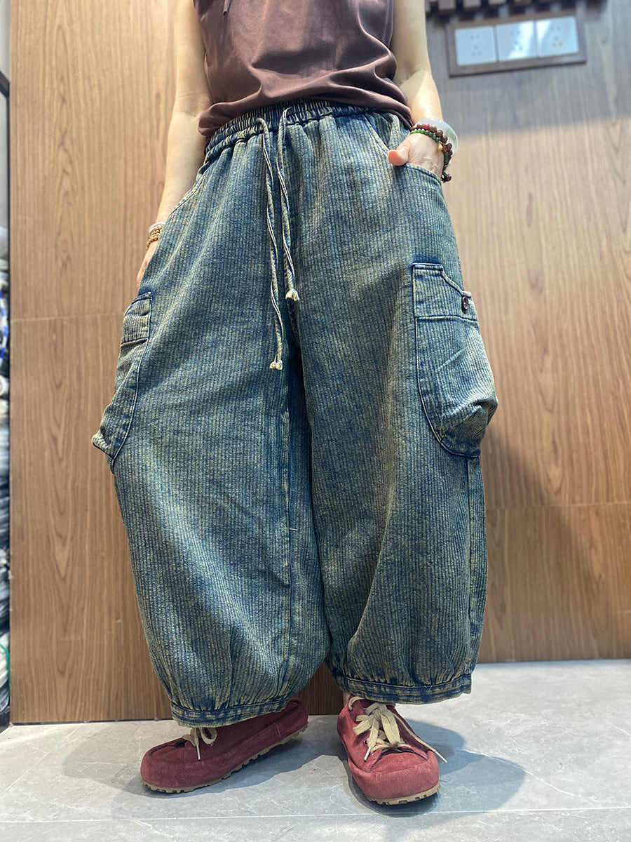 レディース 春 ヴィンテージ デニム ハーレムパンツ