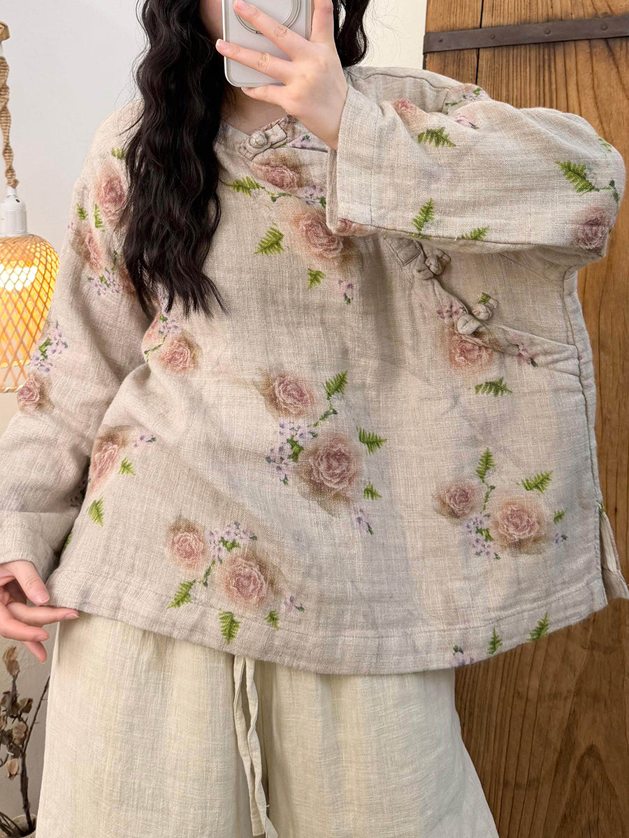 レディース アーティスティック スプリングフラワー Oネック ブラウス