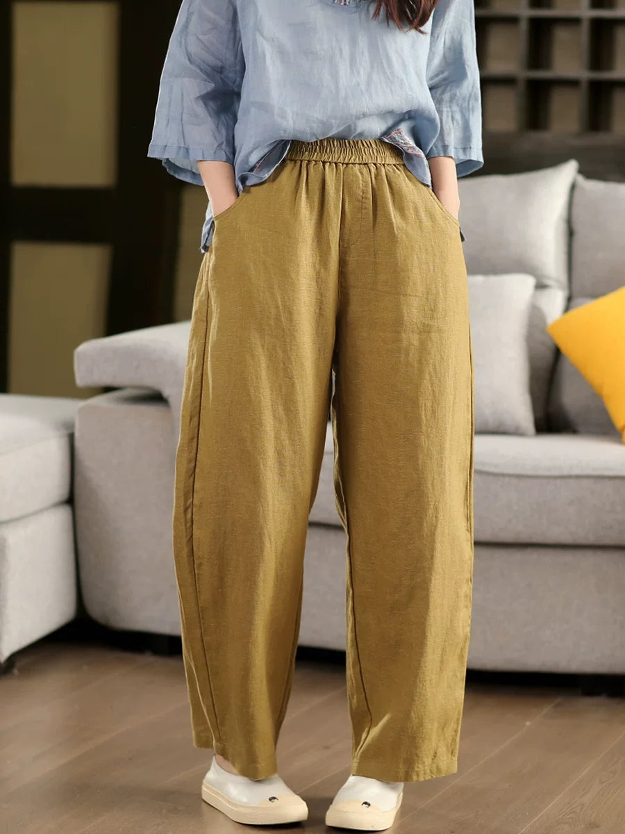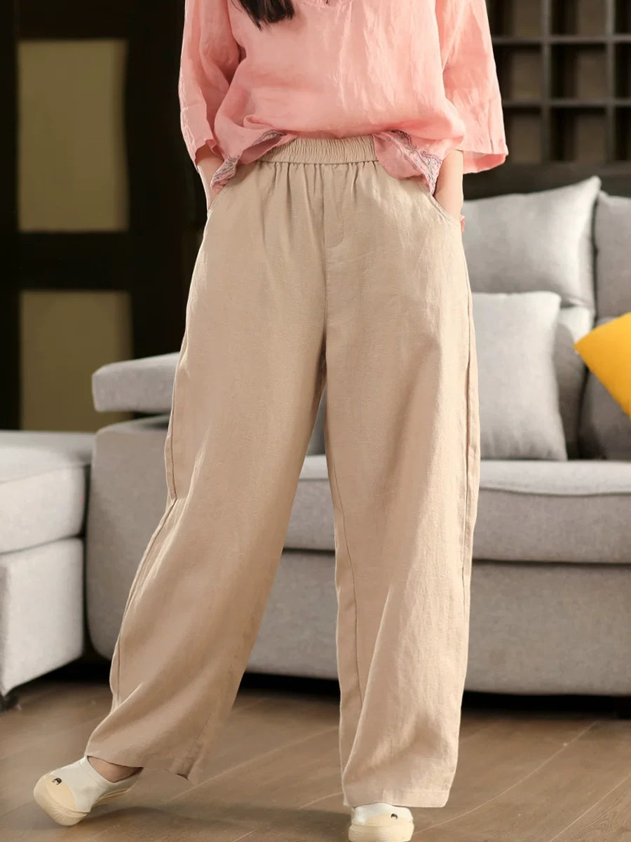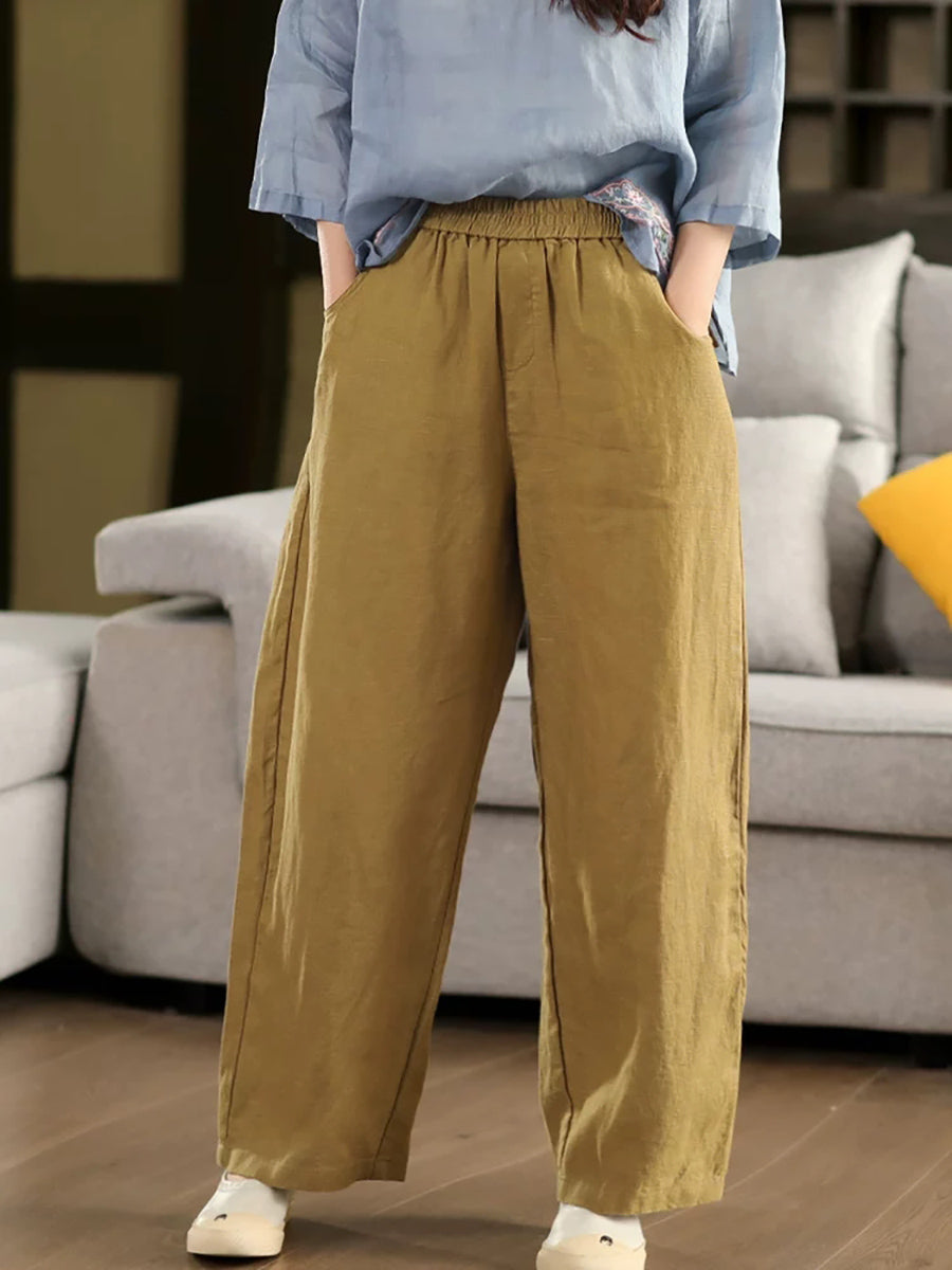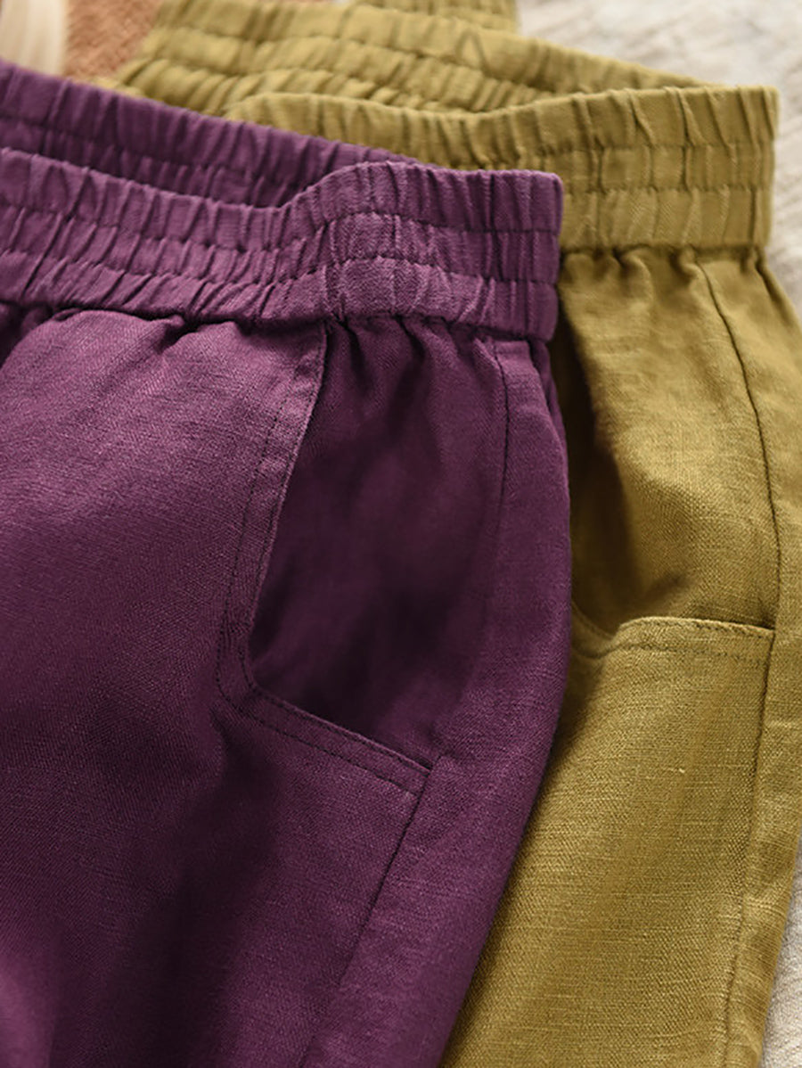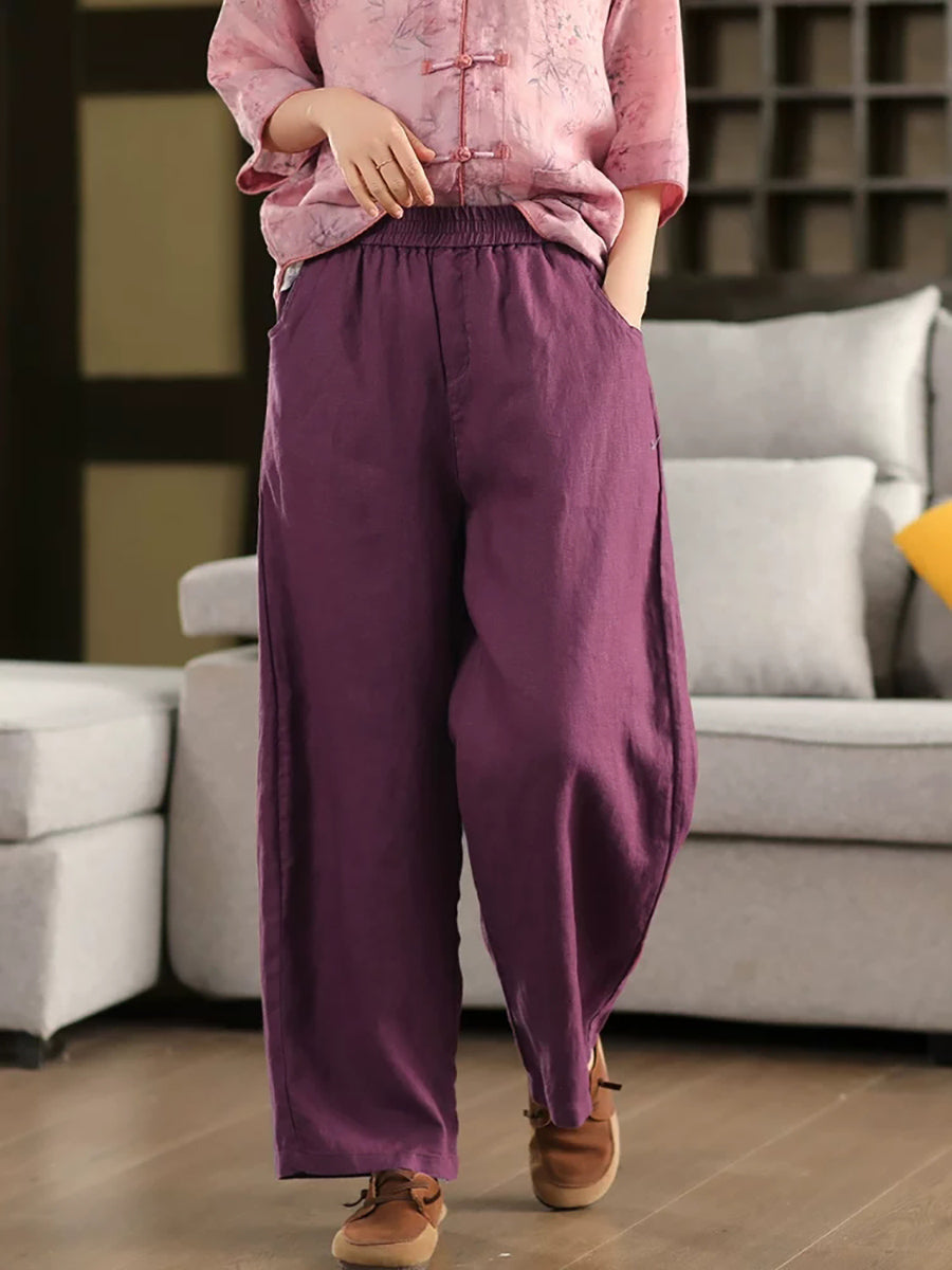 レディース 春 カジュアル ピュアカラー 100%リネン ハーレムパンツ