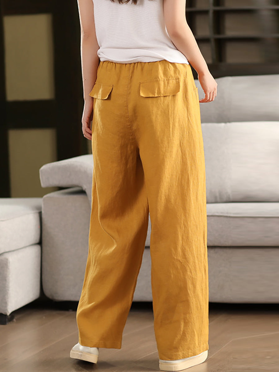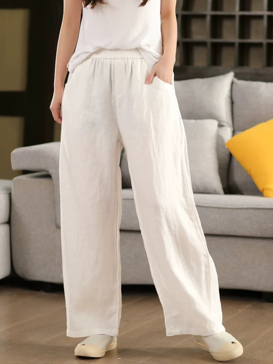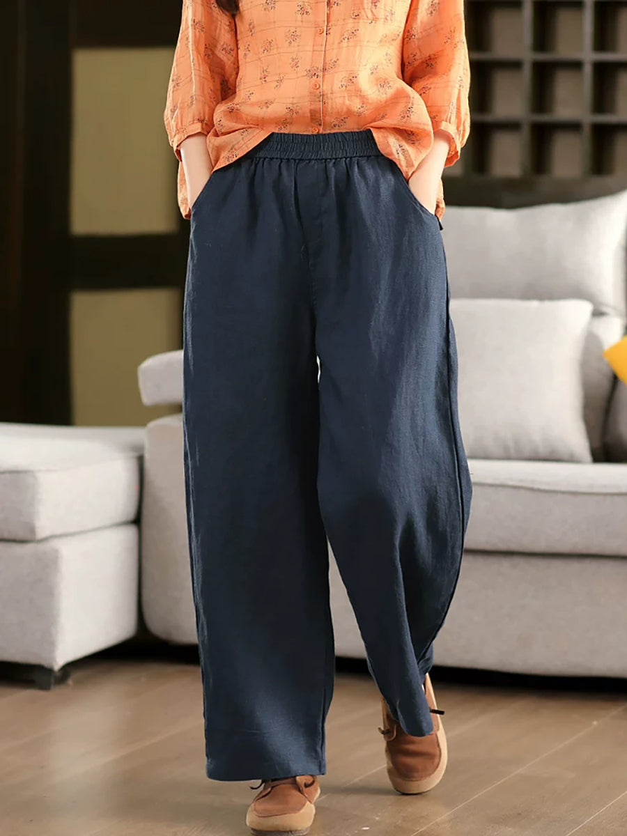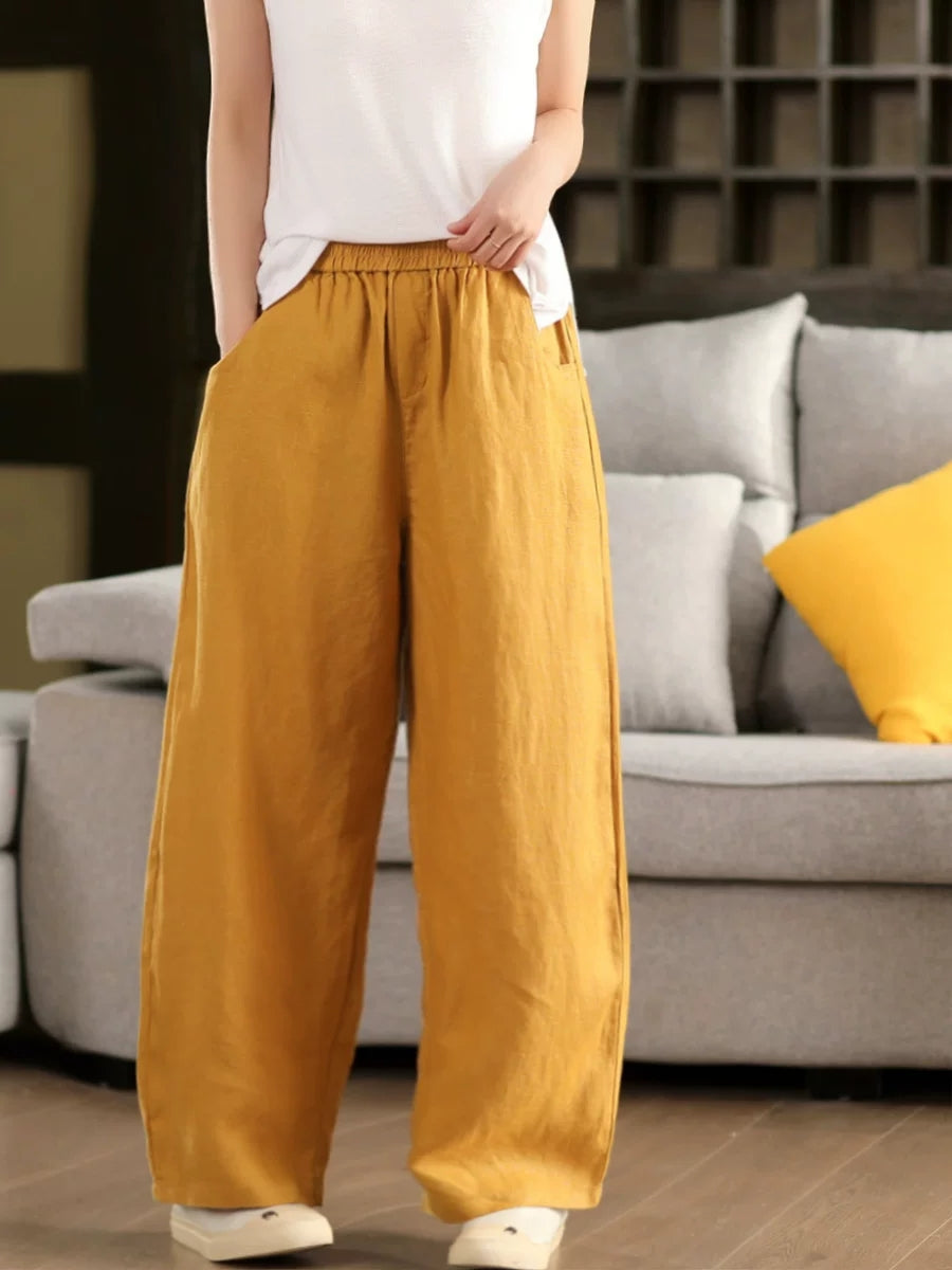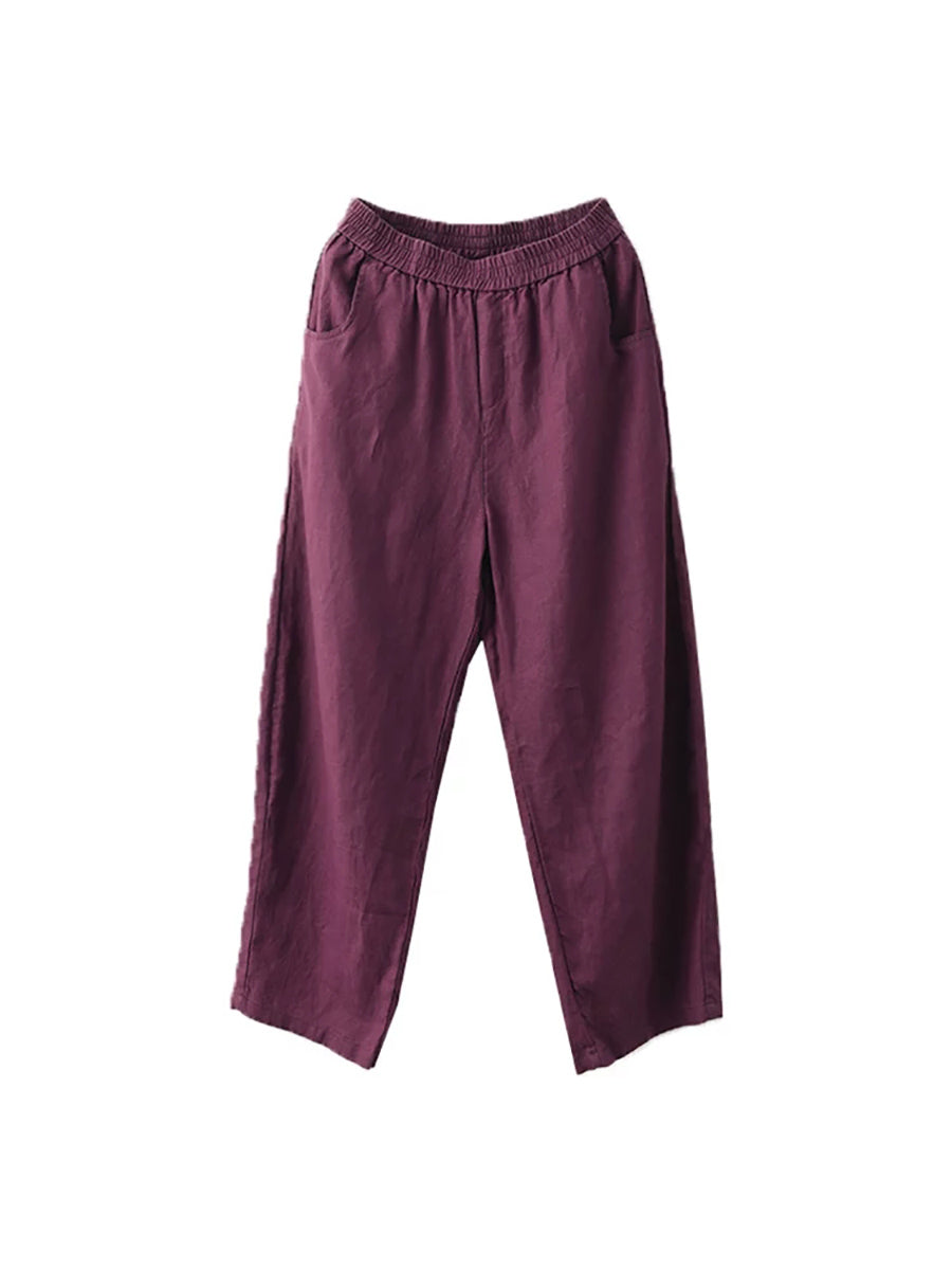 レディース 春 カジュアル ピュアカラー 100%リネン ハーレムパンツ