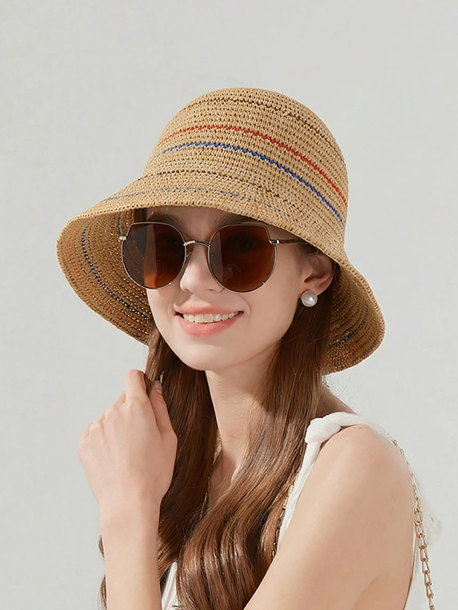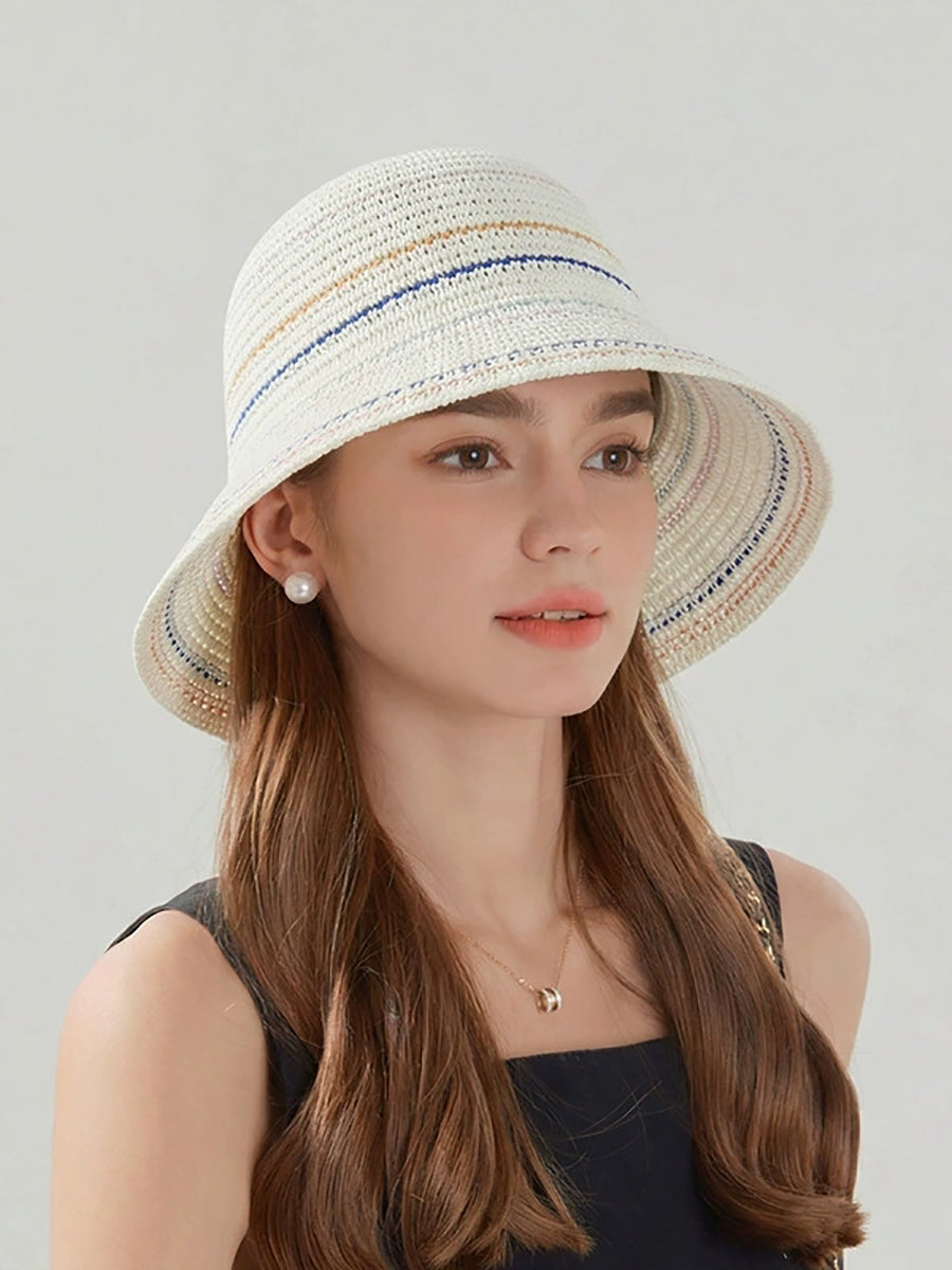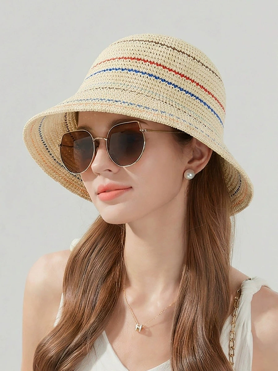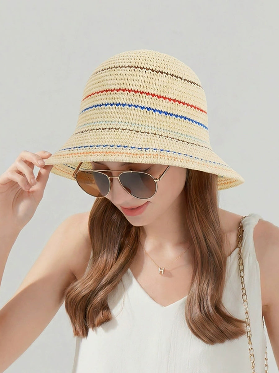 レディース サマーストライプ 日焼け防止バケットハット