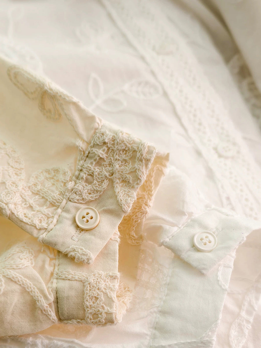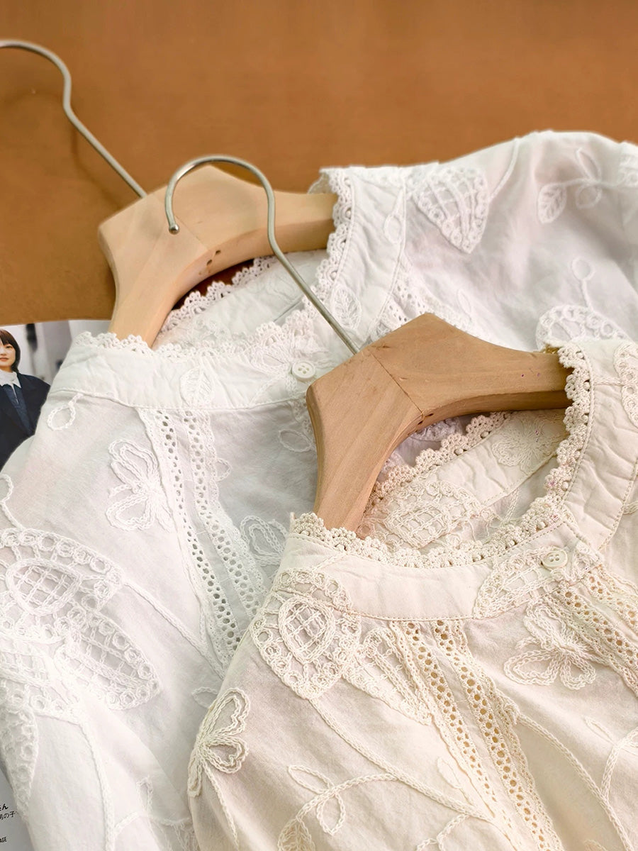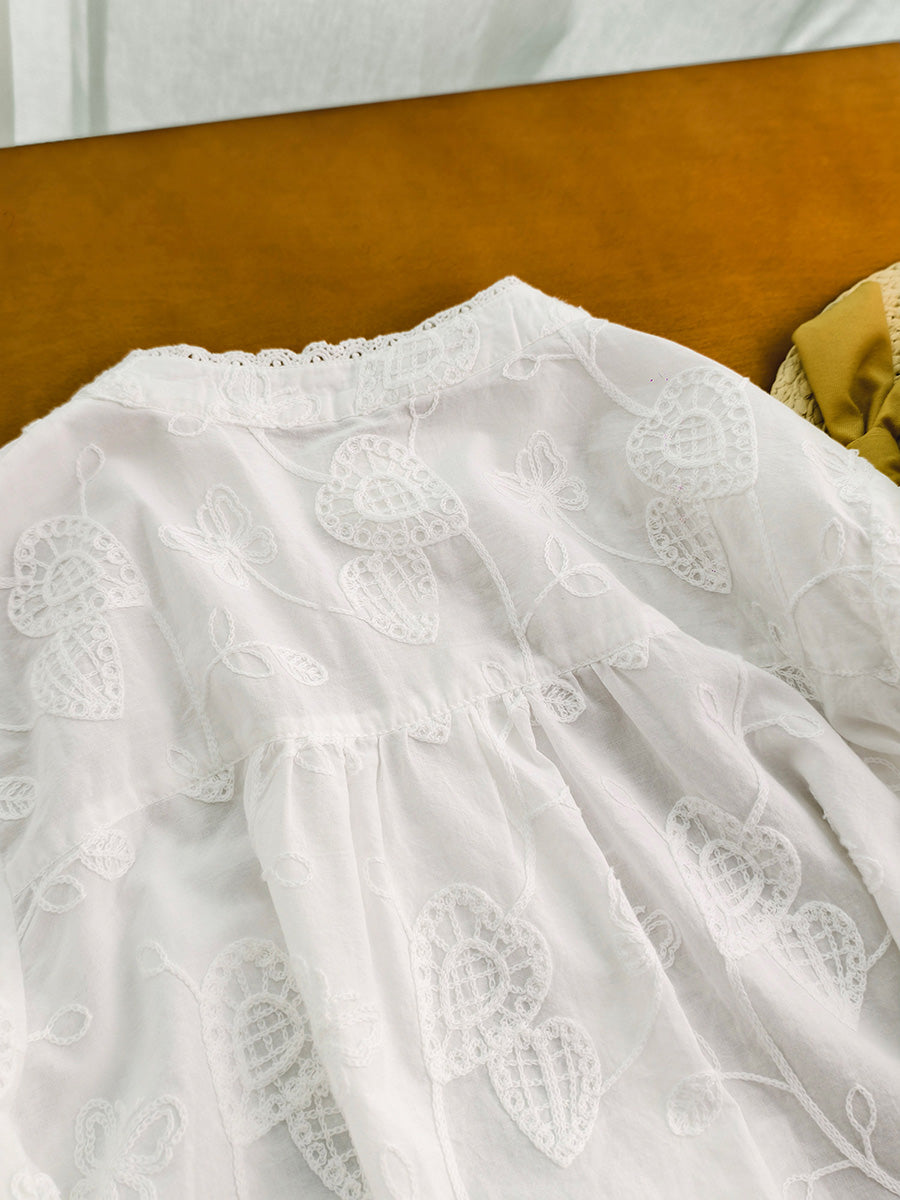 レディース 夏物 アーティスティック刺繍入りコットンシャツ