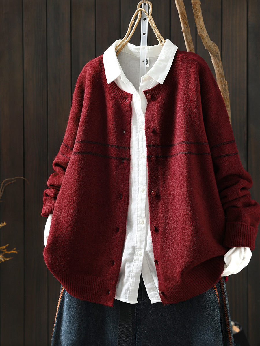 レディース 秋 アーティスティック ストライプ ニット Oネック セーター