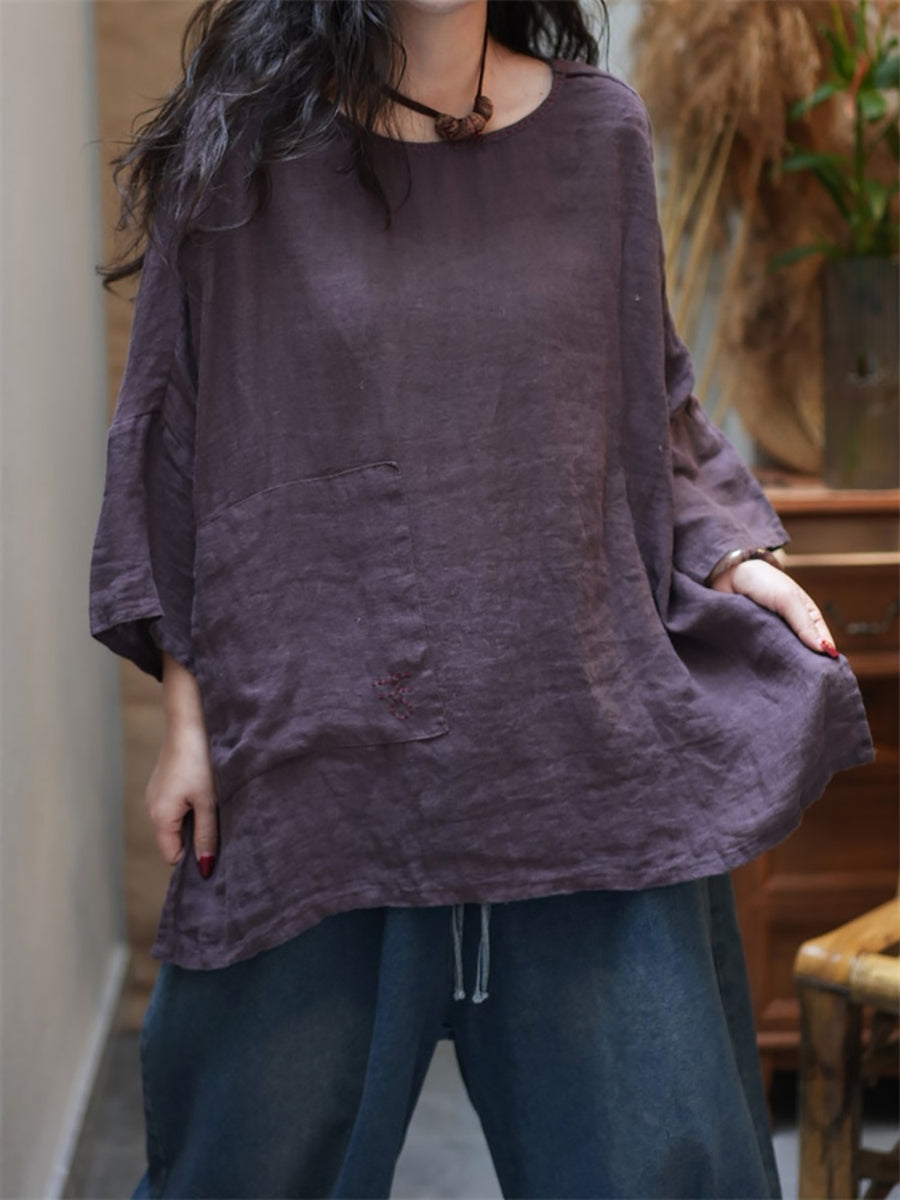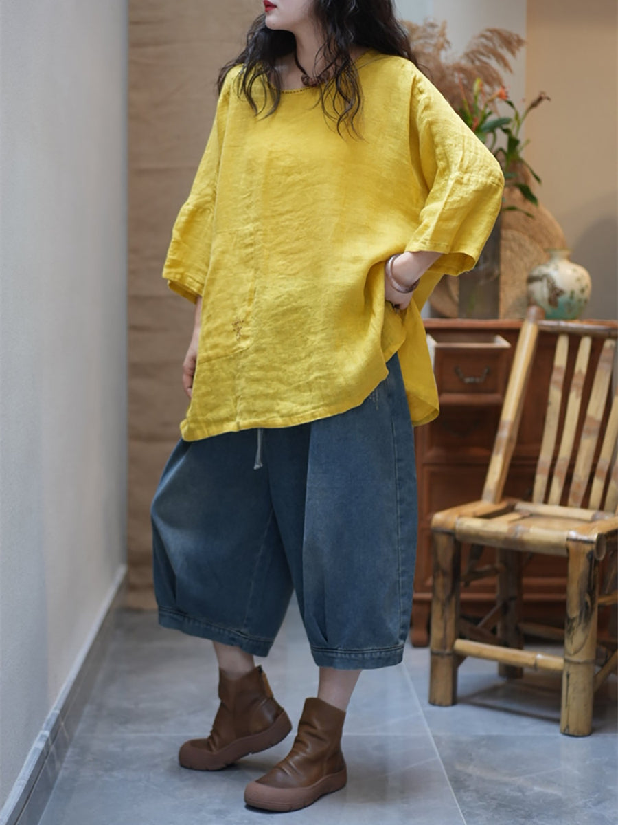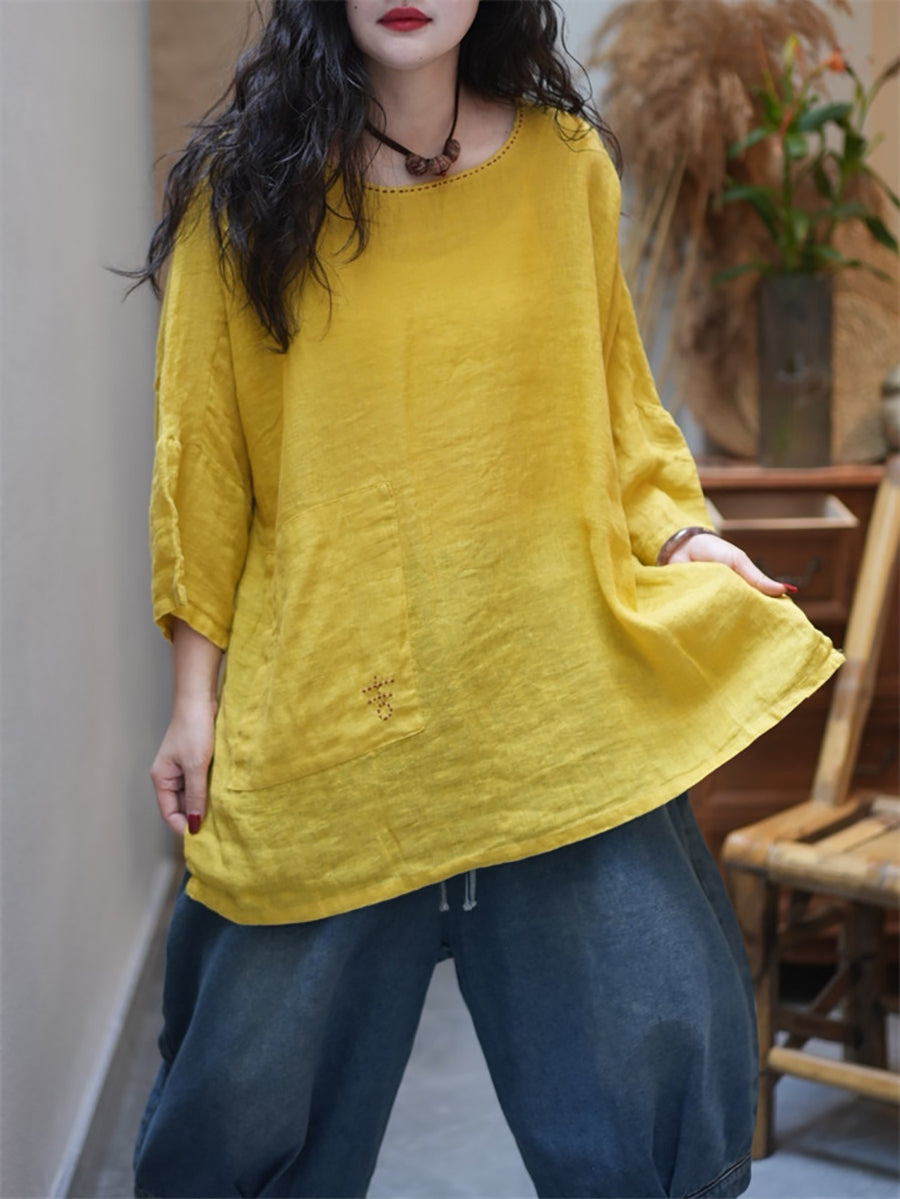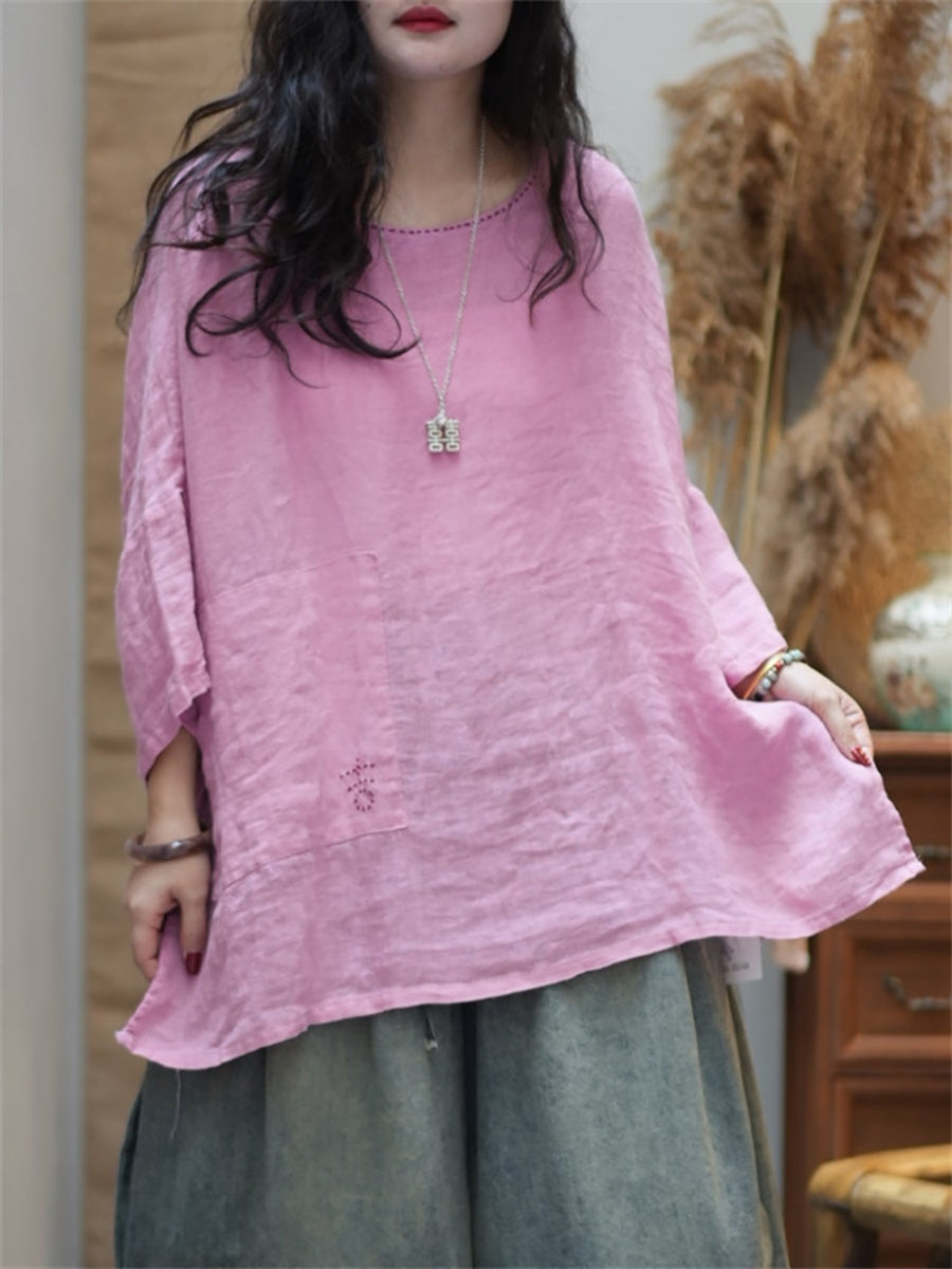 レディース サマー カジュアル ピュアカラー Oネック ブラウス