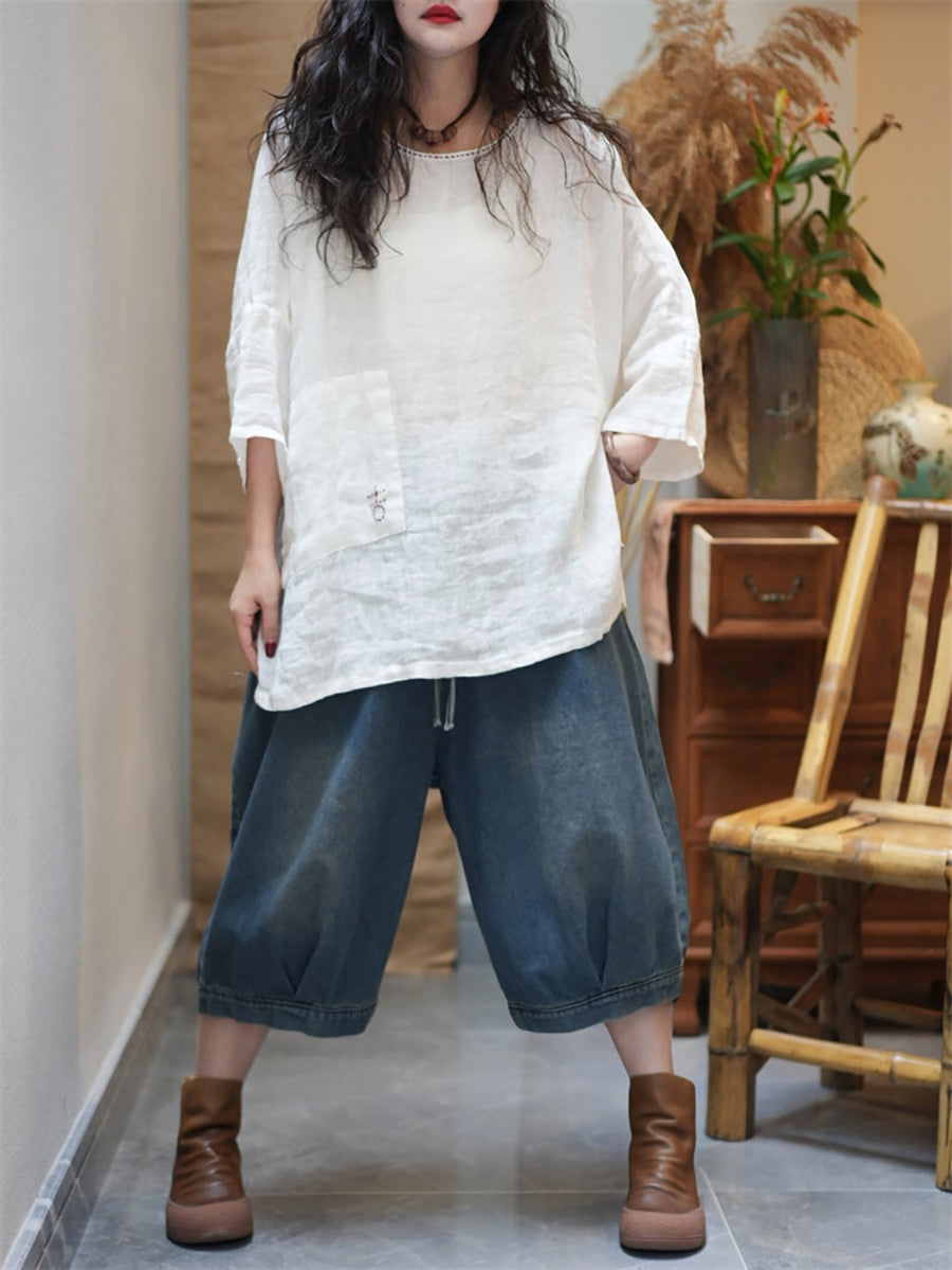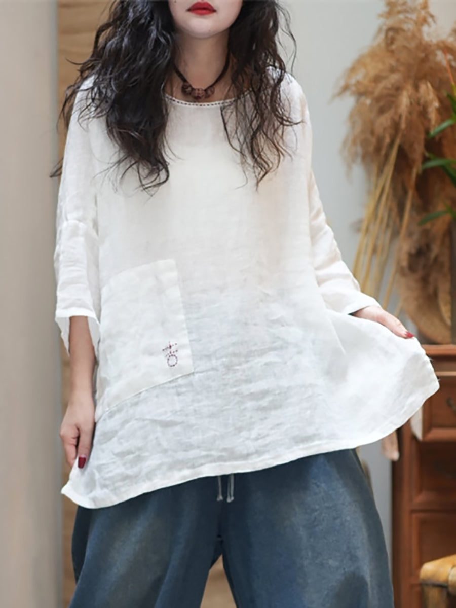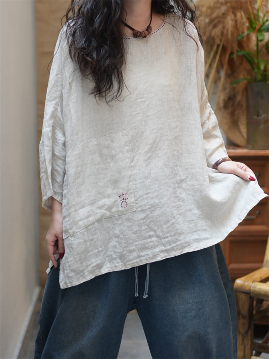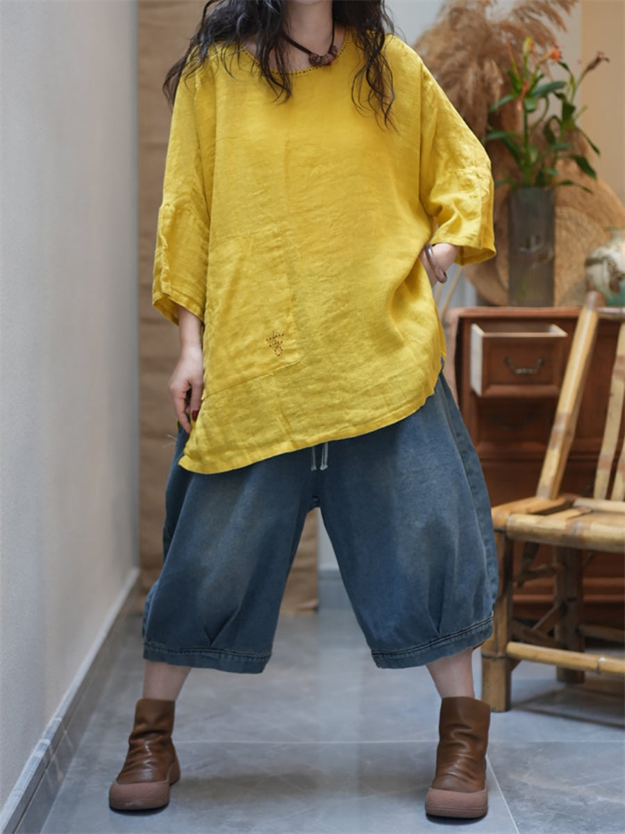 レディース サマー カジュアル ピュアカラー Oネック ブラウス