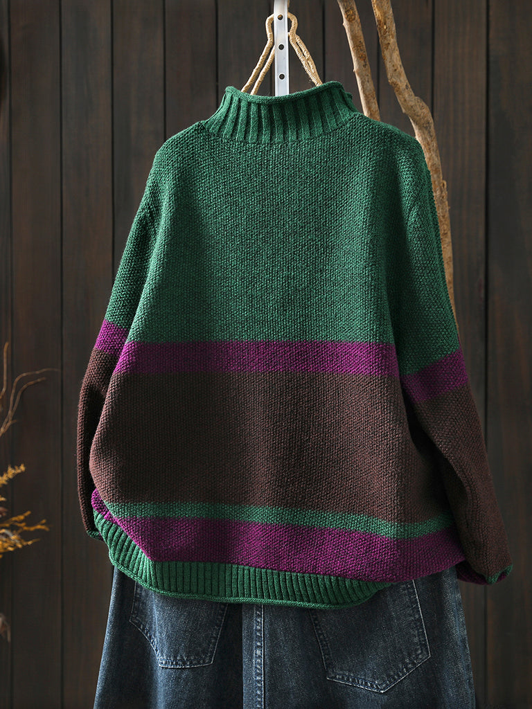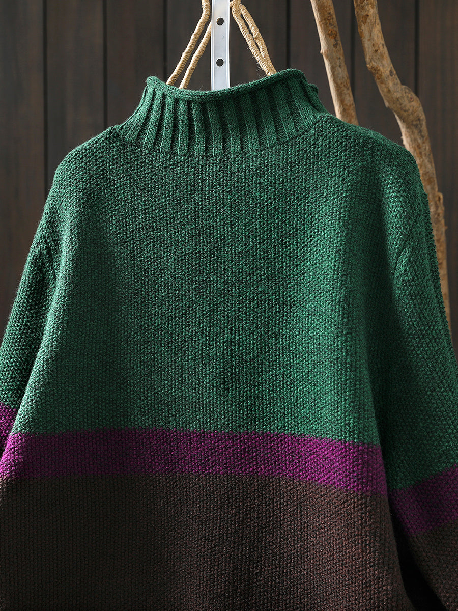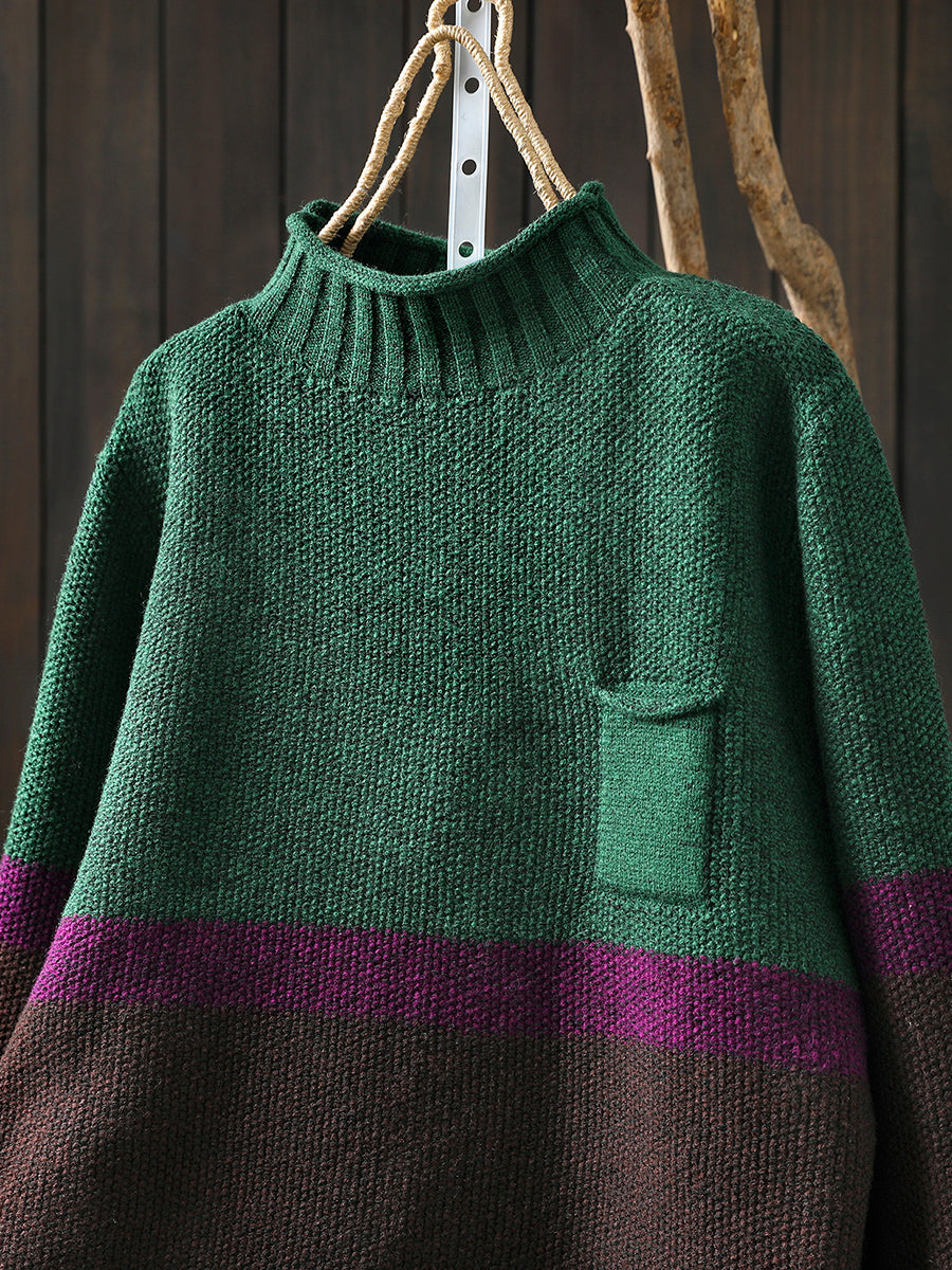 レディース 秋 アーティスティック カラーブロック ニット ハーフタートルネック セーター
