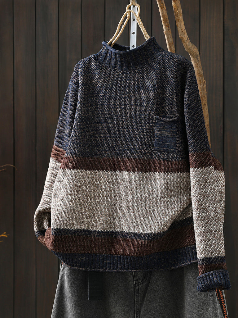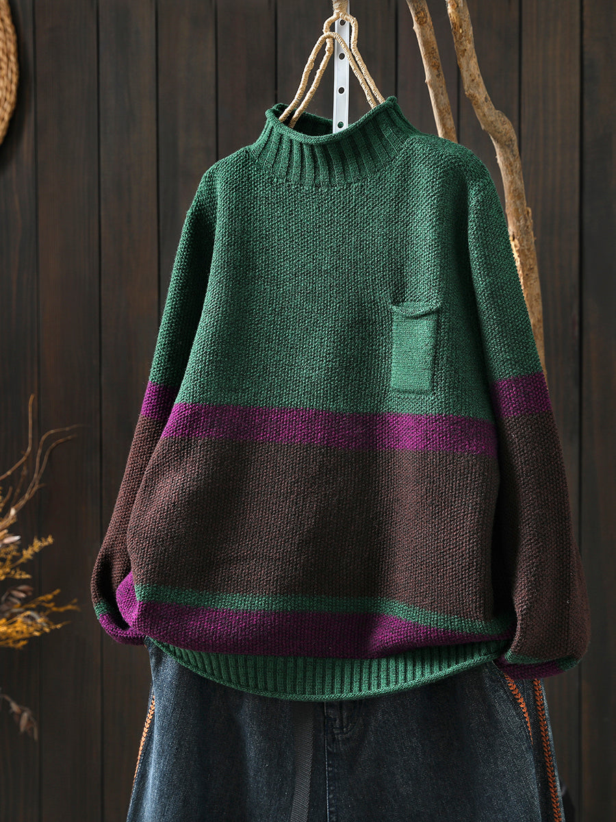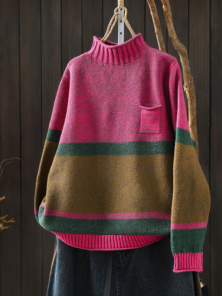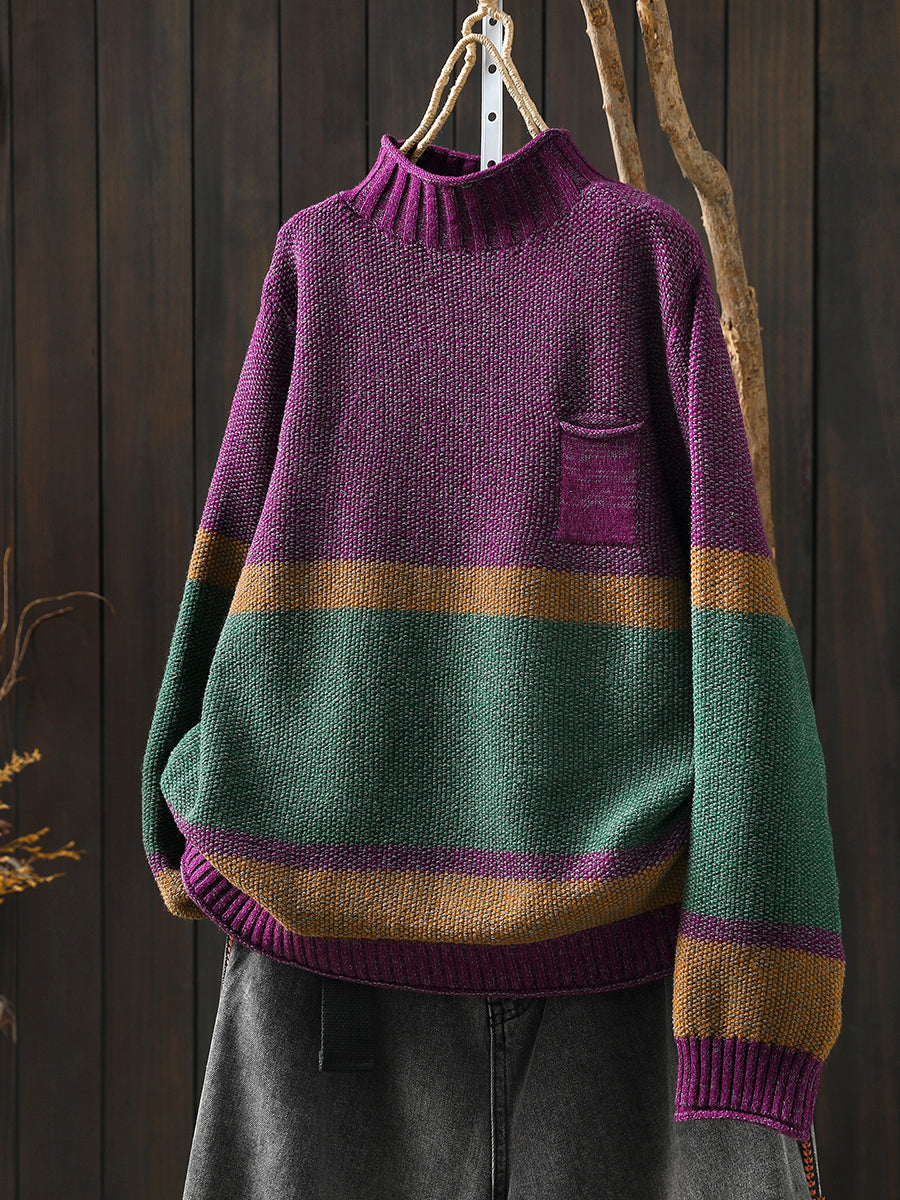 レディース 秋 アーティスティック カラーブロック ニット ハーフタートルネック セーター