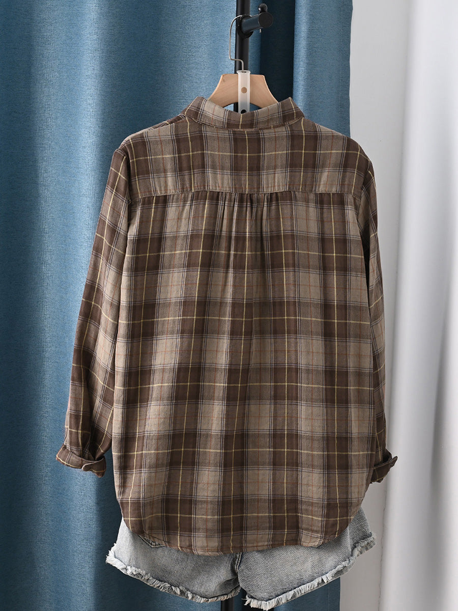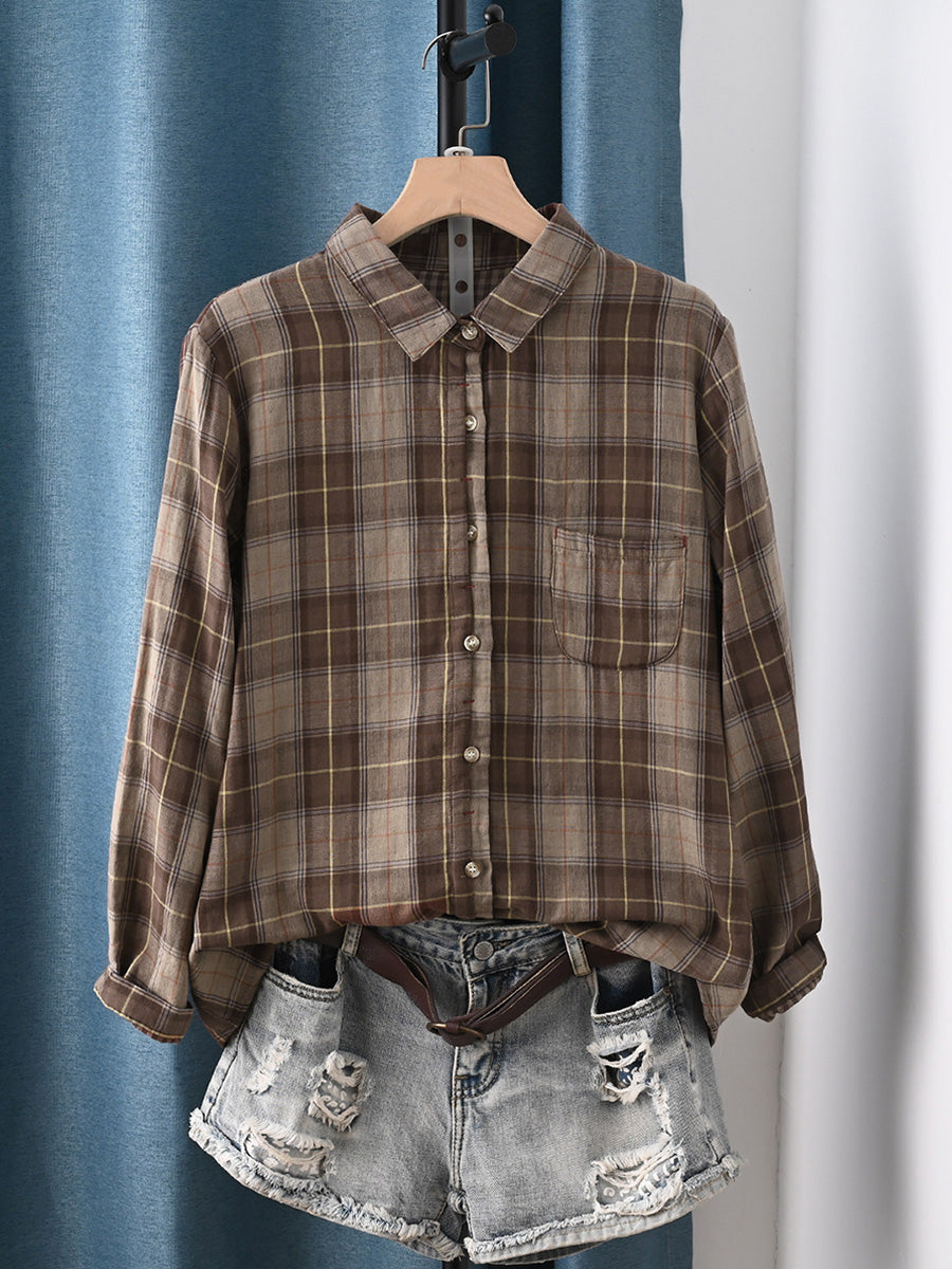 レディース アーティスティック スプリング チェック柄 100%コットンシャツ