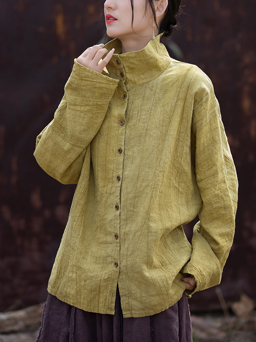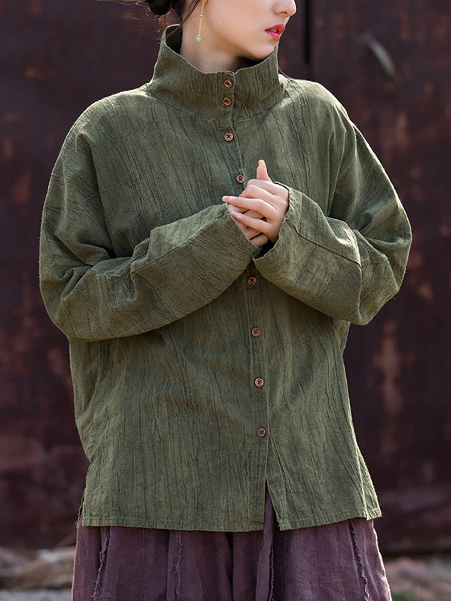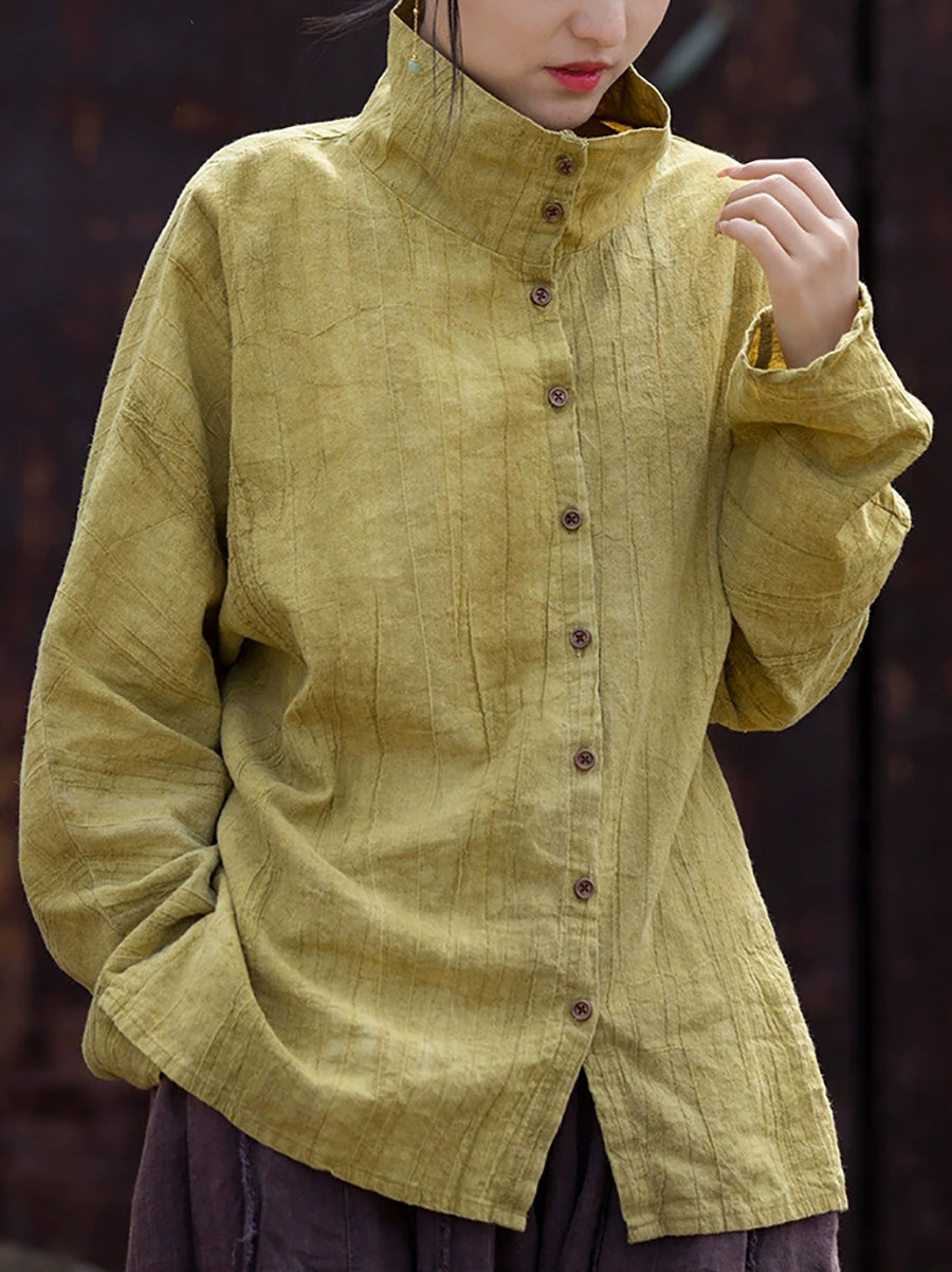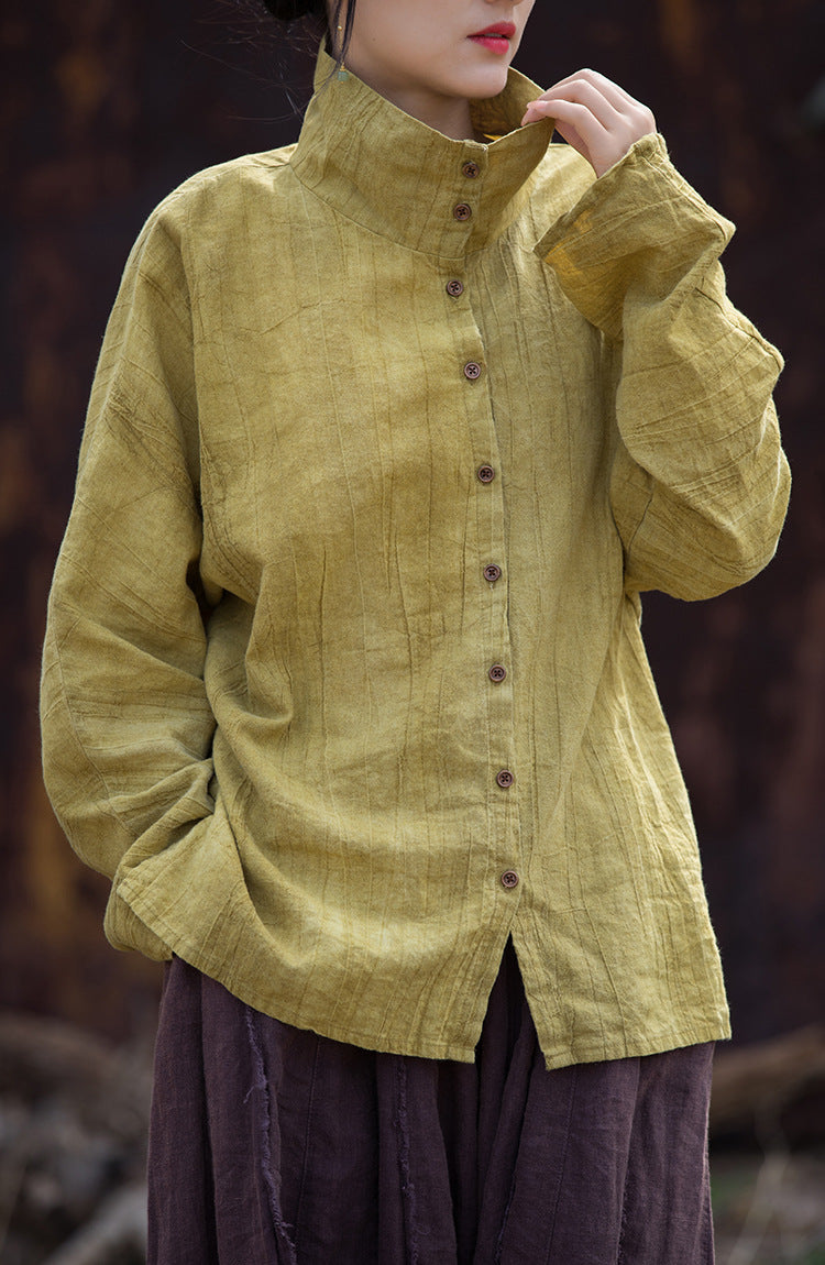 レディース 春のアーティスティックなタイダイ柄スタンドカラーシャツ