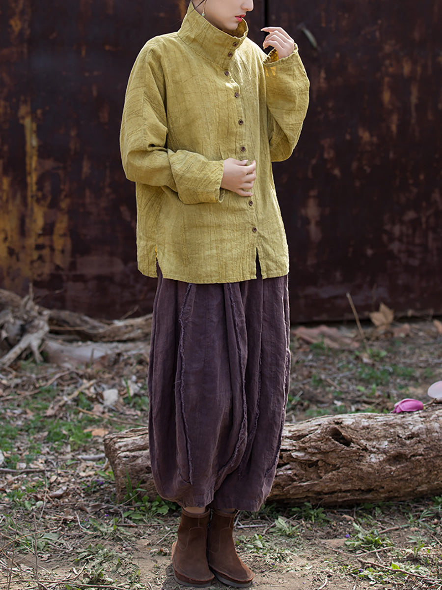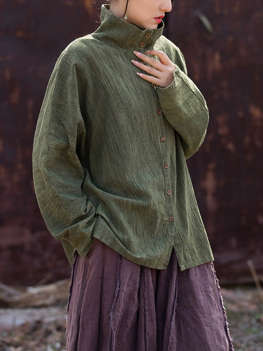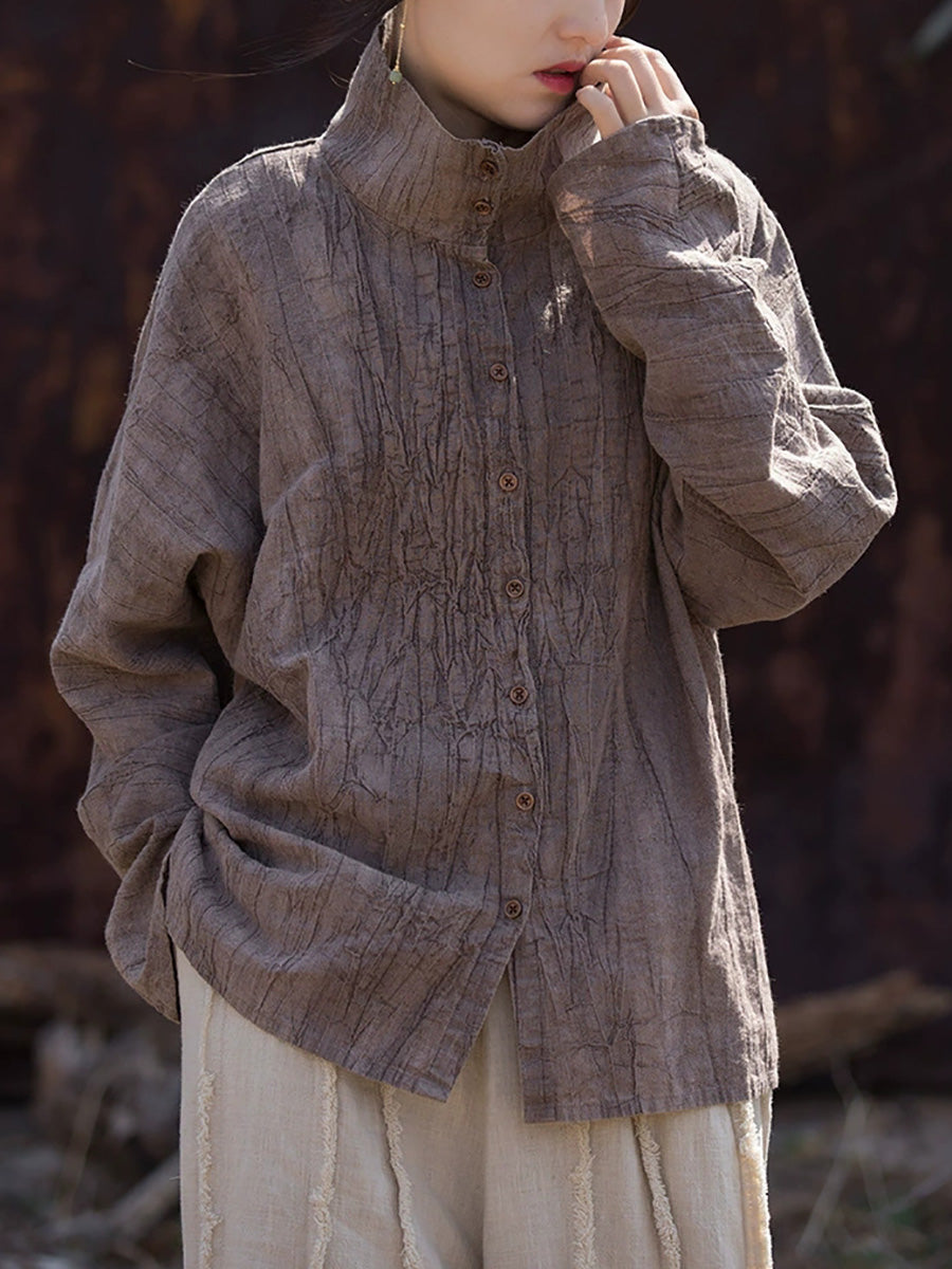 レディース 春のアーティスティックなタイダイ柄スタンドカラーシャツ