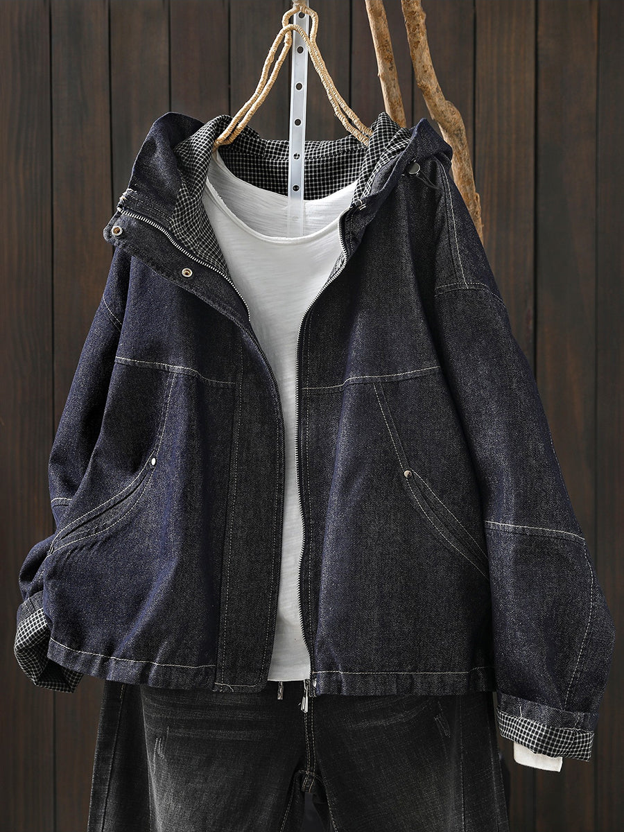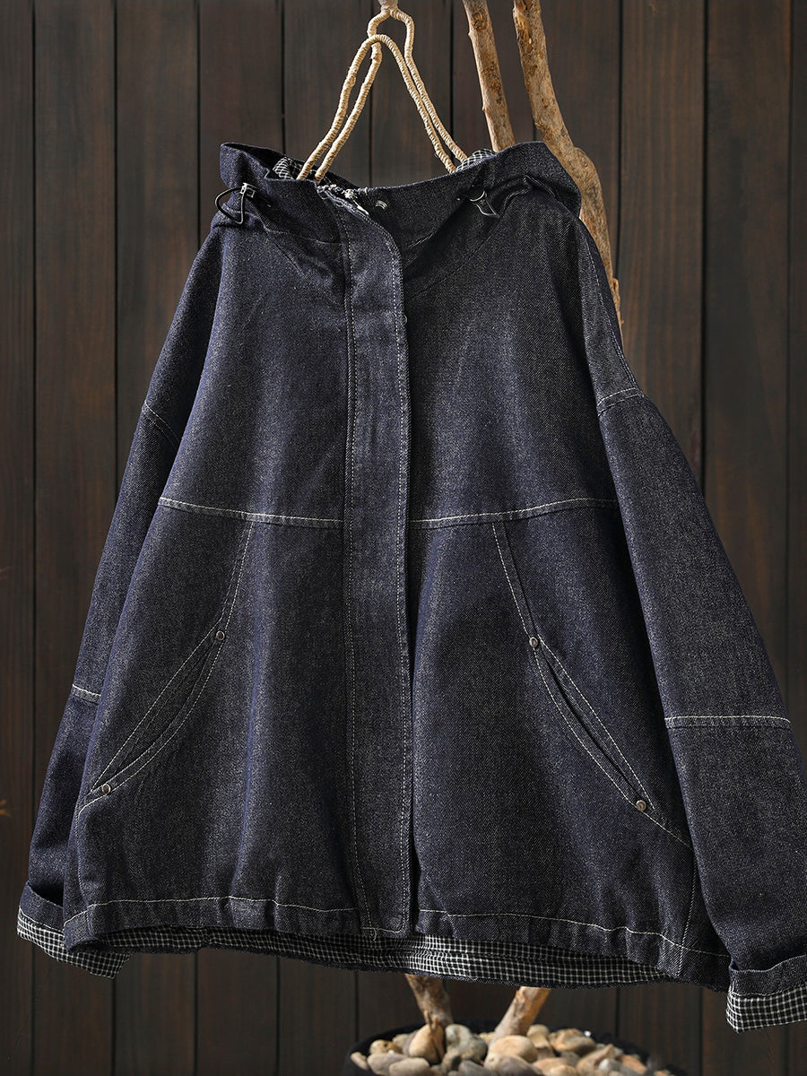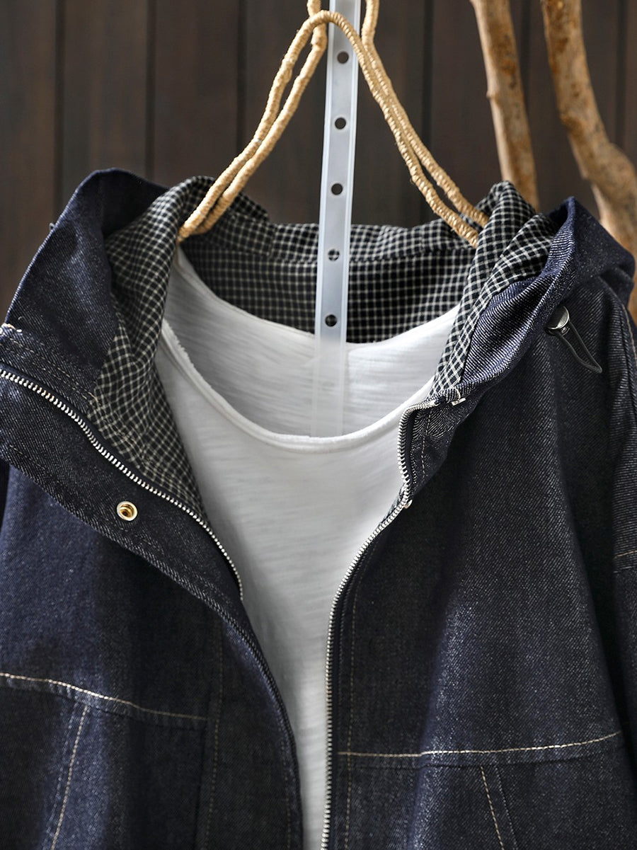 レディース 春 レトロ ピュアカラー フード付き デニムコート