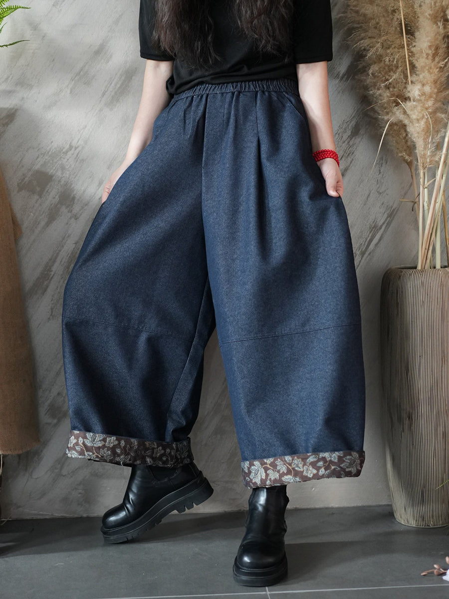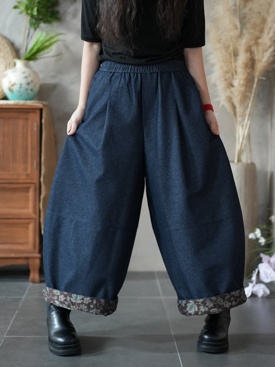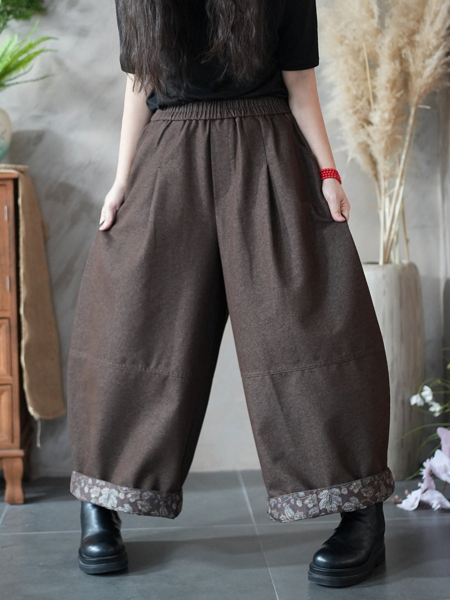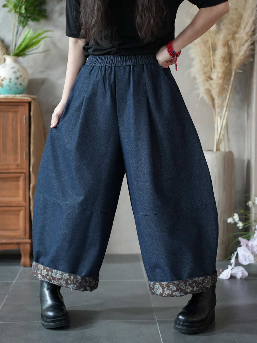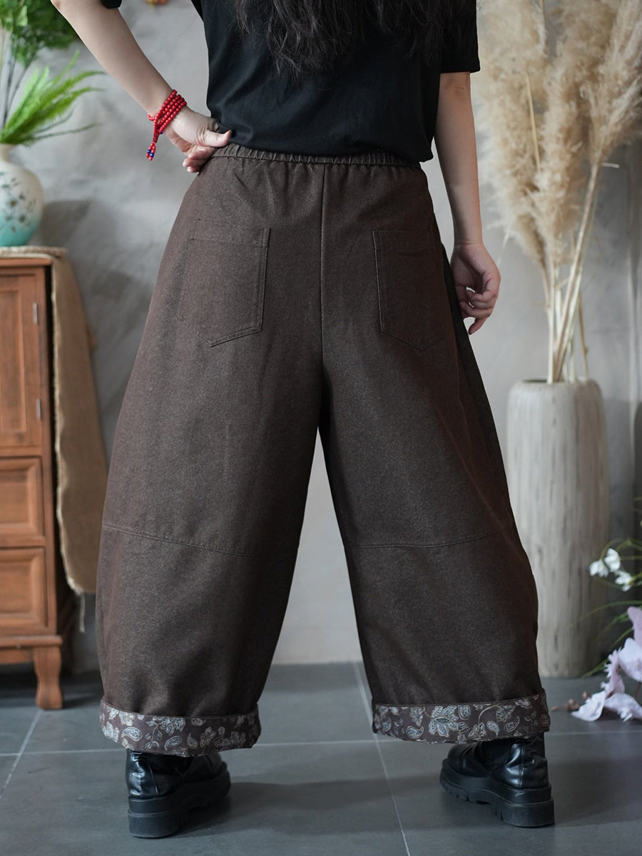 レディース 春 ヴィンテージ フラワー スプライス ワイドレッグ パンツ