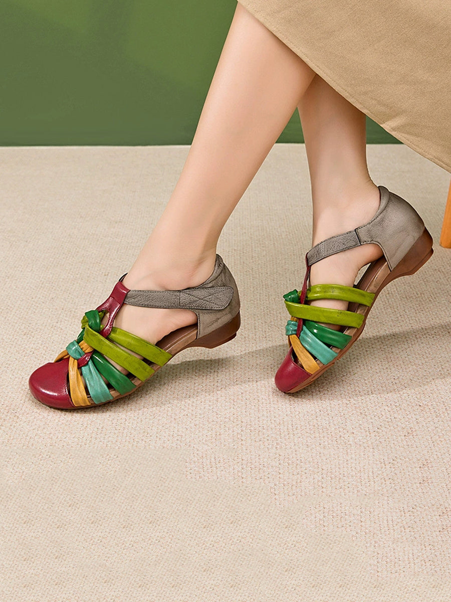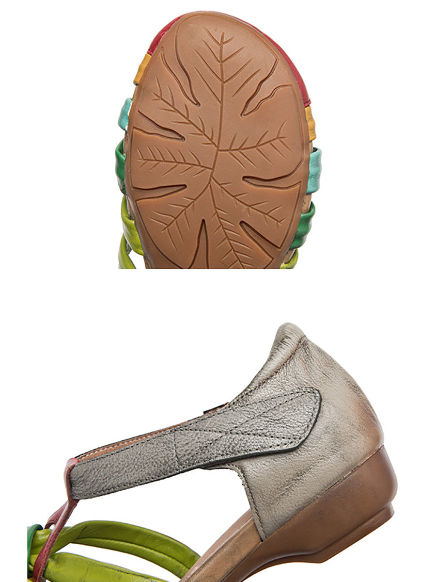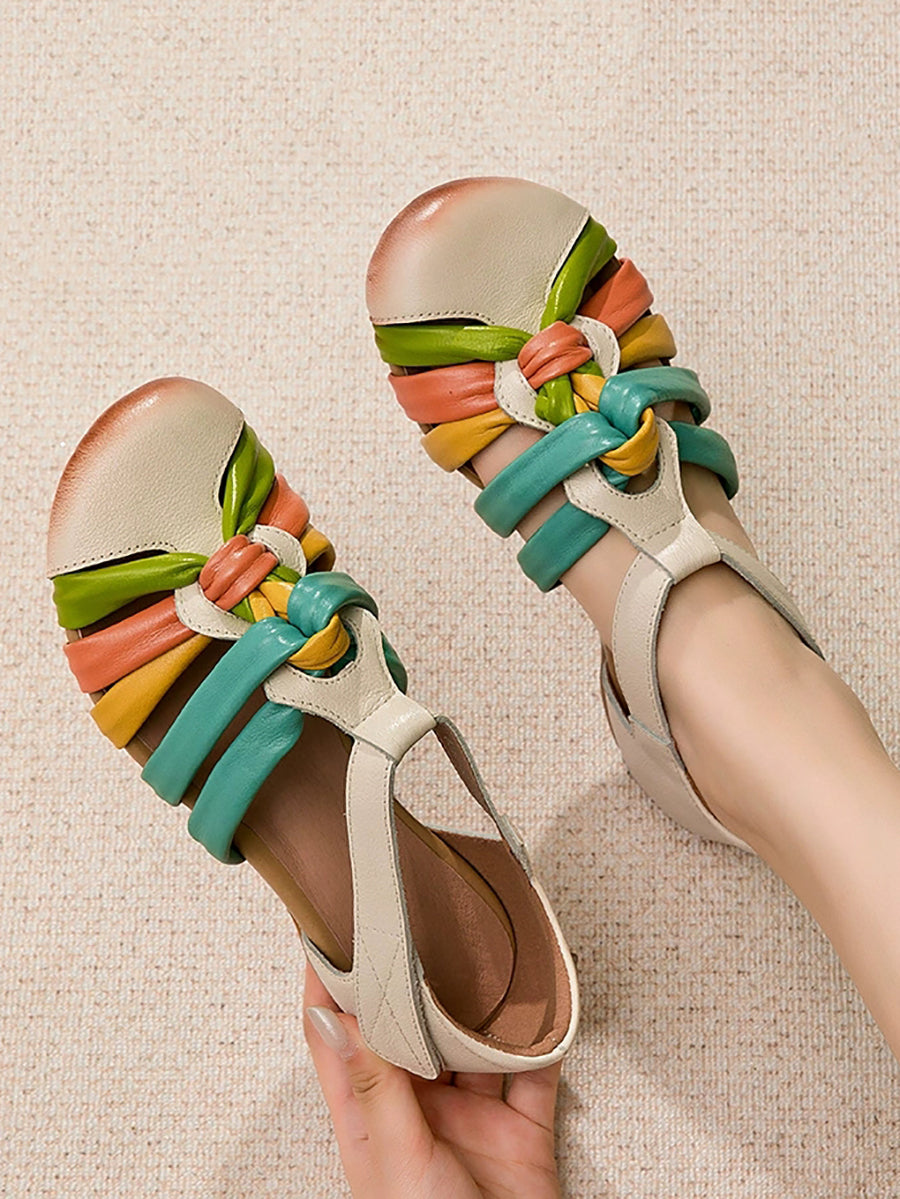 Women Summer Colorblock Genuine Leather Sandals