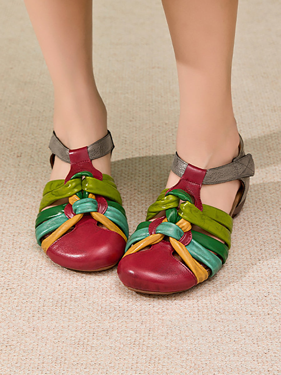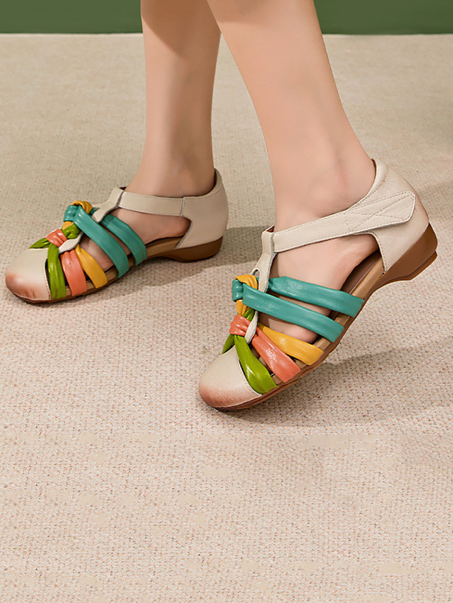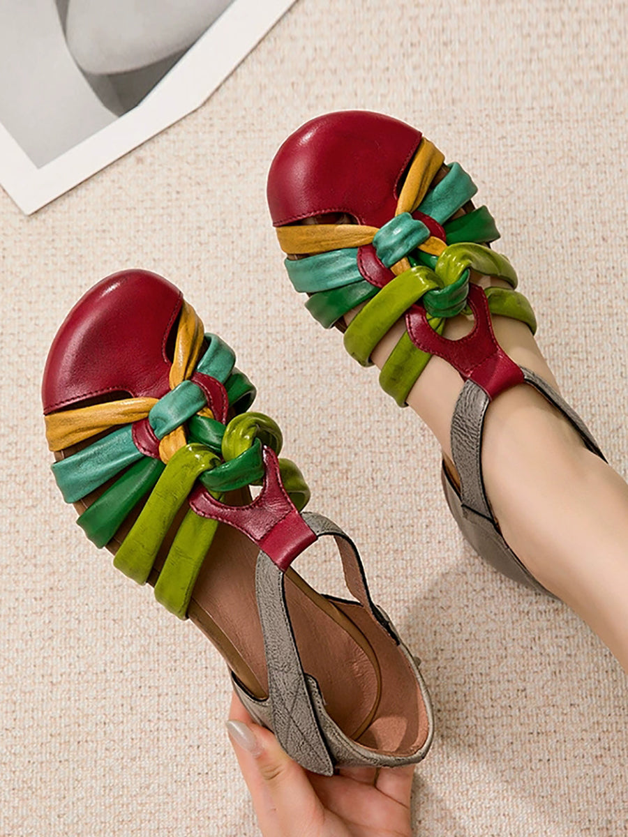 Women Summer Colorblock Genuine Leather Sandals