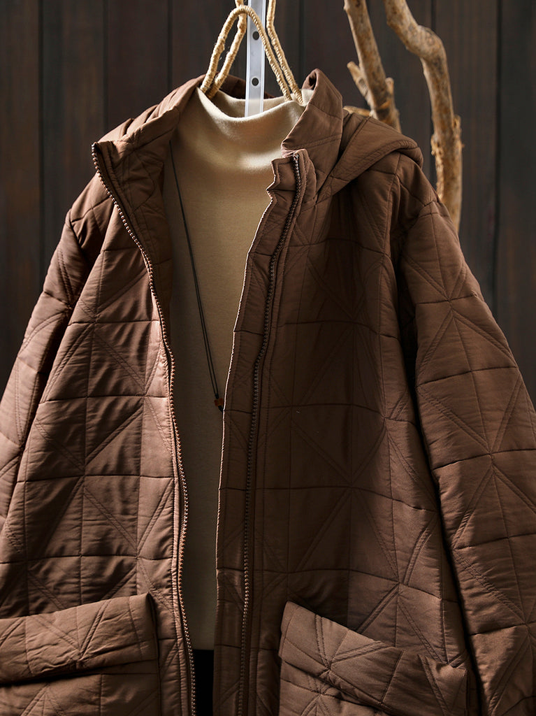 Women Autumn Casual Pure Color Hooded Padded Coat