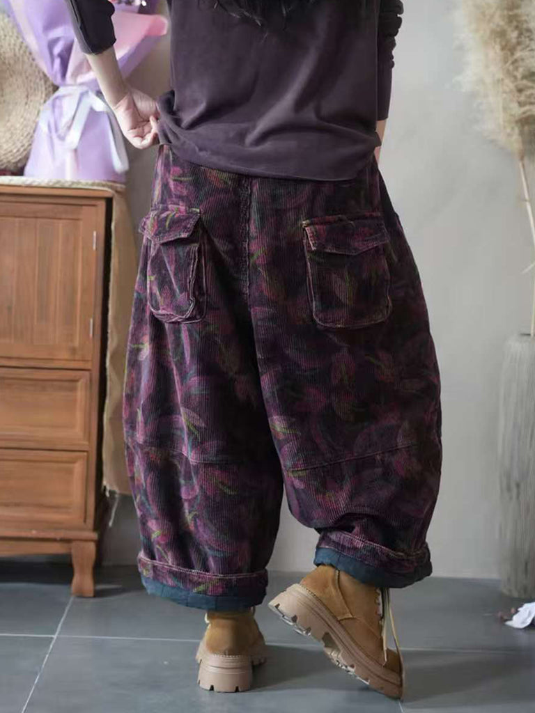 Women Autumn Retro Flower Embroidery Wide-leg Pants