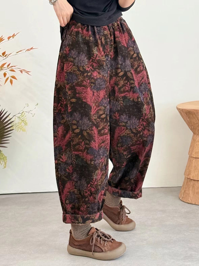 Women Winter Ethnic Flower Corduroy Harem Pants