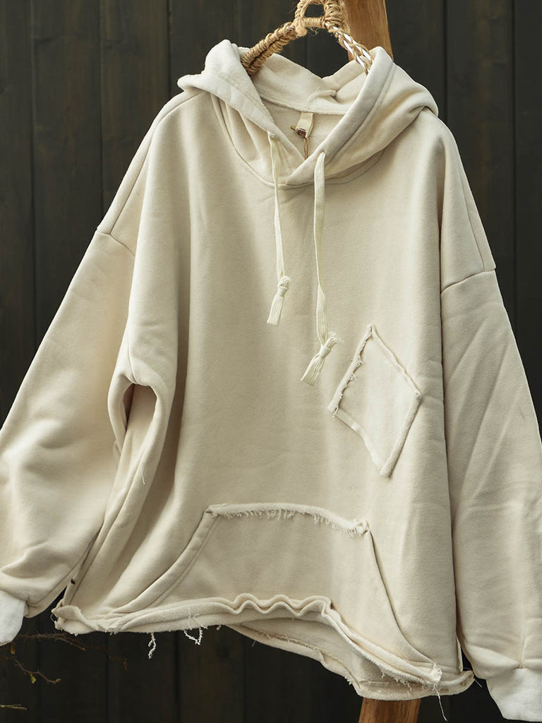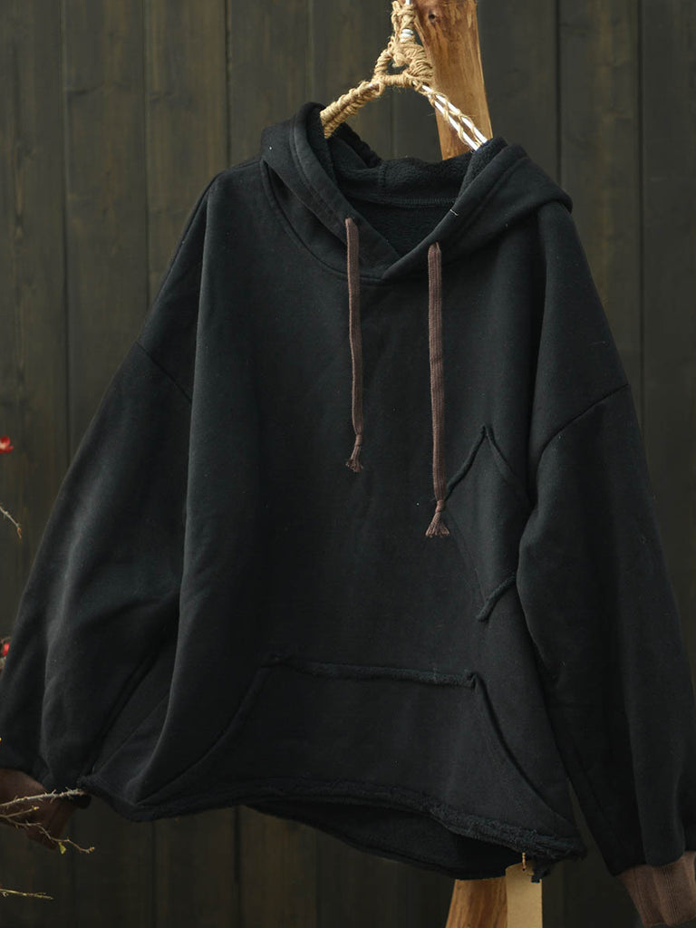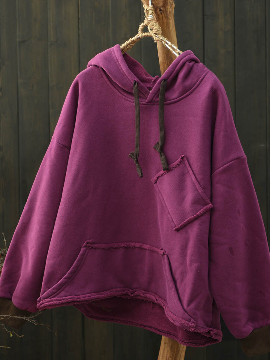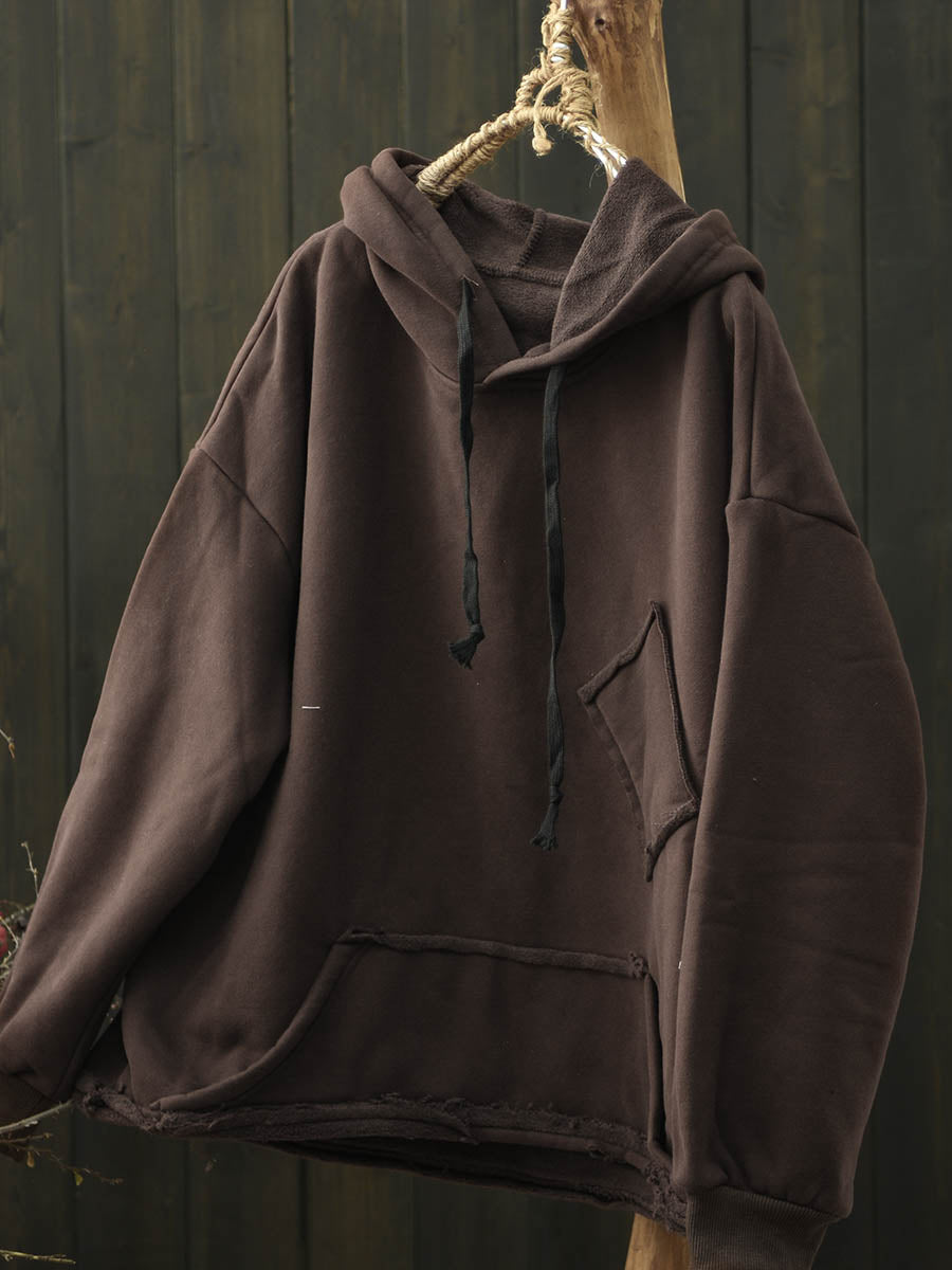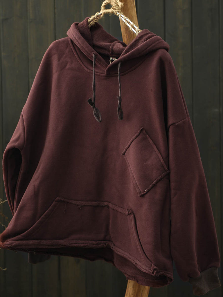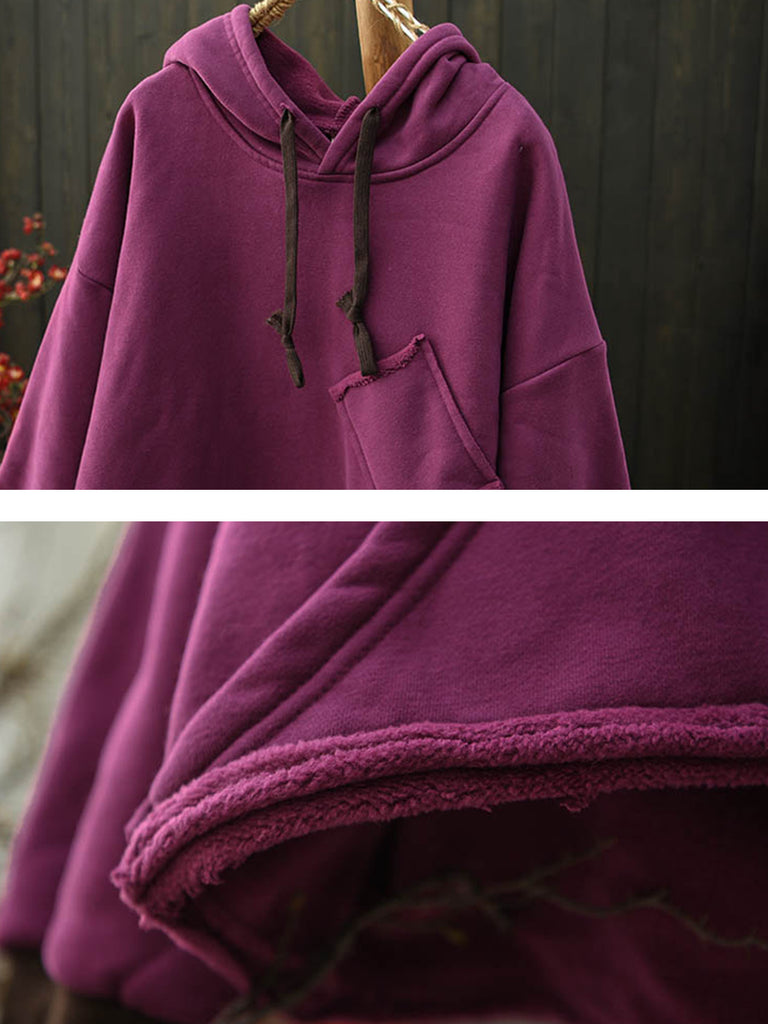 Women Winter Casual Pure Color Fleece-lined Hoodie