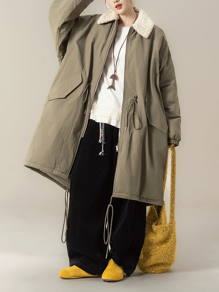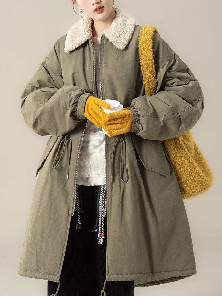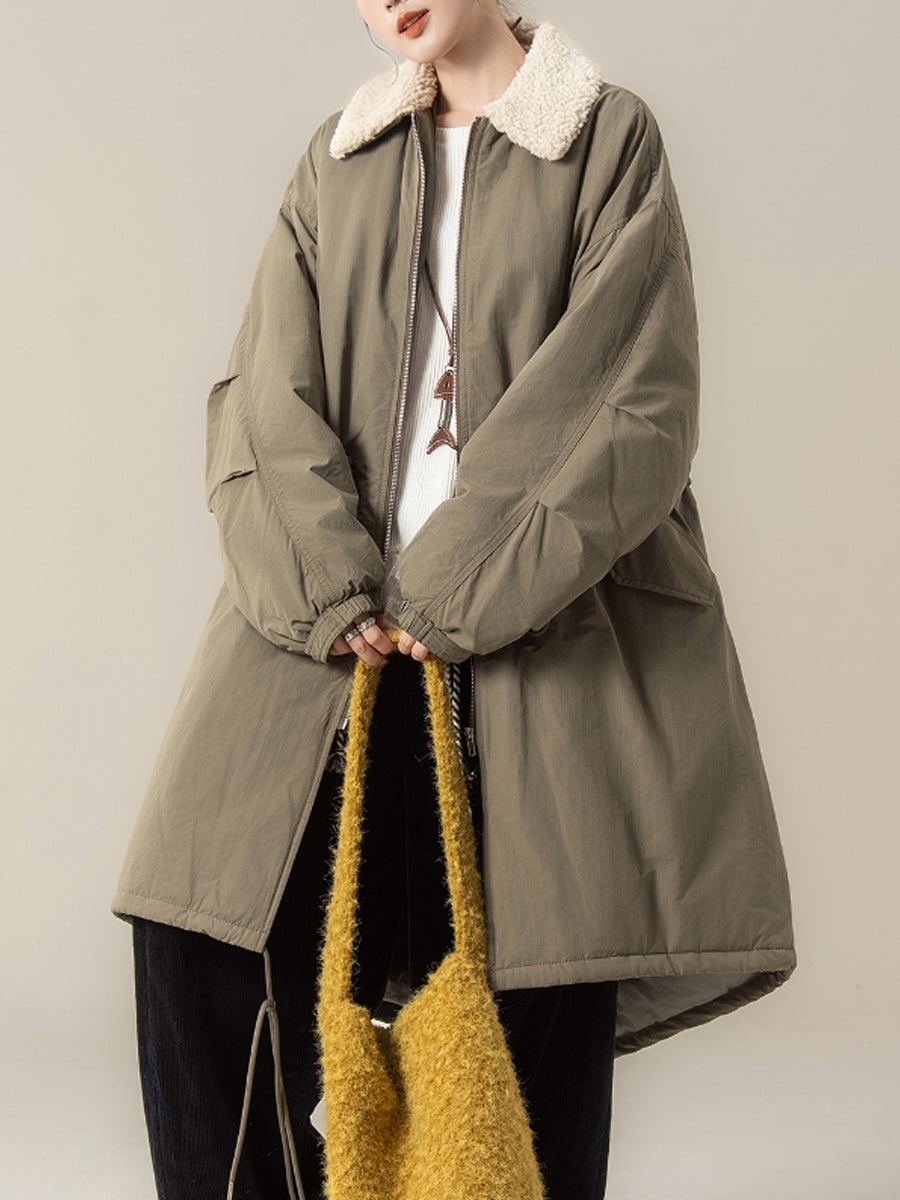 Designed for winter and autumn, this coat features a solid color design with a classic turn-down collar. It offers full-length raglan sleeves with a retro style, combining timeless elegance with practical warmth.