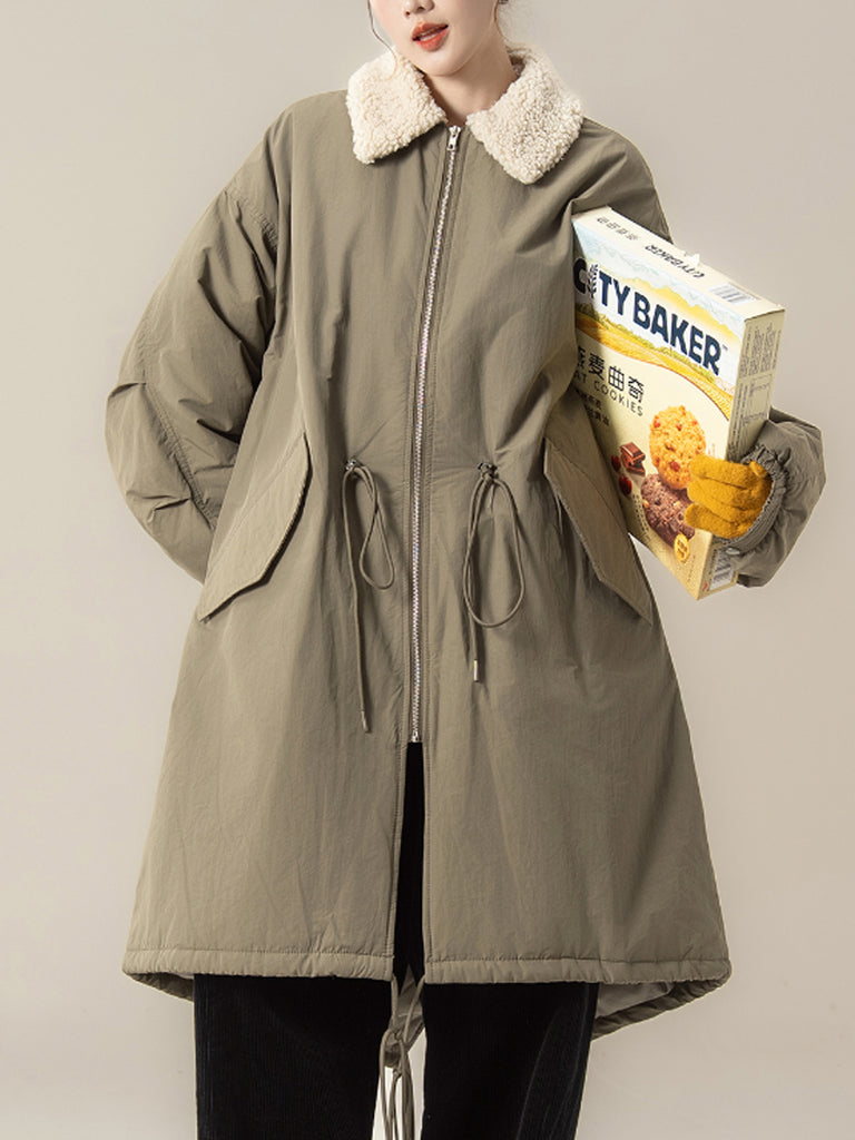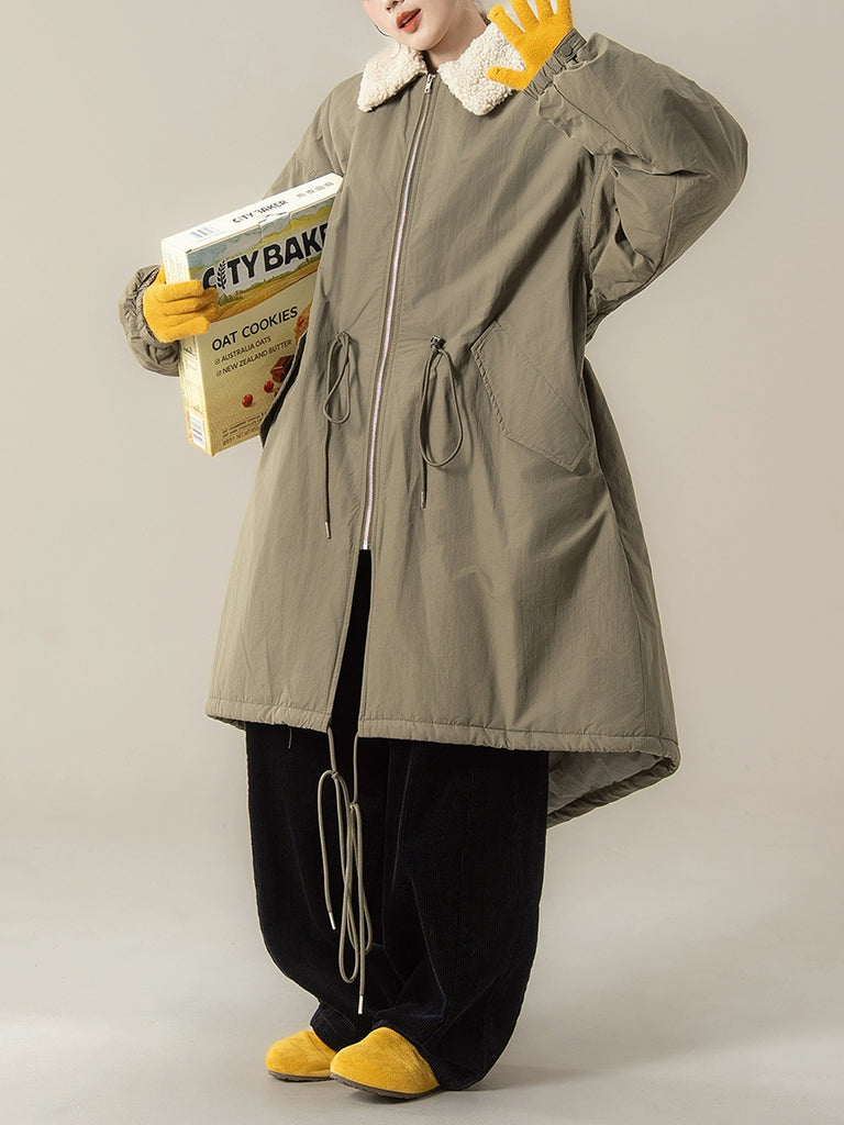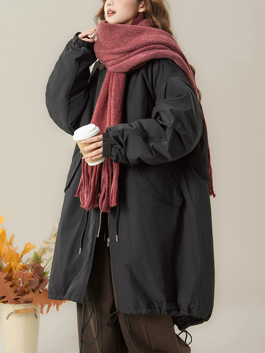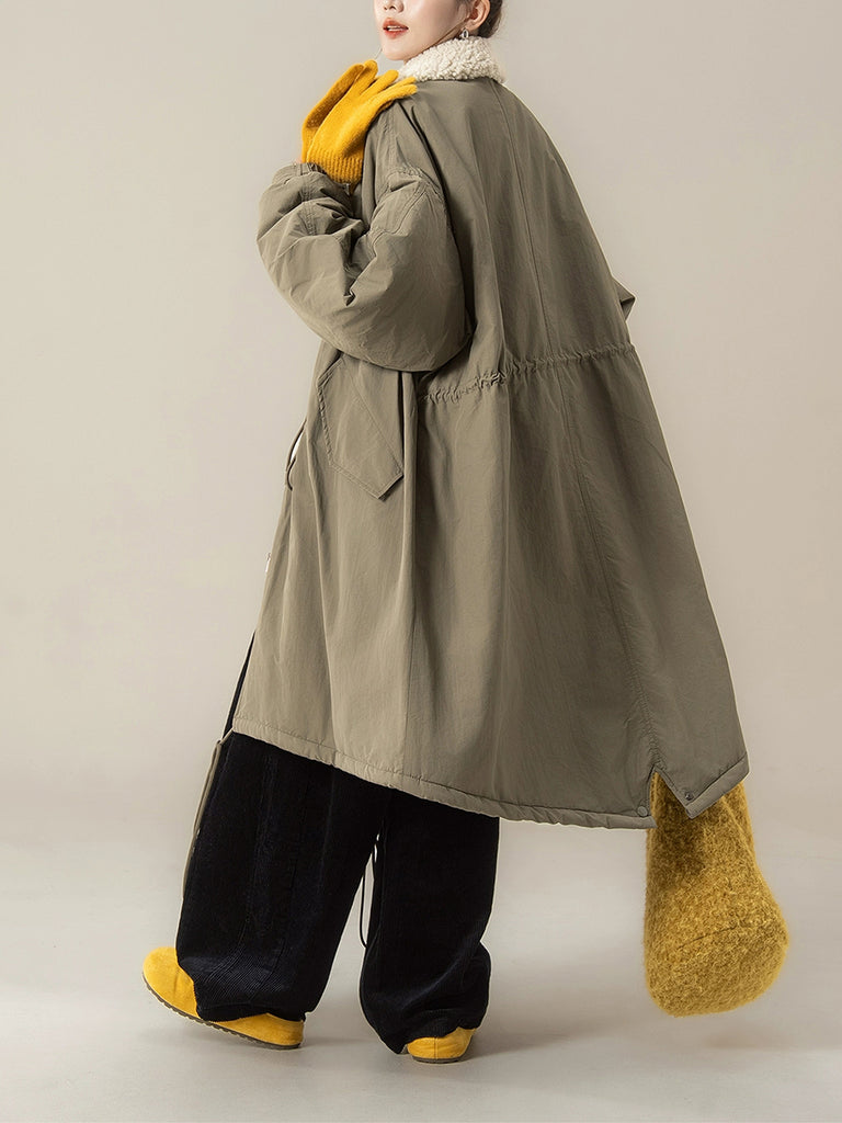 Designed for winter and autumn, this coat features a solid color design with a classic turn-down collar. It offers full-length raglan sleeves with a retro style, combining timeless elegance with practical warmth.