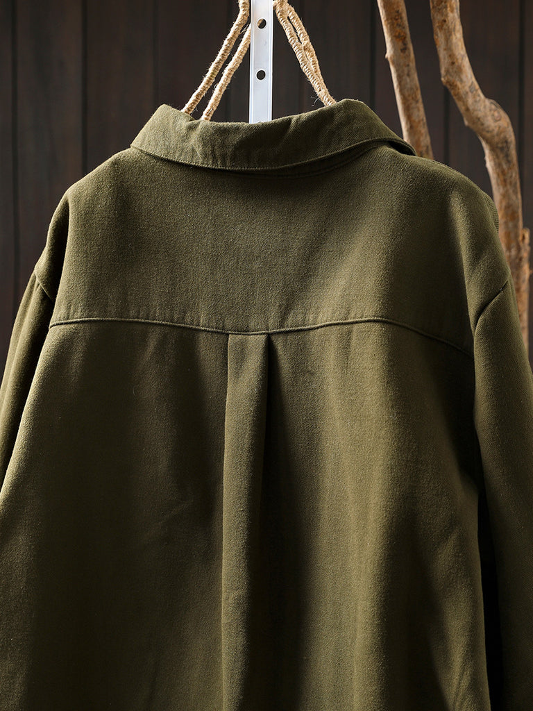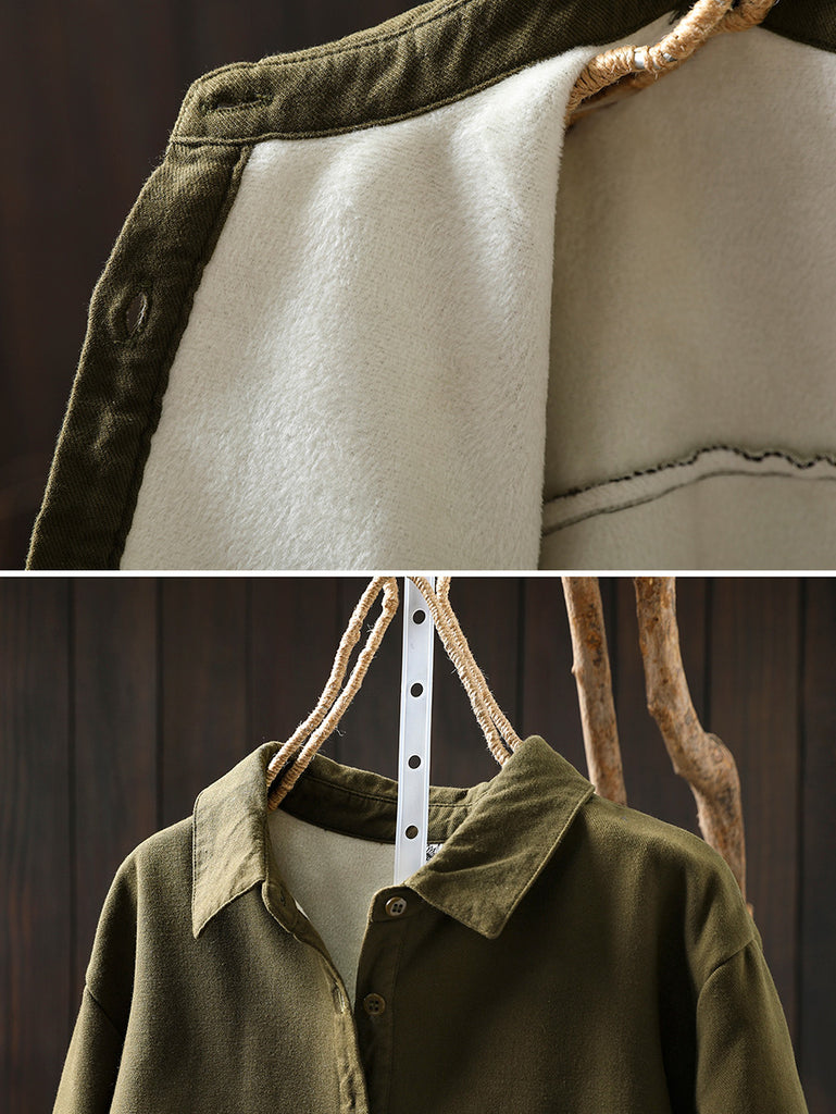 Crafted from 100% cotton, this fleece-lined shirt features a solid color design with a classic turn-down collar. It offers full-length sleeves in a timeless retro style, ideal for autumn and winter wear.
