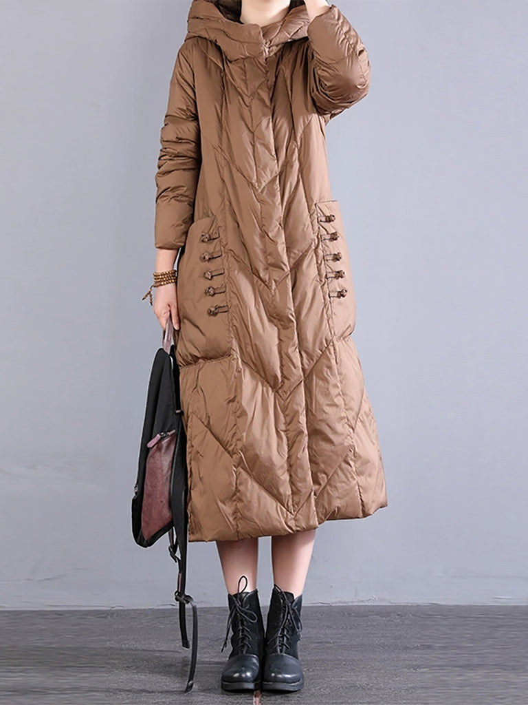 Women Winter Retro Hooded Long Down Coat