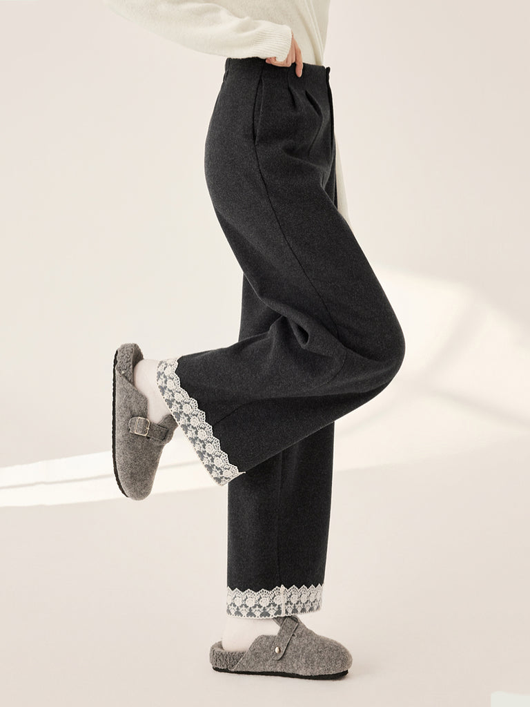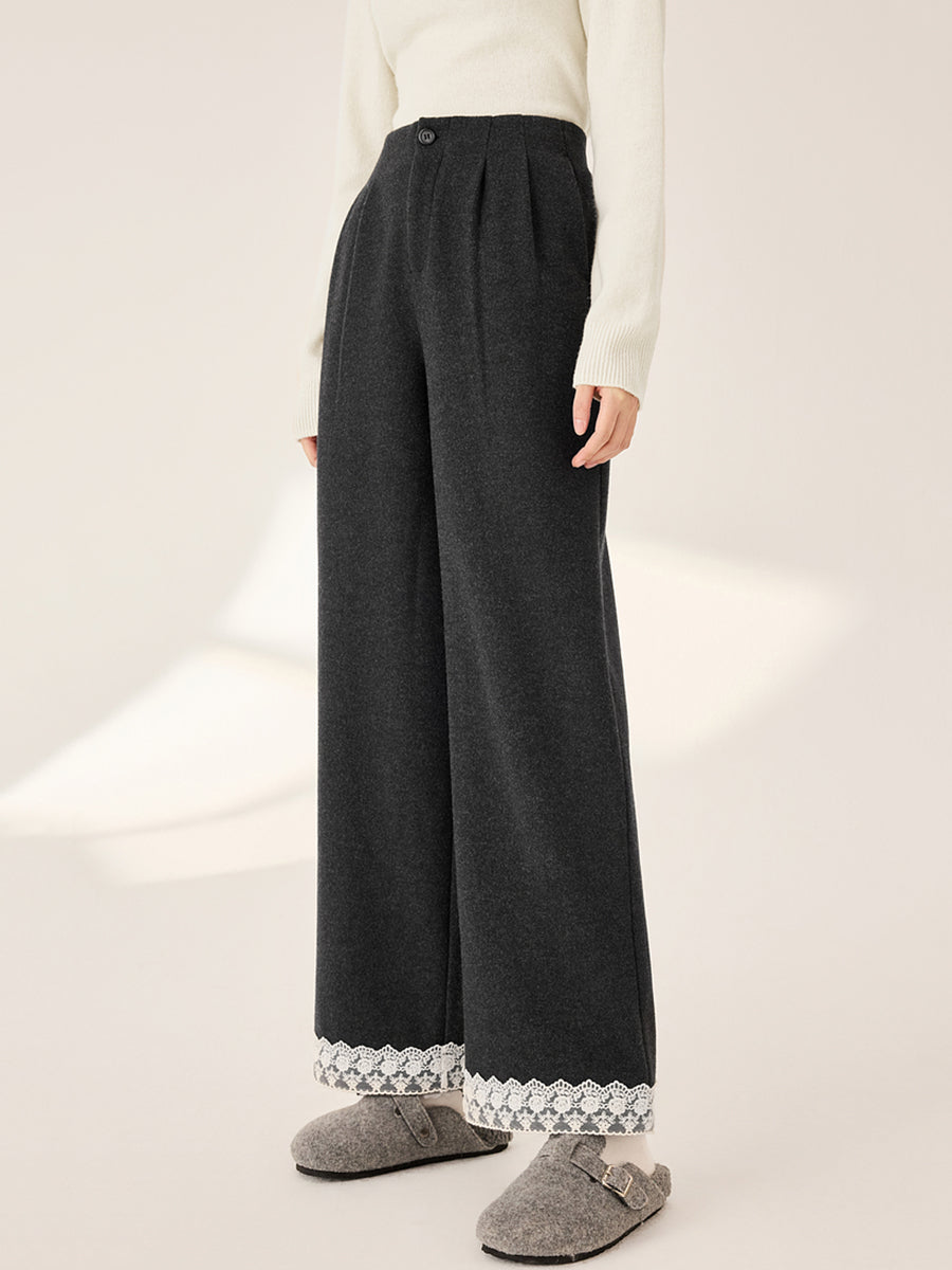 Women Autumn Artsy Lace Spliced Straight Pants