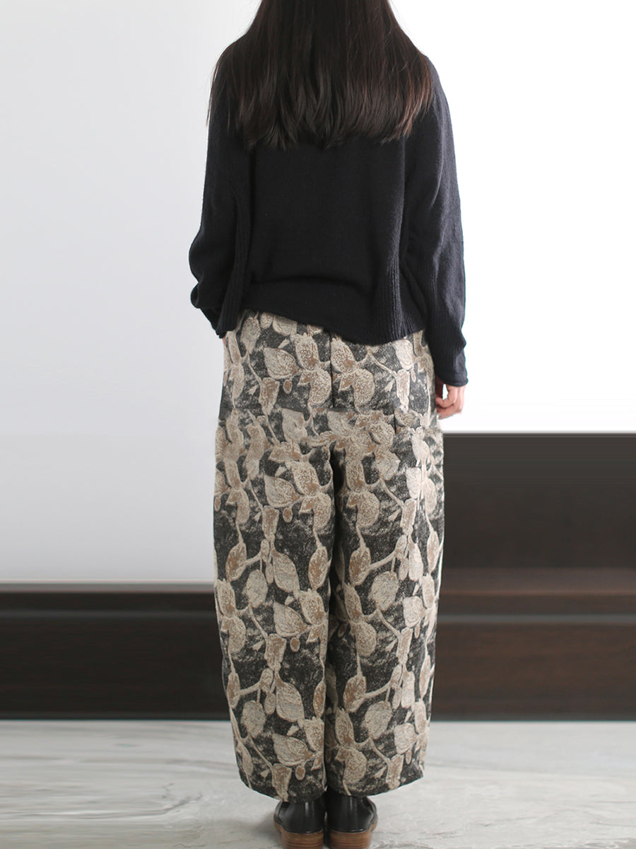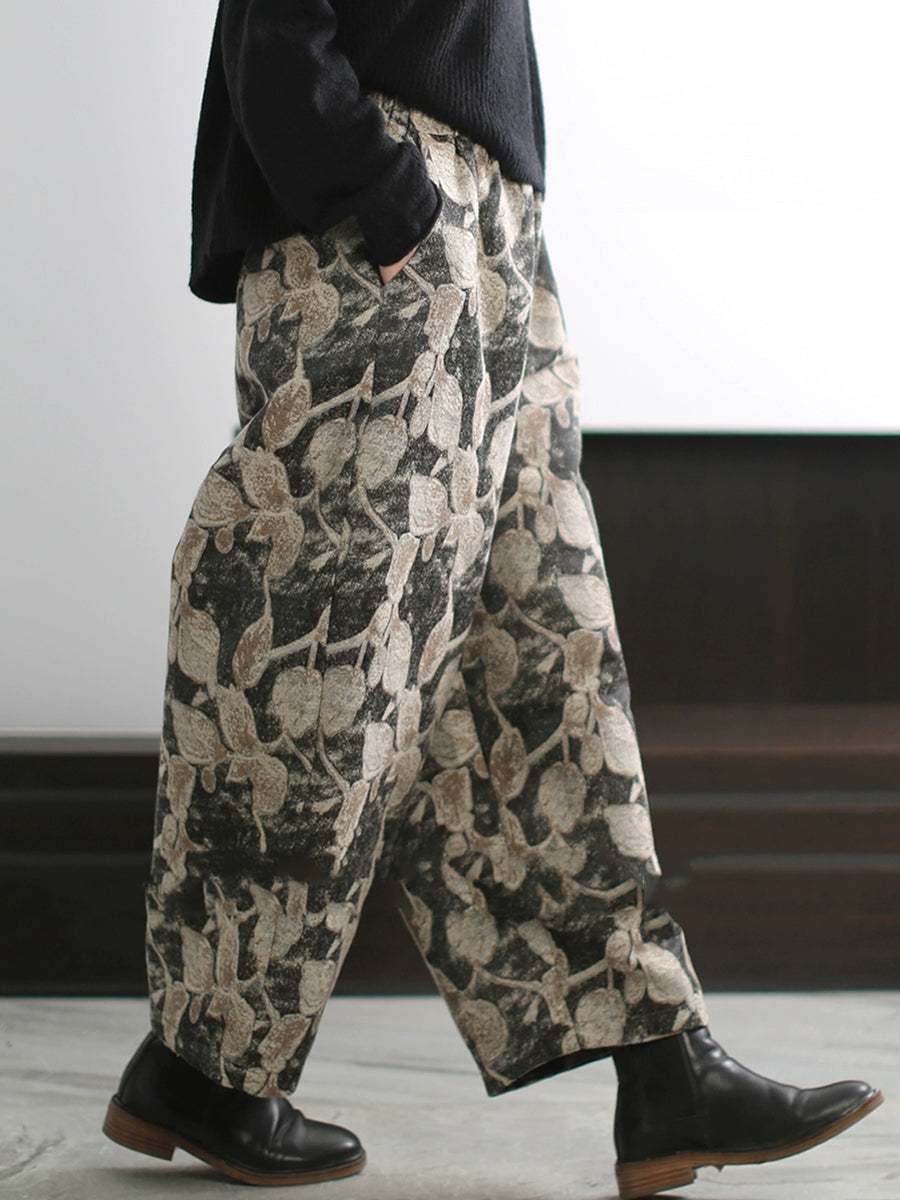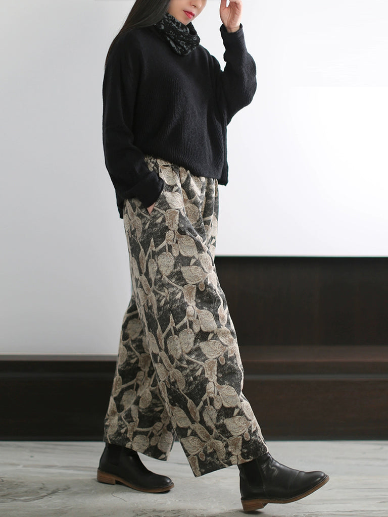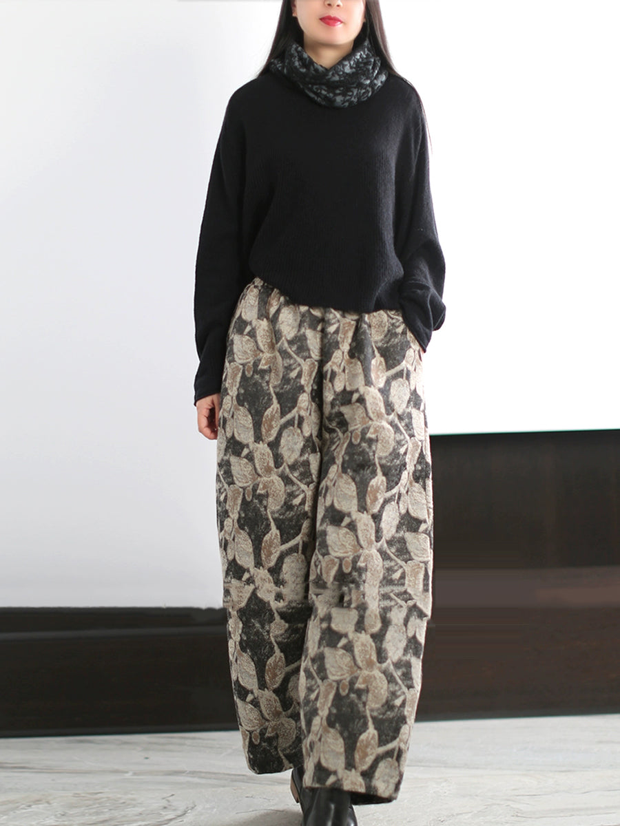 Women Autumn Artsy Leaf Wide-leg Pants