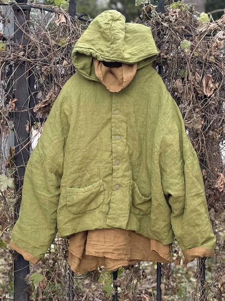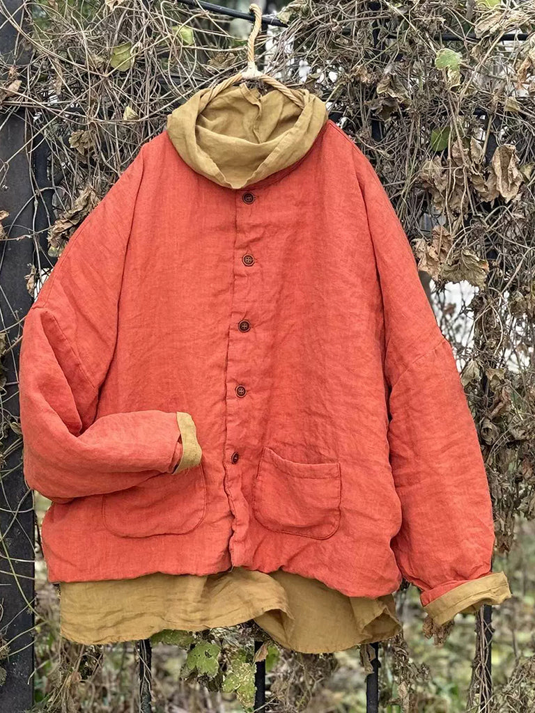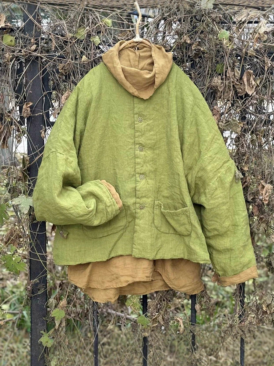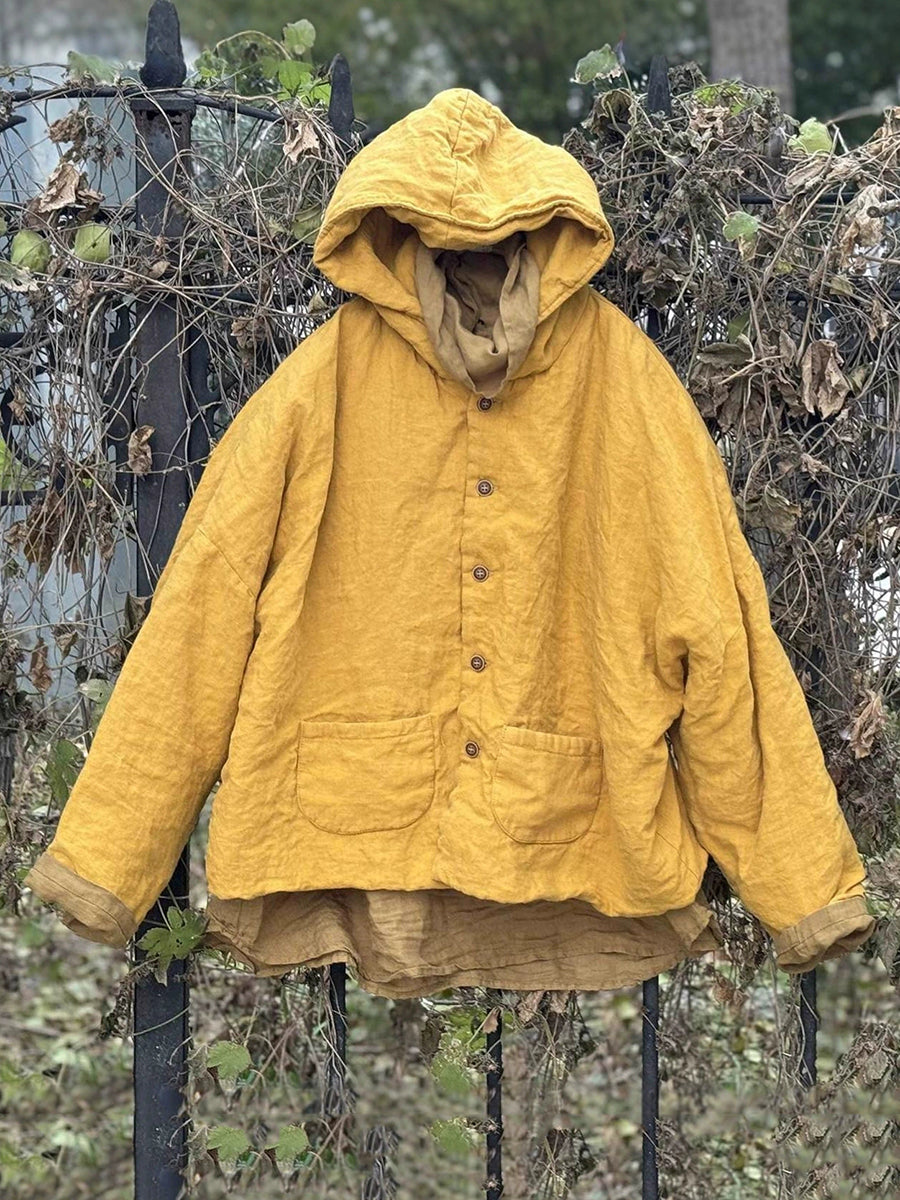 Women Winter Retro Pure Color Linen Padded Coat