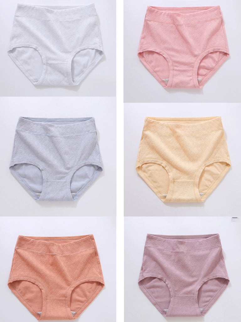 6 Pieces Women Casual Pure Color High Waist Underwear