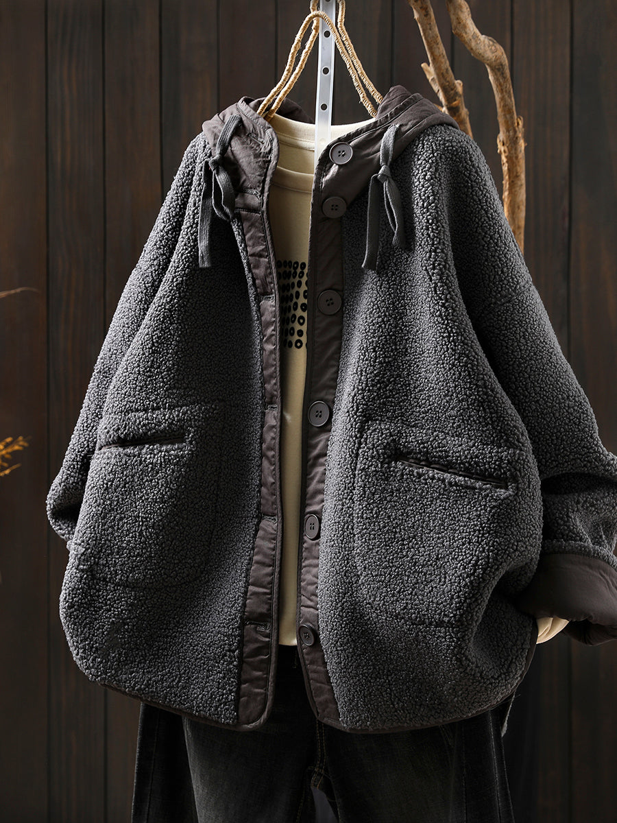 Women Winter Casual Pure Color Fleece Hooded Coat