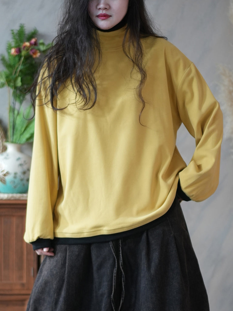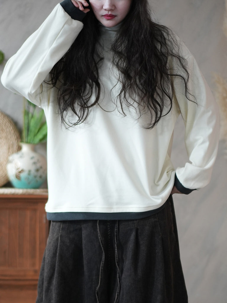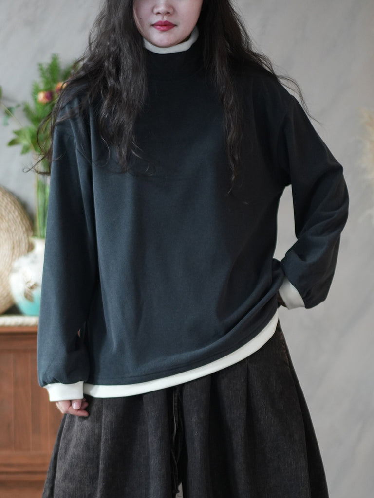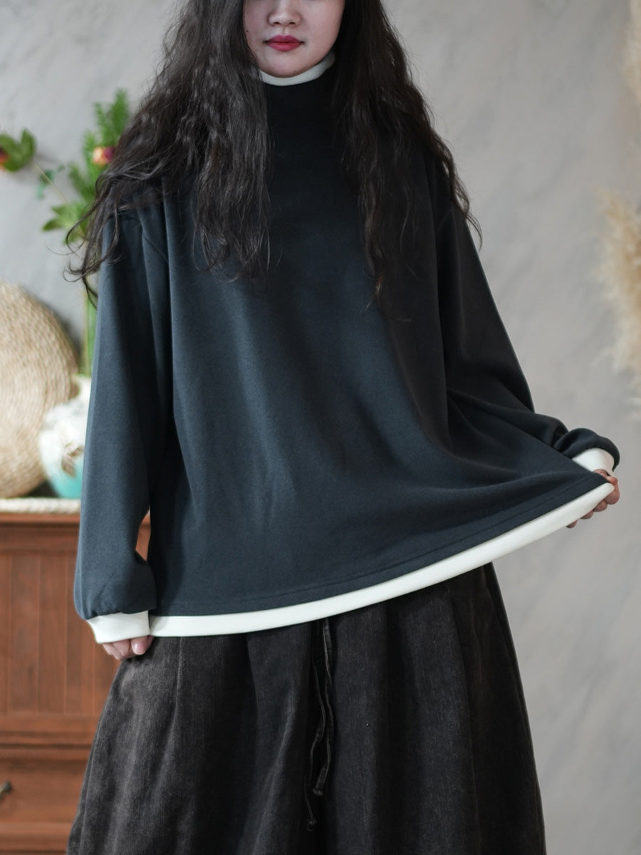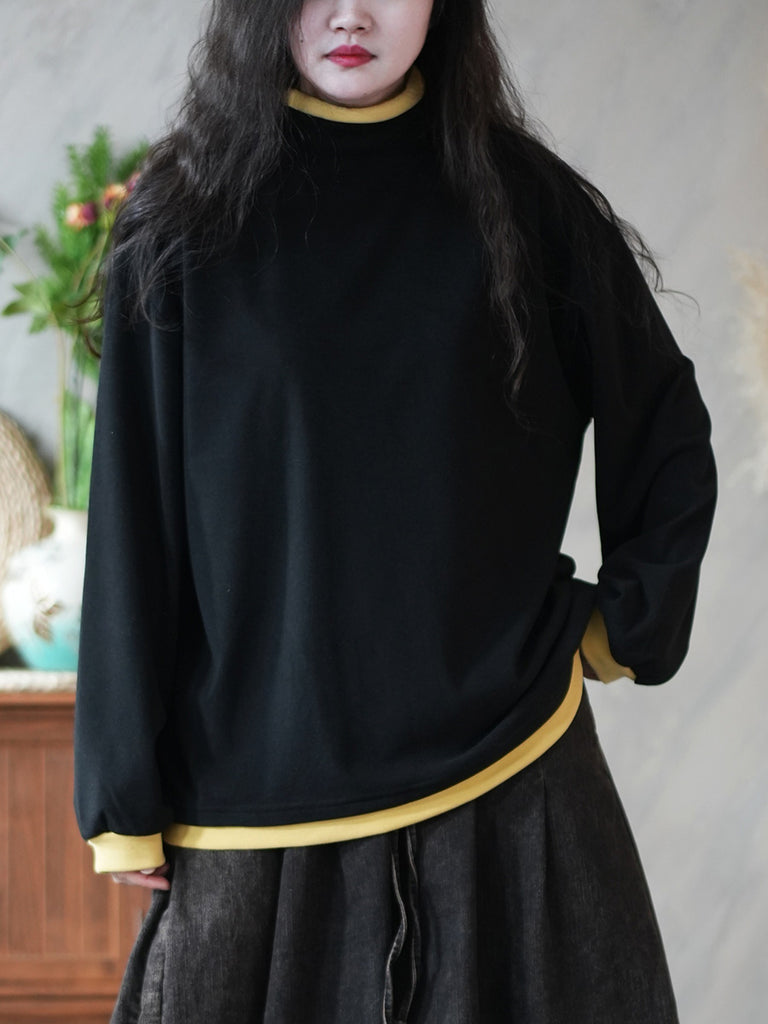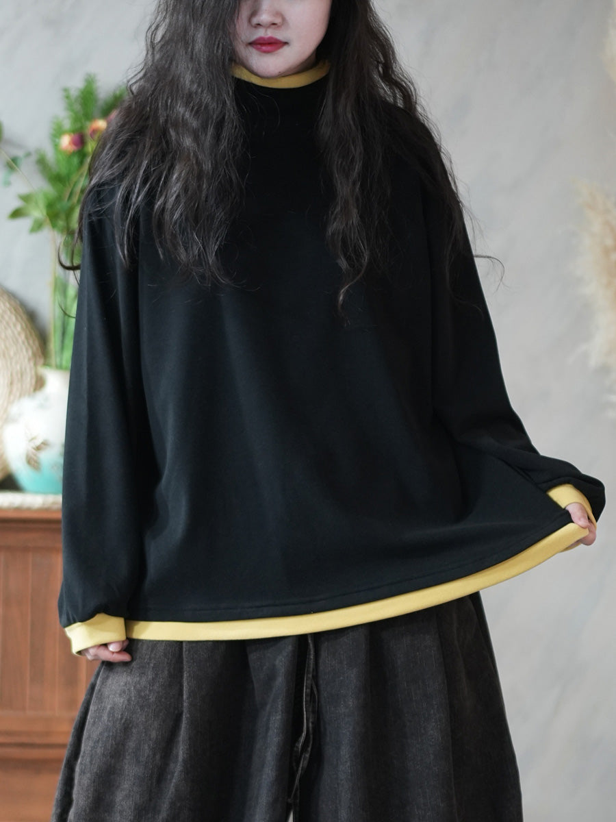 Women Casual Winter Colorblock Turtleneck Blouse