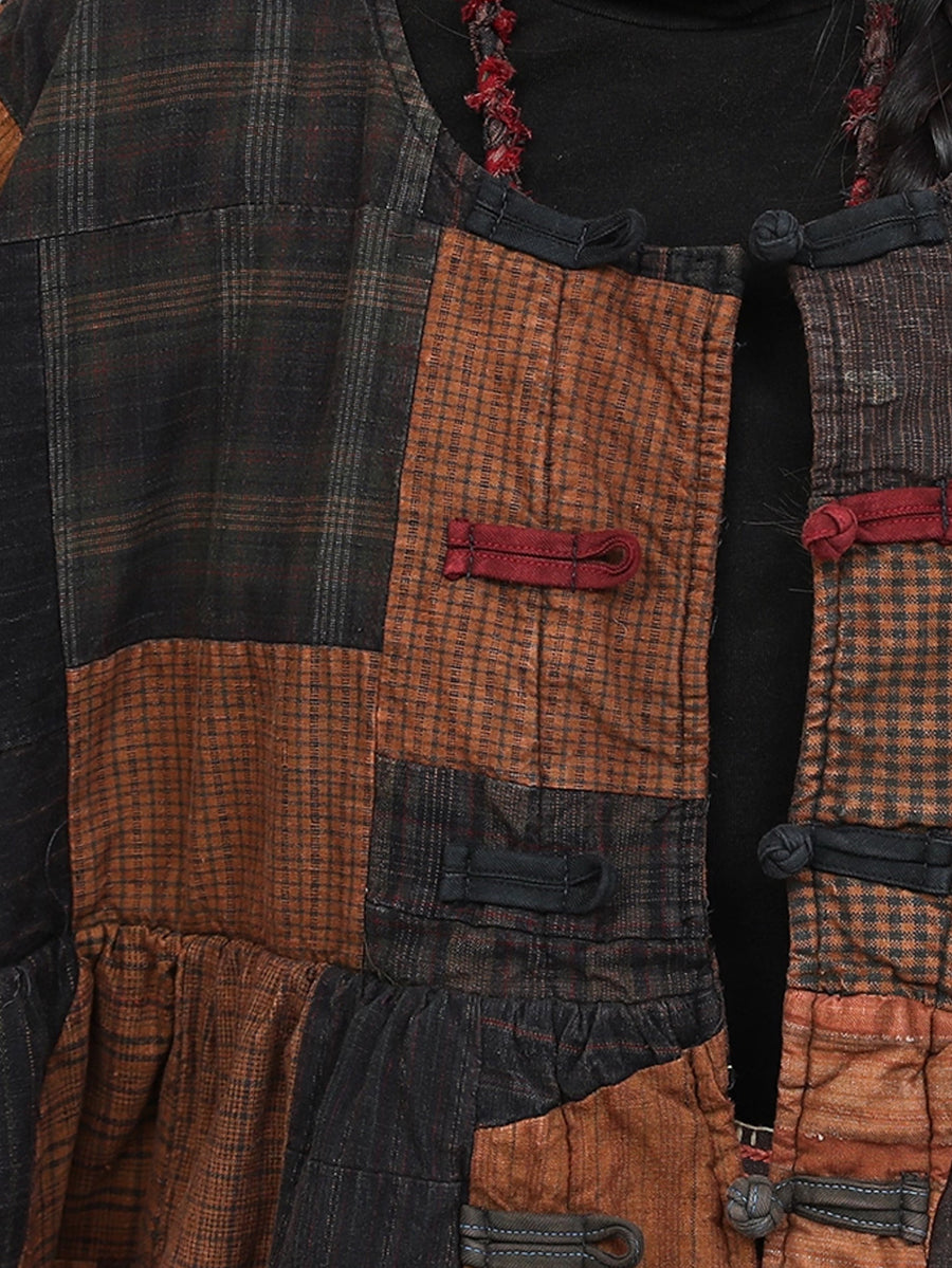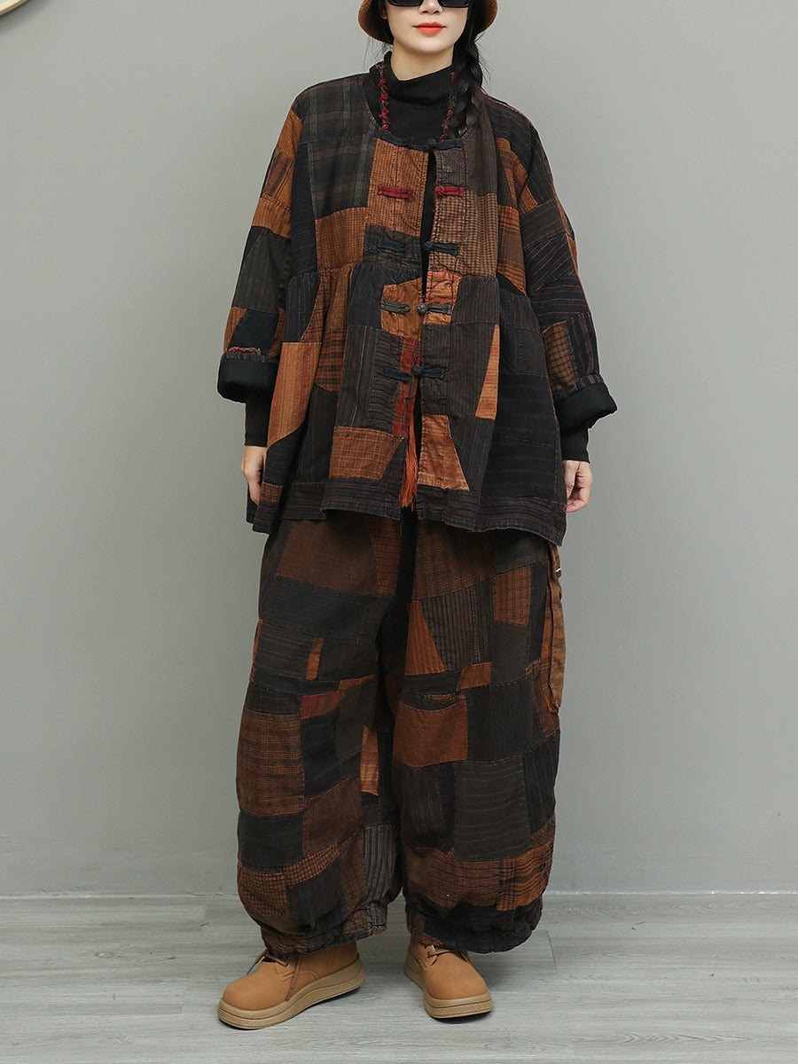 Women Winter Retro Patchwork O-Neck Padded Suits
