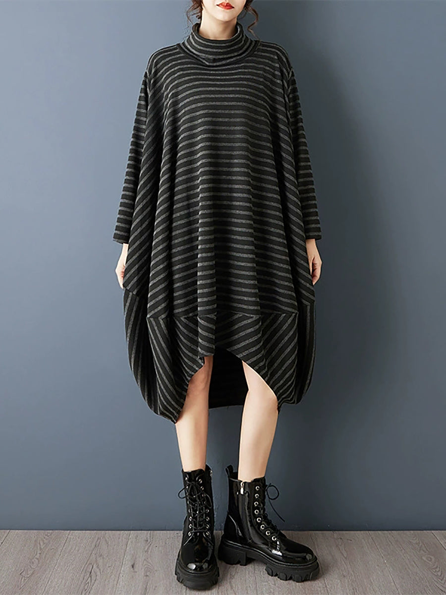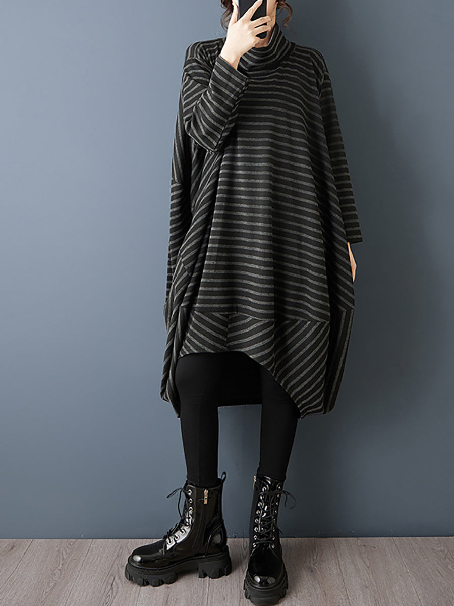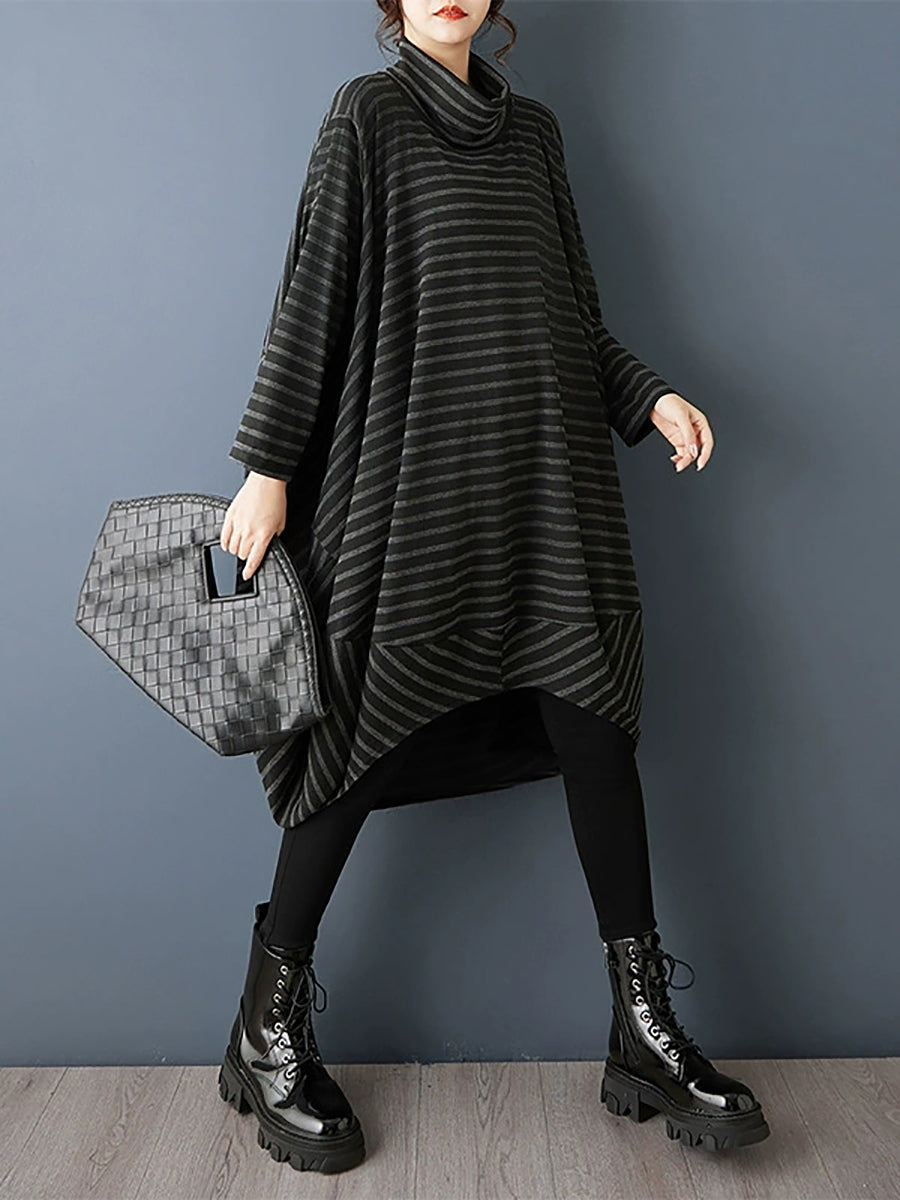 Women Spring Artsy Stripe Turtleneck Dress